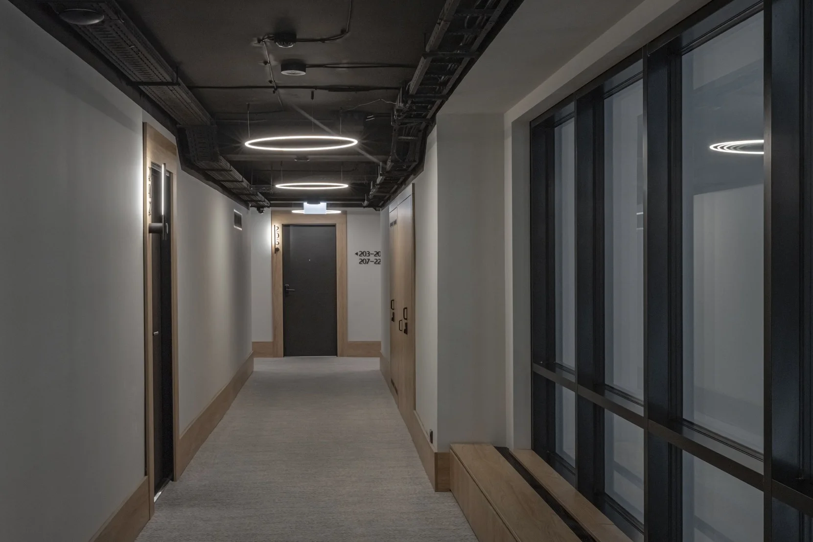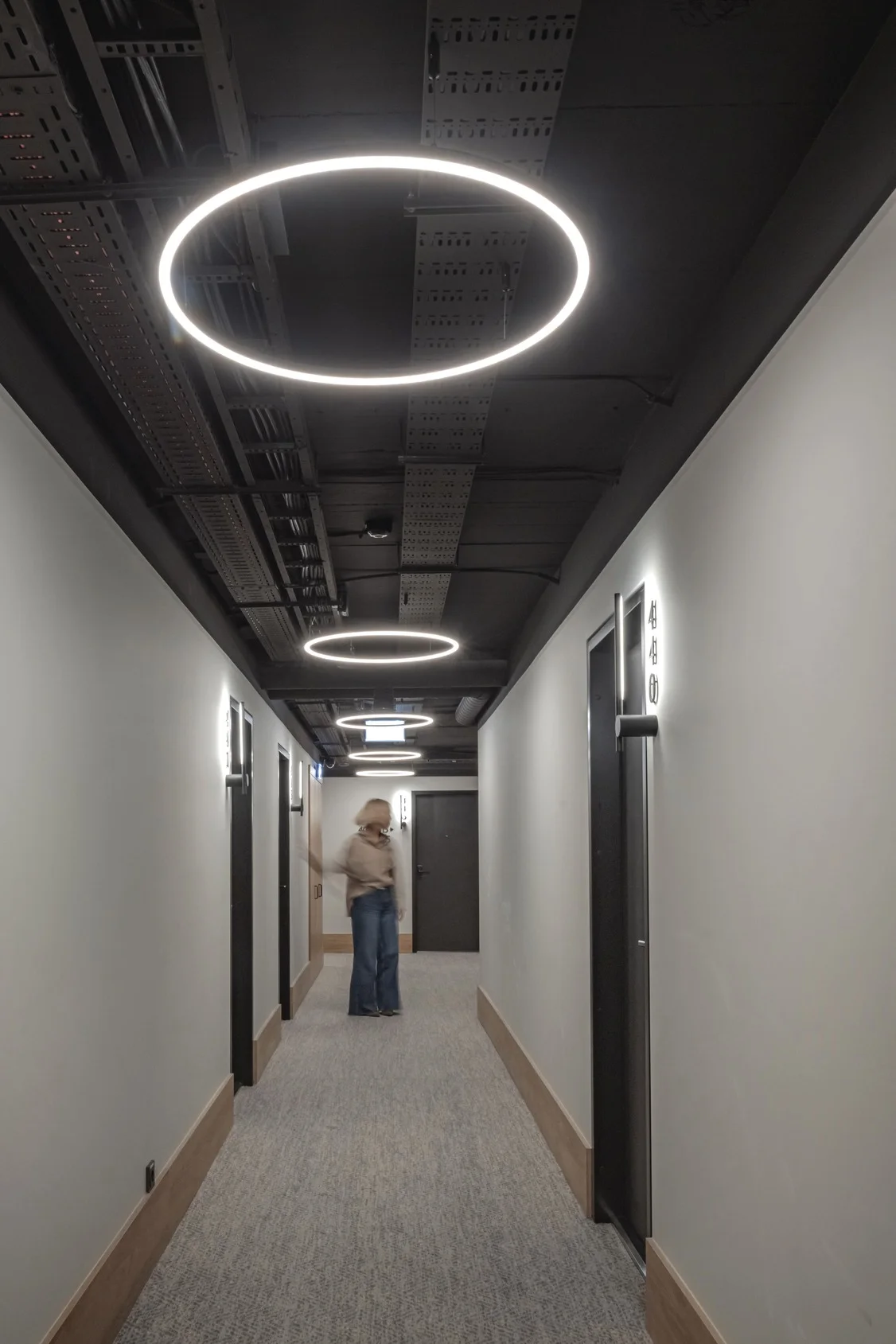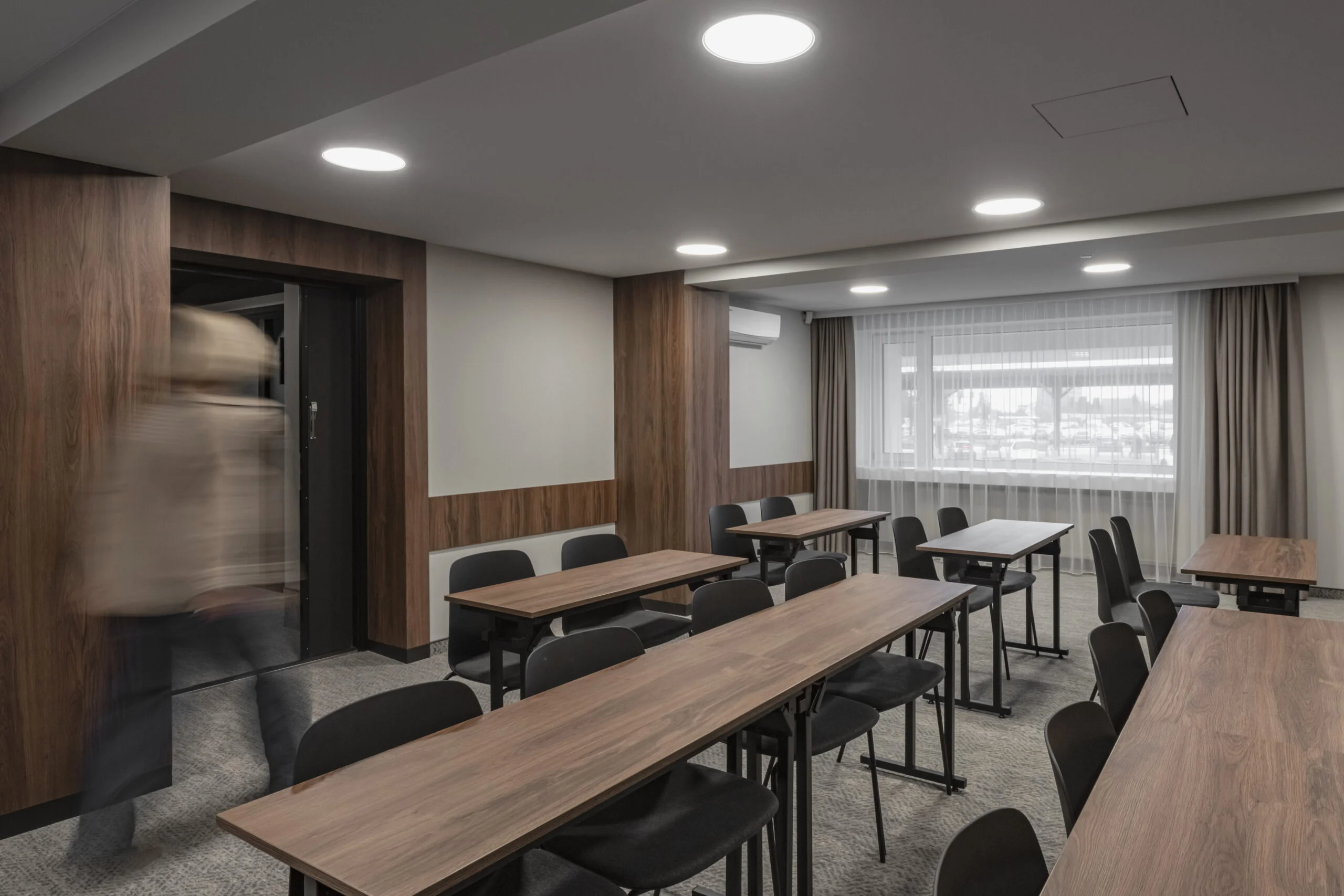 Kambarių interjeruose sieta sukurti neutralią, ramią aplinką. Kambariuose pasitekltos paprastos formos ir aiškios linijos, išlaikant estetinį vientisumą visame viešbutyje. Tokia kryptis atitinka vietos specifiką – viešbutis veikia transporto mazgo aplinkoje, kur svarbiausias yra efektyvumas ir patogumas.