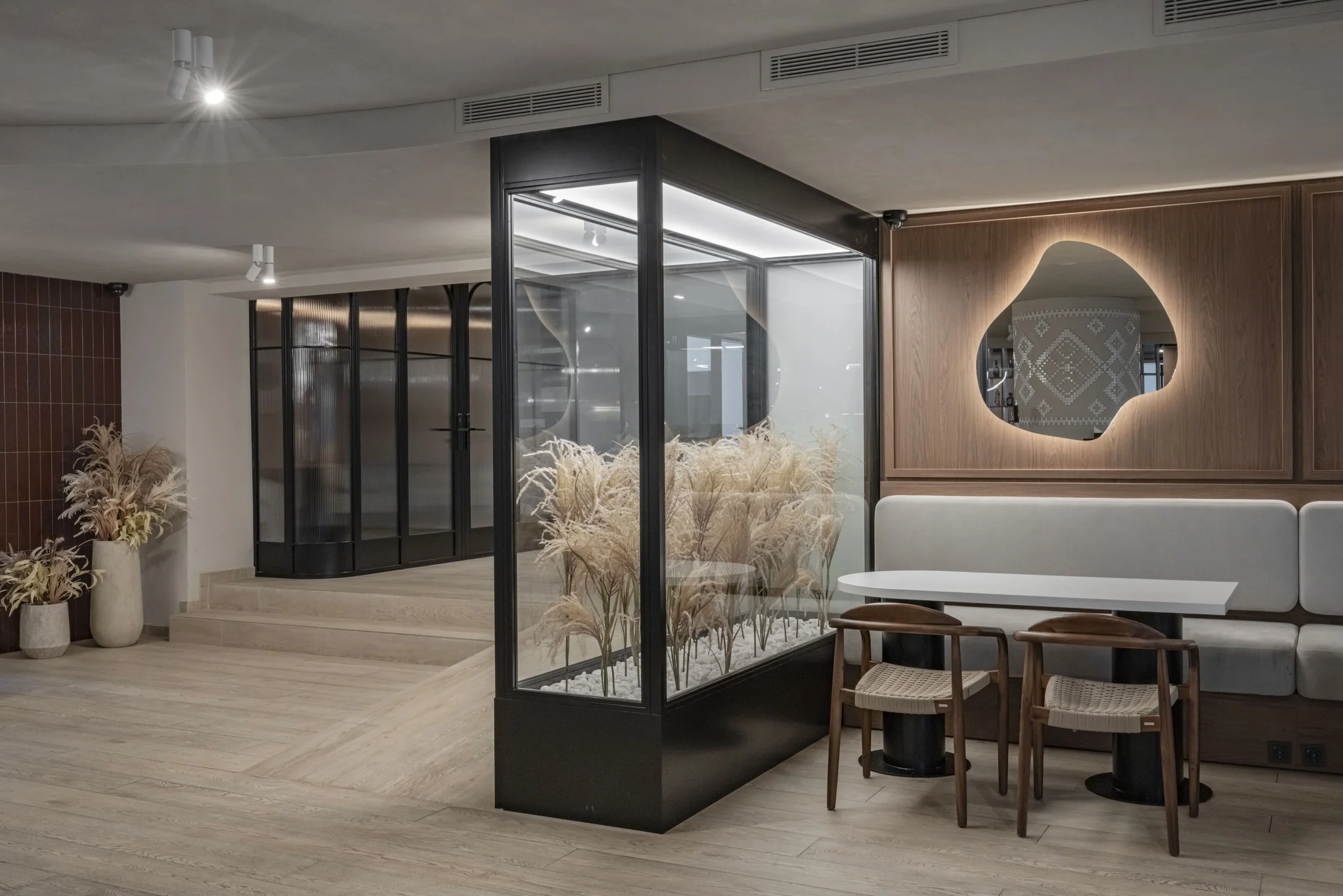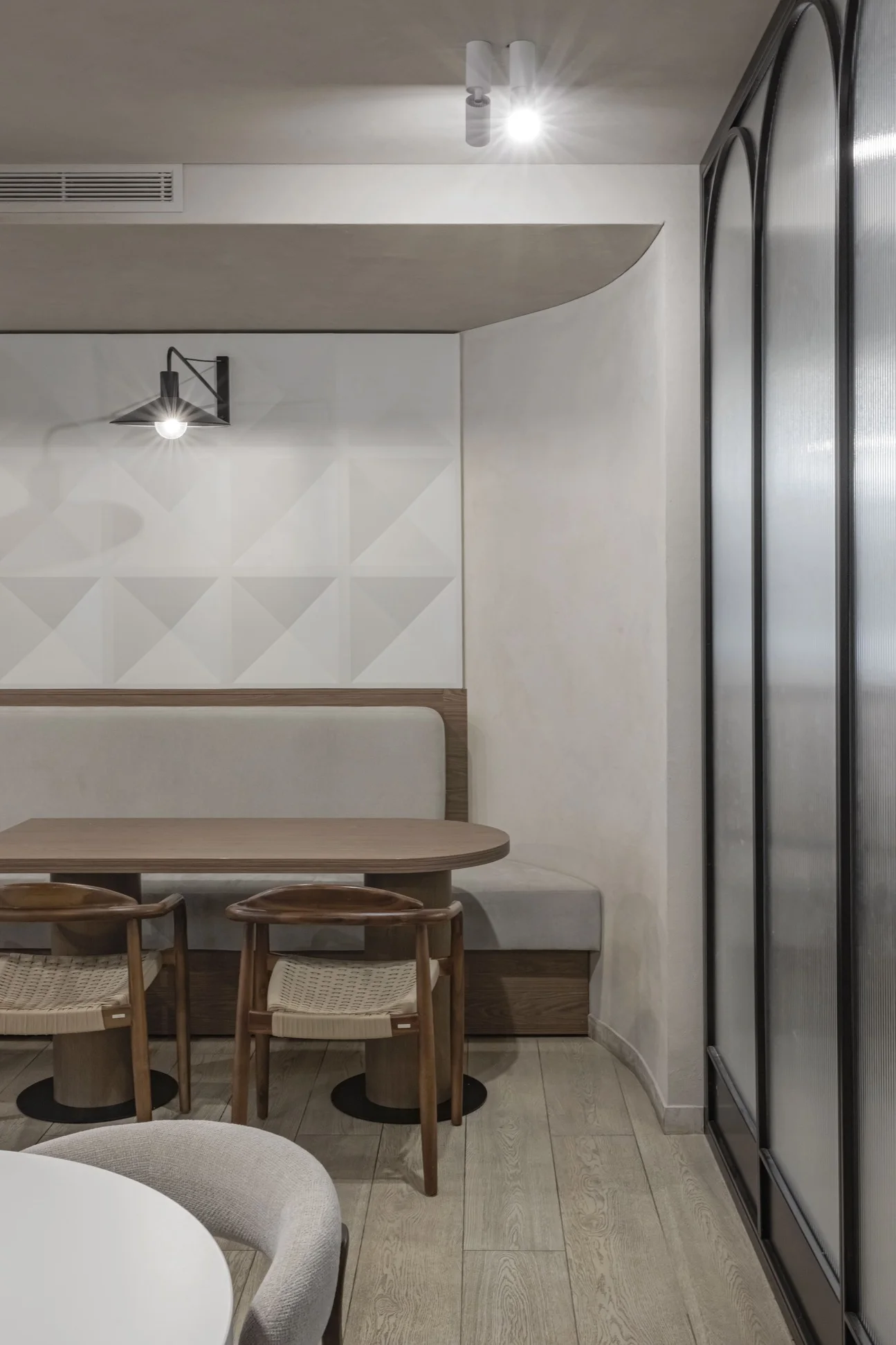 Interjero projektas nebuvo kuriamas nuo nulio – jis pritaikytas prie esamos struktūros, siekiant maksimaliai išnaudoti turimą erdvę ir pagerinti jos funkcionalumą.