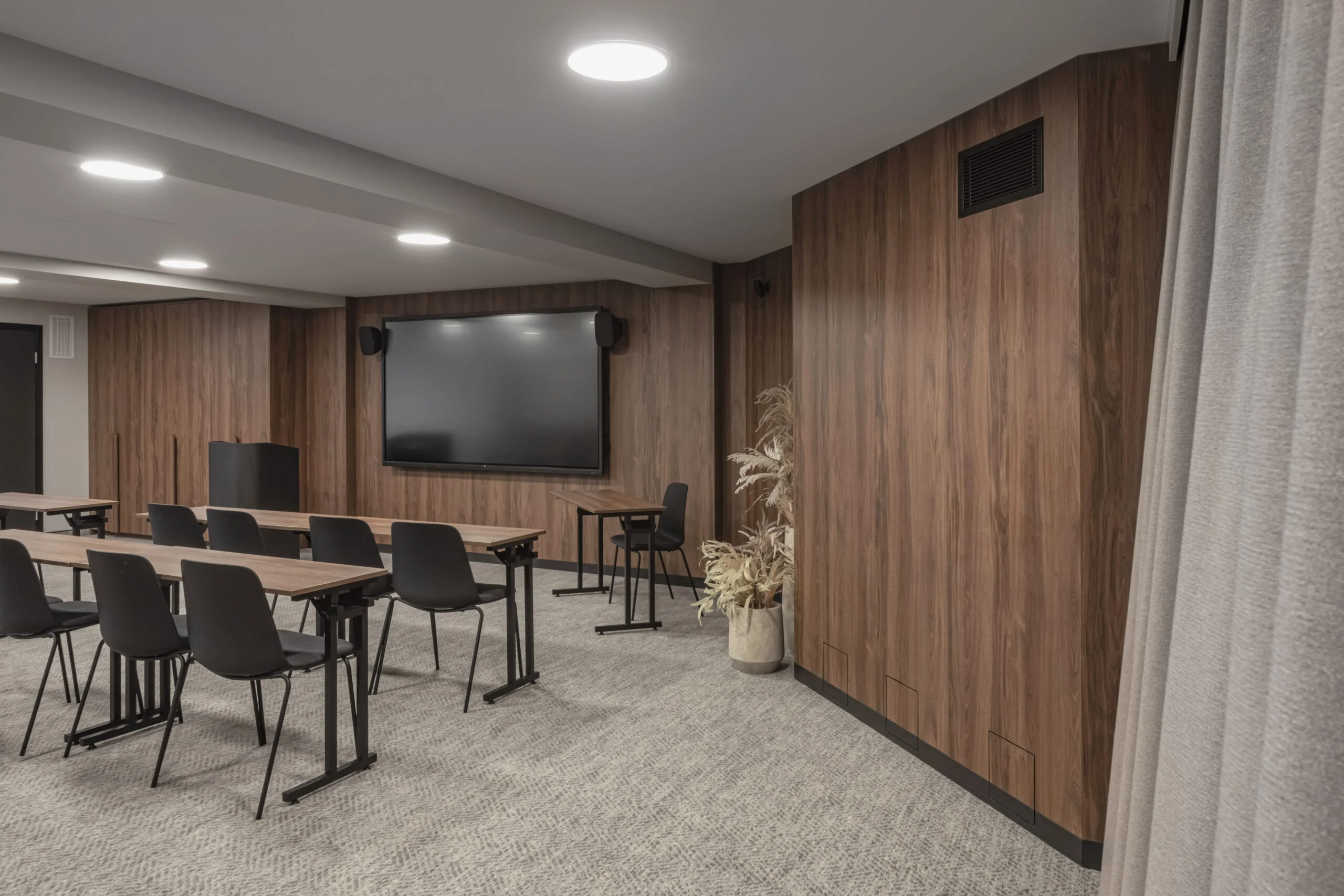 - Konferencijų salėse ir verslo kambariuose: EGGER | Dark Brown Charleston Oak, H3154 ST36