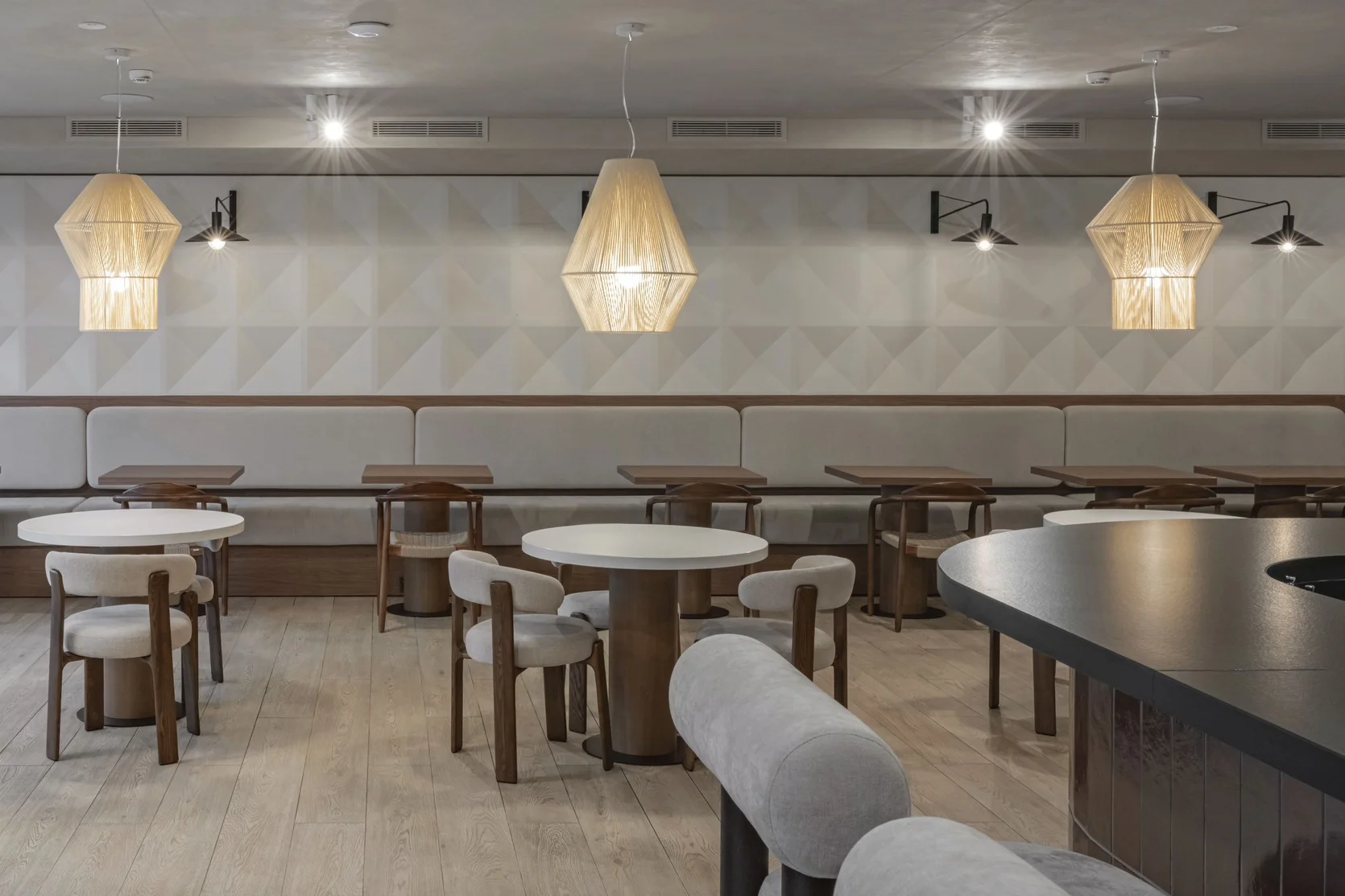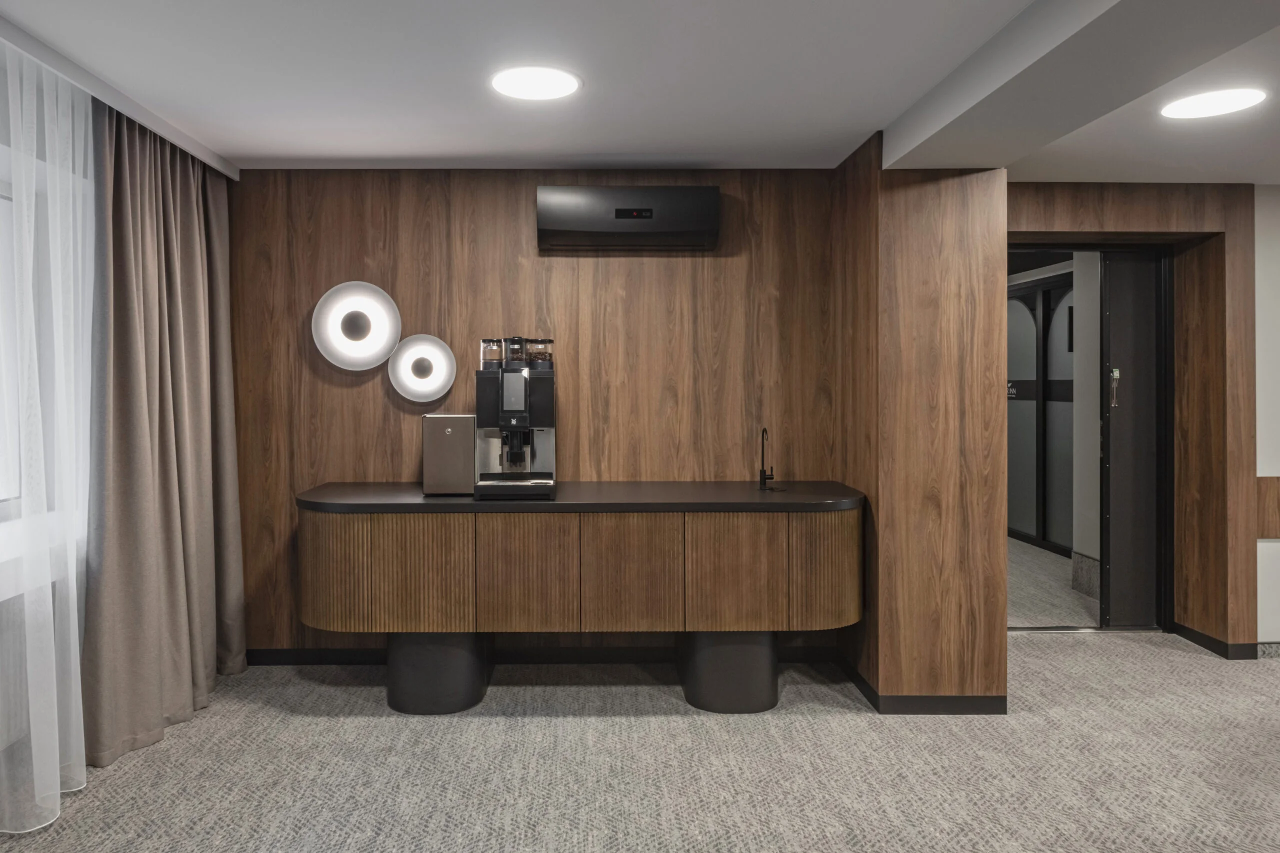Šie paviršiai padeda sukurti šiltą, profesionalią ir vizualiai nuoseklią viešbučio aplinką.
