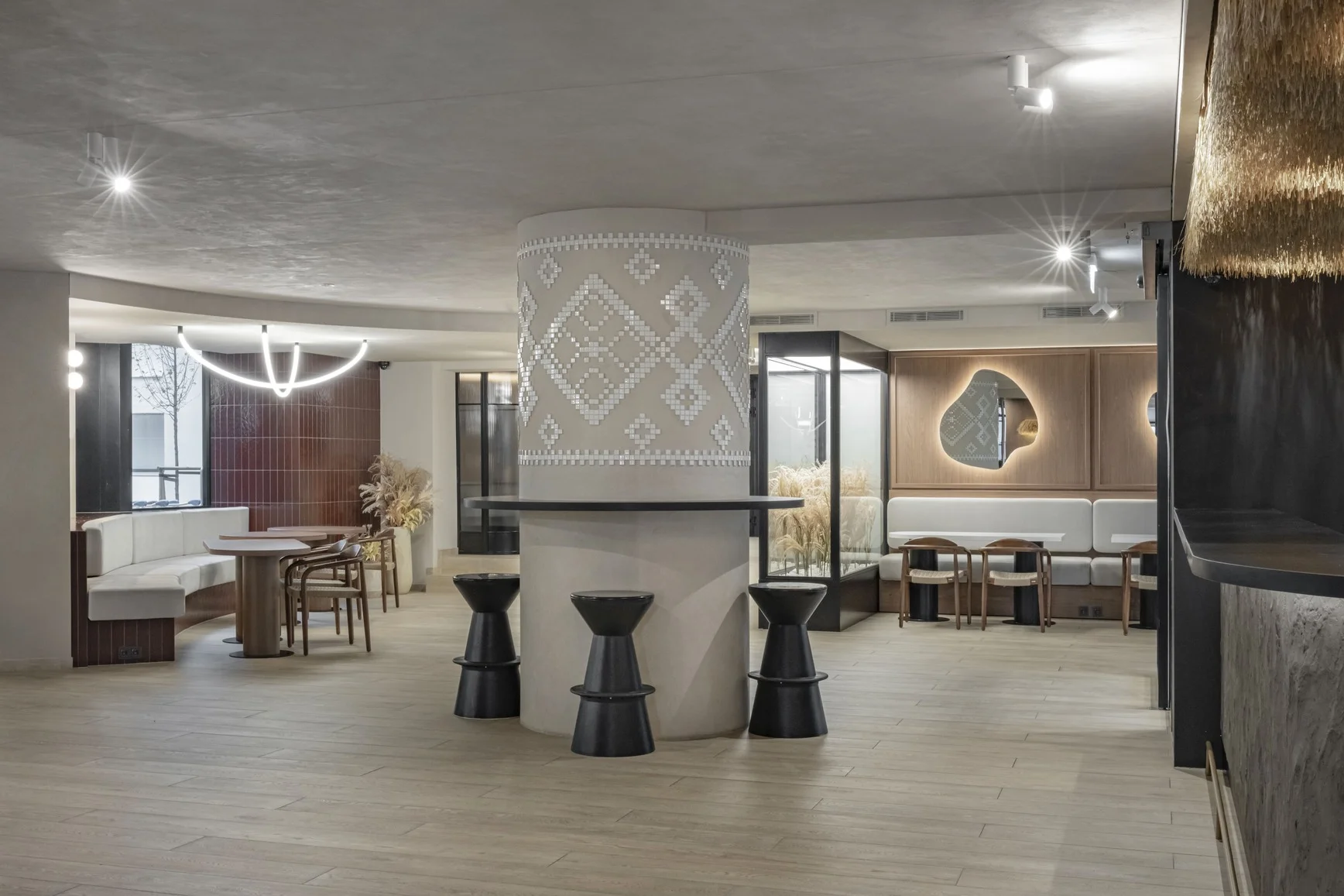 Šie elementai kuria savitą atmosferą ir suteikia interjerui vietos charakterį, tačiau išlaiko šiuolaikinę estetiką ir funkcionalumą. Sprendimai subalansuoja tradicinius simbolius ir modernų dizaino principą.