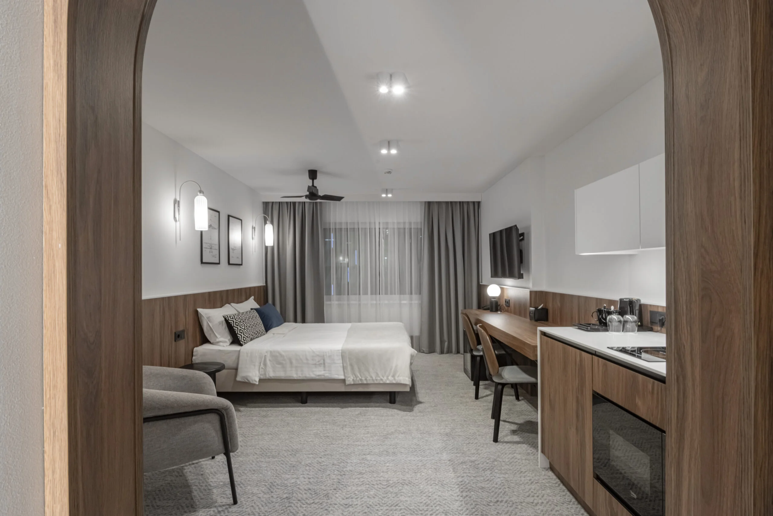 Viešbutyje suplanuotos dvi skirtingos dizaino stilistikos kambarių kategorijos. Tai leidžia pasiūlyti skirtingą estetinę patirtį, išlaikant bendrą interjero nuoseklumą.