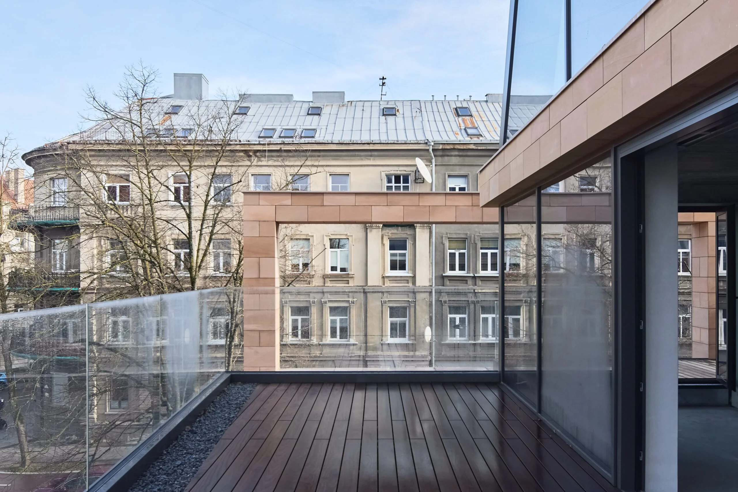 Daug dėmesio skirta akustiniams sprendimams. Butams suprojektuotos išskirtinių savybių durys su gera garso izoliacija. Vyriai yra integruoti į varčią, paslėpti ir durų pritraukėjai, kad būtų kuo mažiau vizualaus triukšmo. Kiekvienoje terasoje pasiūlytos įrengti vienodos, į fasado konstrukcijas integruotos markizės, kurios ne tik leis pratęsti buvimo lauke sezoną, bet ir neišsiskirs iš pastato stilistikos. Sekant šią idėją, prie kiekvienų laiptinės durų, architektai pasiūlė įleidžiamus kojų valymo kilimėlius.