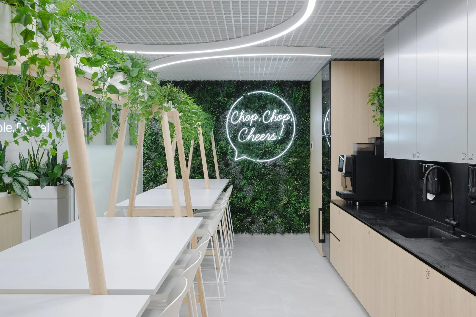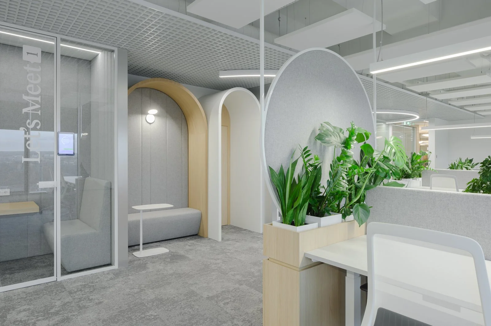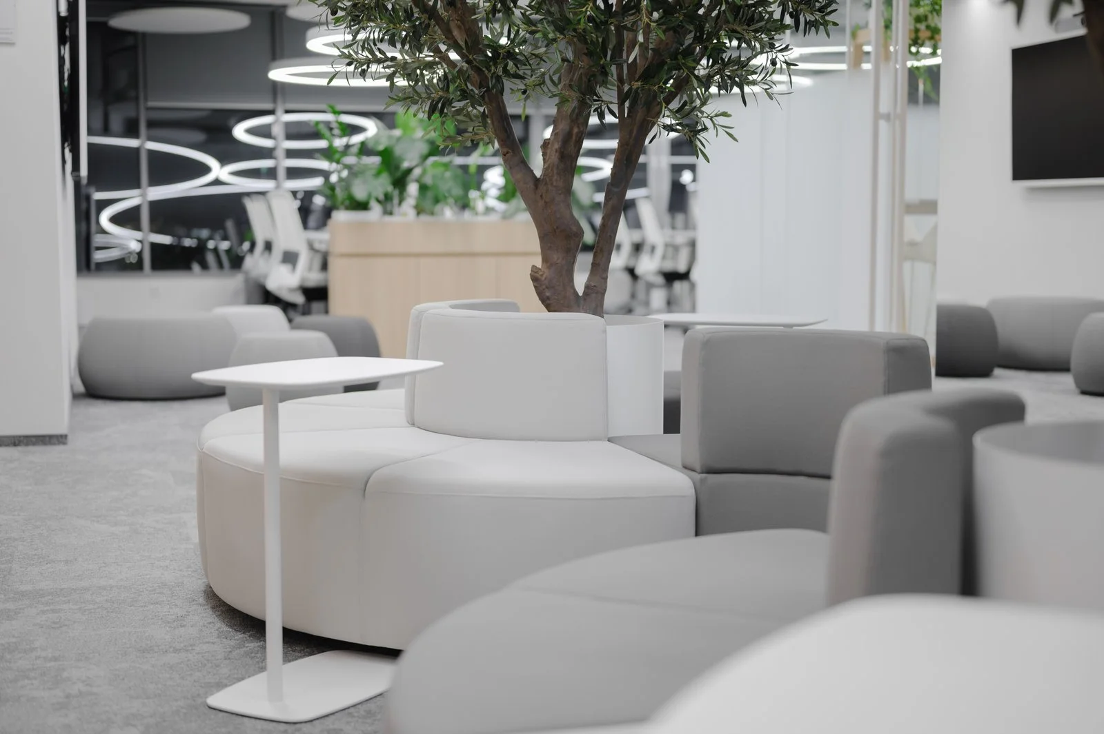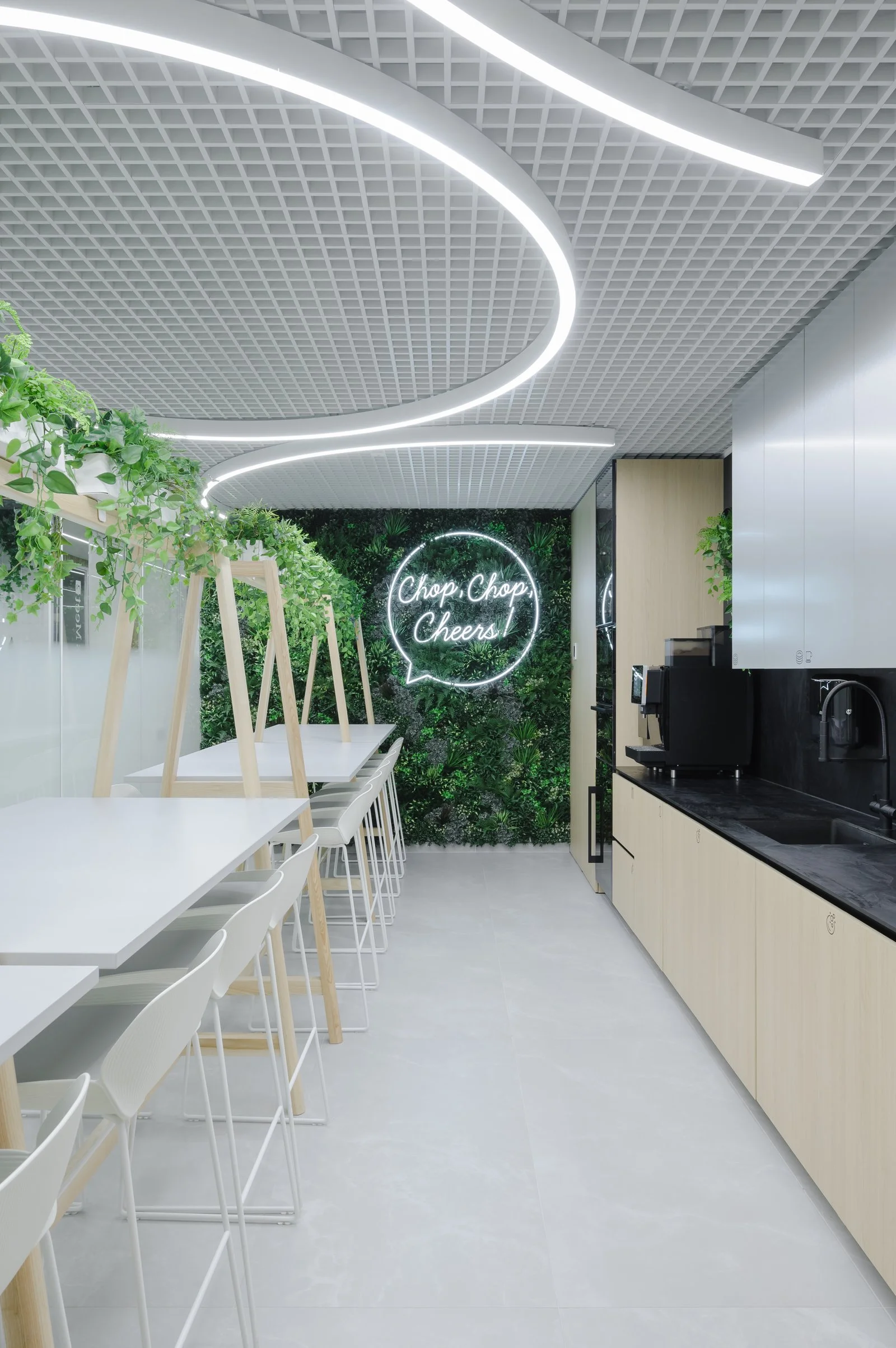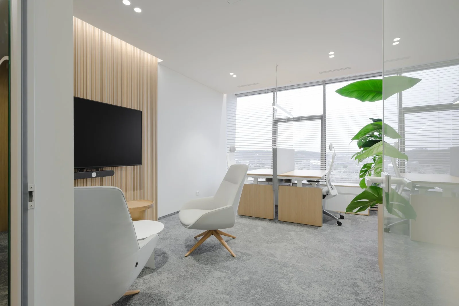 Interjeras ne tik atspindi aukštą estetikos lygį, bet ir puikiai subalansuoja brandą su jaunatvišku veržlumu. Kiekvienas dizaino elementas buvo parinktas su aiškiu tikslu – sukurti erdvę, kuri įkvepia ir skatina kūrybiškumą, tačiau taip pat užtikrina patogią ir diskretišką darbo atmosferą. Šviesios spalvos ir natūralios medžiagos suteikia erdvės pojūtį, užtikrina lengvumą. Apgalvotas erdvės planavimas ir funkcionalūs baldai ne tik užtikrina ergonomišką judėjimą, bet ir skatina efektyvų darbo procesą, taip sukuriant harmoningą ir neblaškančią aplinką, kurioje lengva susikoncentruoti.
