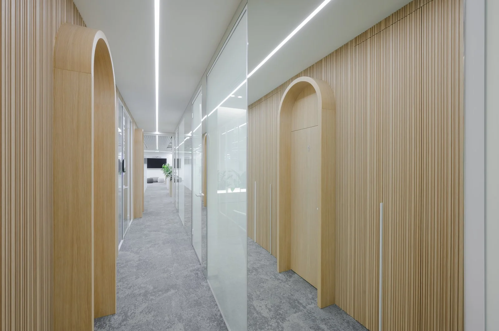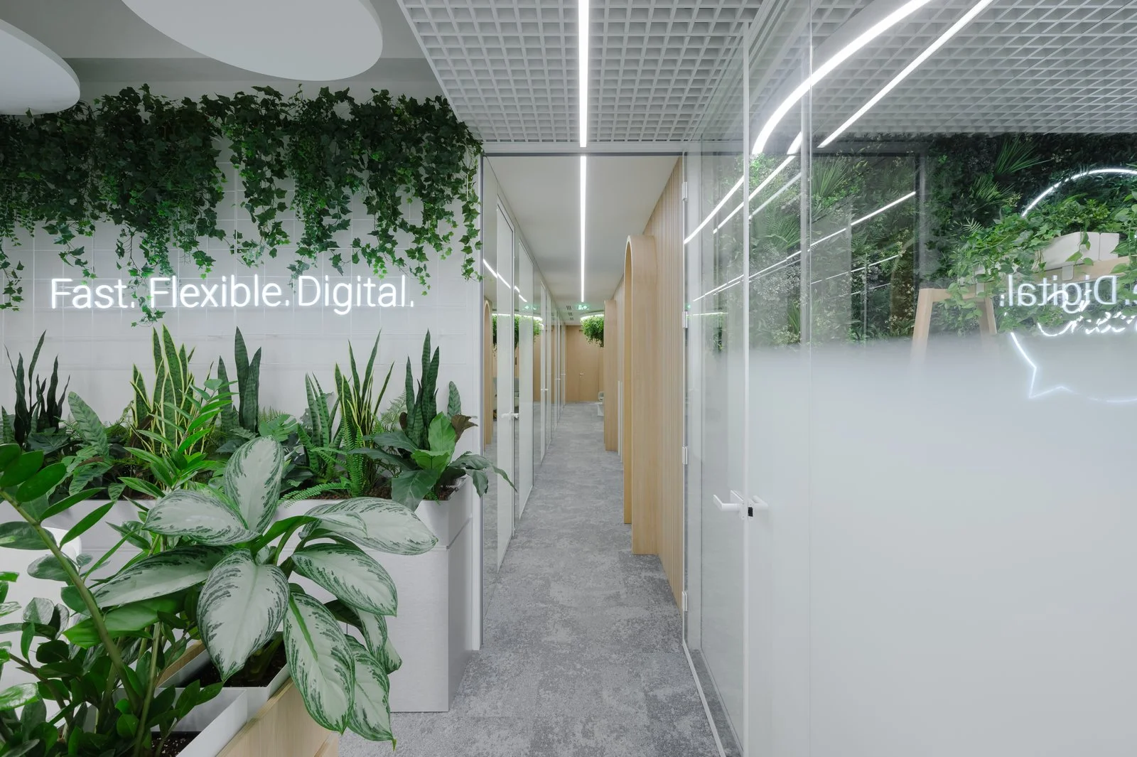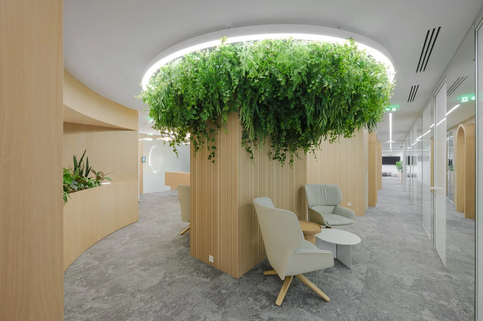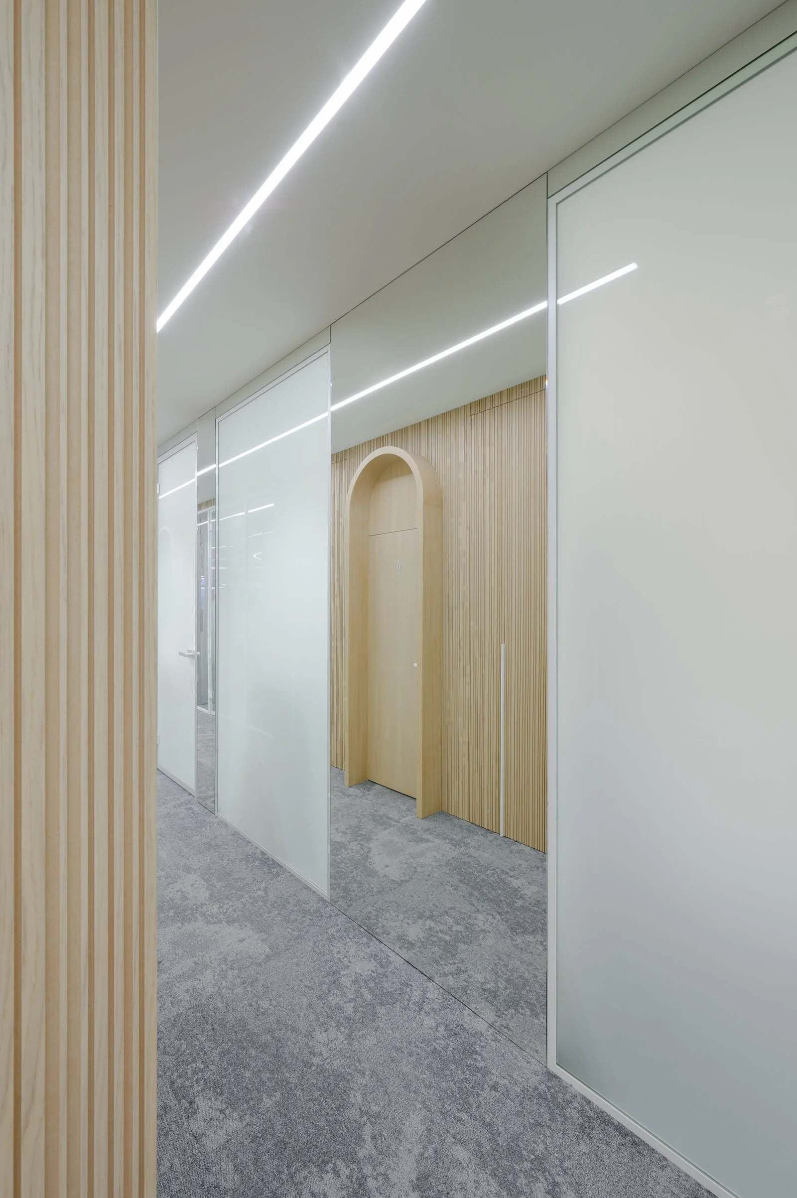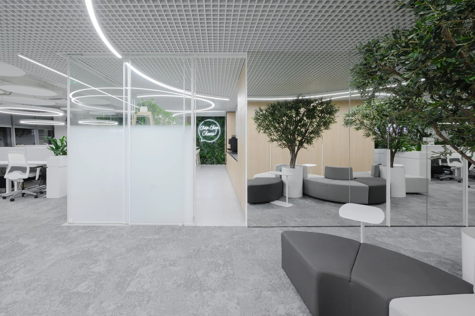 Interjeras ne tik atspindi aukštą estetikos lygį, bet ir puikiai subalansuoja brandą su jaunatvišku veržlumu. Kiekvienas dizaino elementas buvo parinktas su aiškiu tikslu – sukurti erdvę, kuri įkvepia ir skatina kūrybiškumą, tačiau taip pat užtikrina patogią ir diskretišką darbo atmosferą. Šviesios spalvos ir natūralios medžiagos suteikia erdvės pojūtį, užtikrina lengvumą. Apgalvotas erdvės planavimas ir funkcionalūs baldai ne tik užtikrina ergonomišką judėjimą, bet ir skatina efektyvų darbo procesą, taip sukuriant harmoningą ir neblaškančią aplinką, kurioje lengva susikoncentruoti.