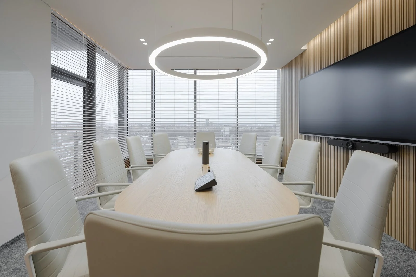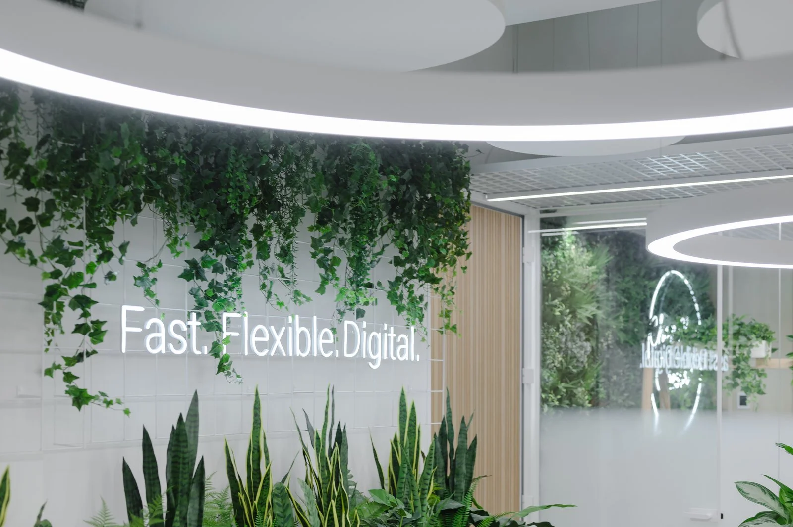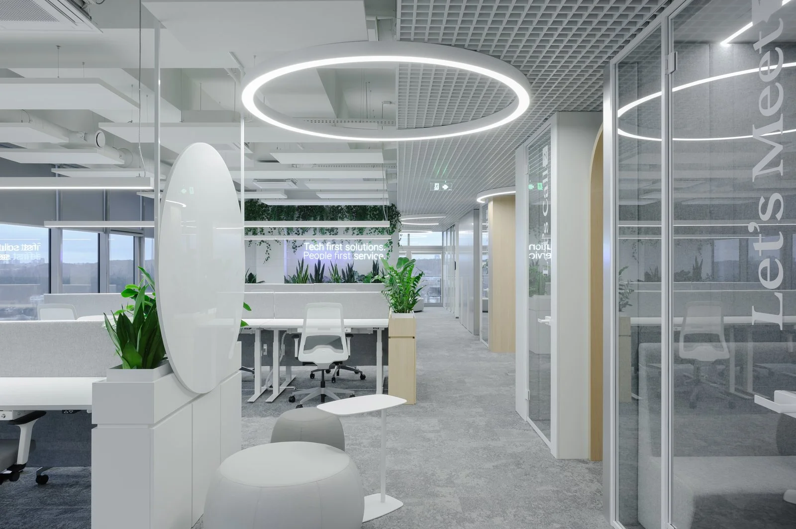 Išmanaus ir modernaus biuro interjero įgyvendinimui panaudoti JUNG sprendimai.