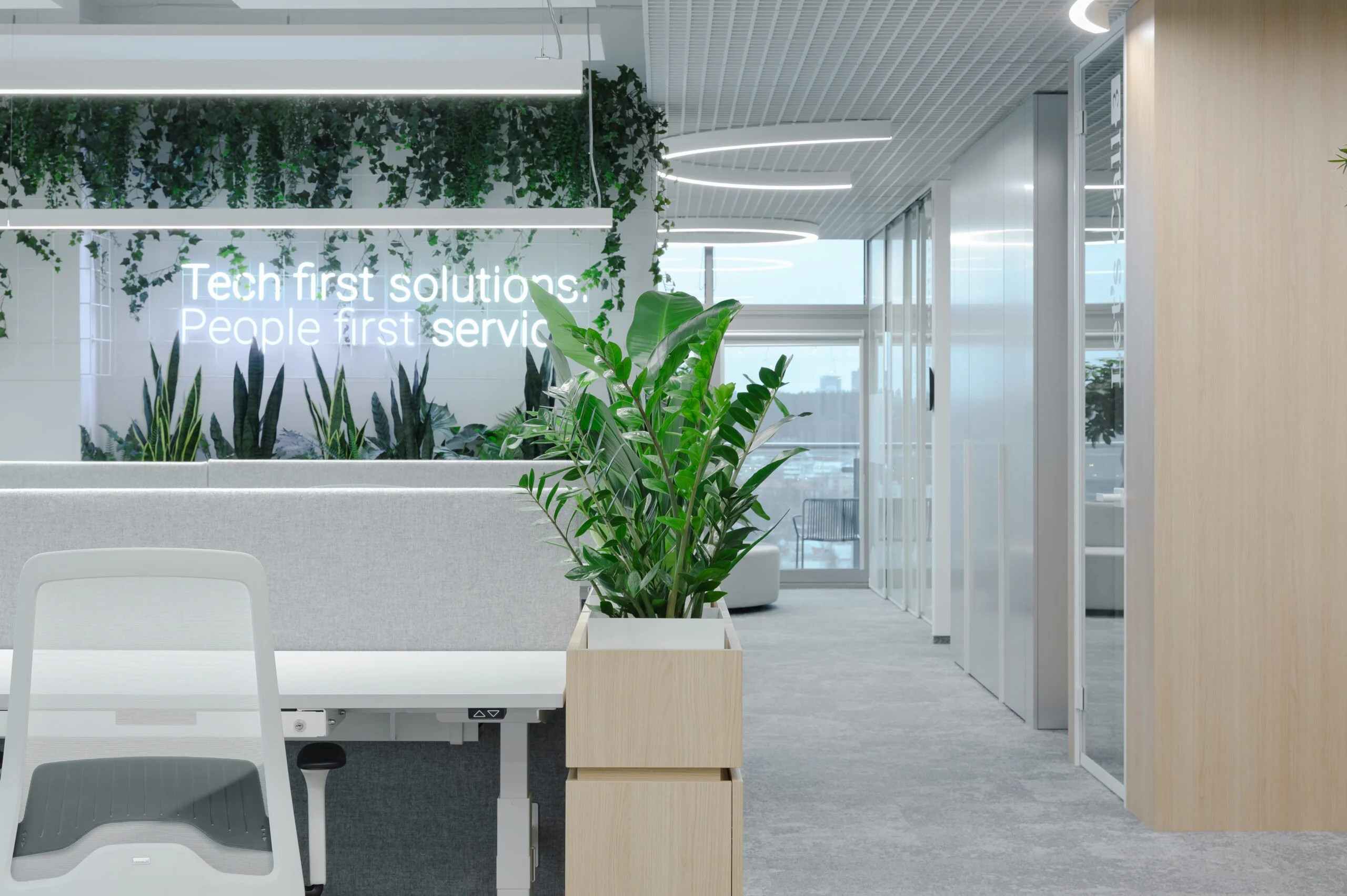 Pasirinktos kokybiškos ir ilgaamžės medžiagos, kurios užtikrina ne tik estetinius ir funkcionalius, bet ir atsakingus sprendimus. Tai erdvė, kurioje tvarumas susijęs su patvarumu ir ilgaamžiškumu, o kokybiškos medžiagos ir technologijos užtikrina ilgalaikį komfortą bei efektyvumą. Tai moderni ir įkvepianti darbo erdvė, kurioje dera profesionalus požiūris, inovacijos ir dizaino kokybė.