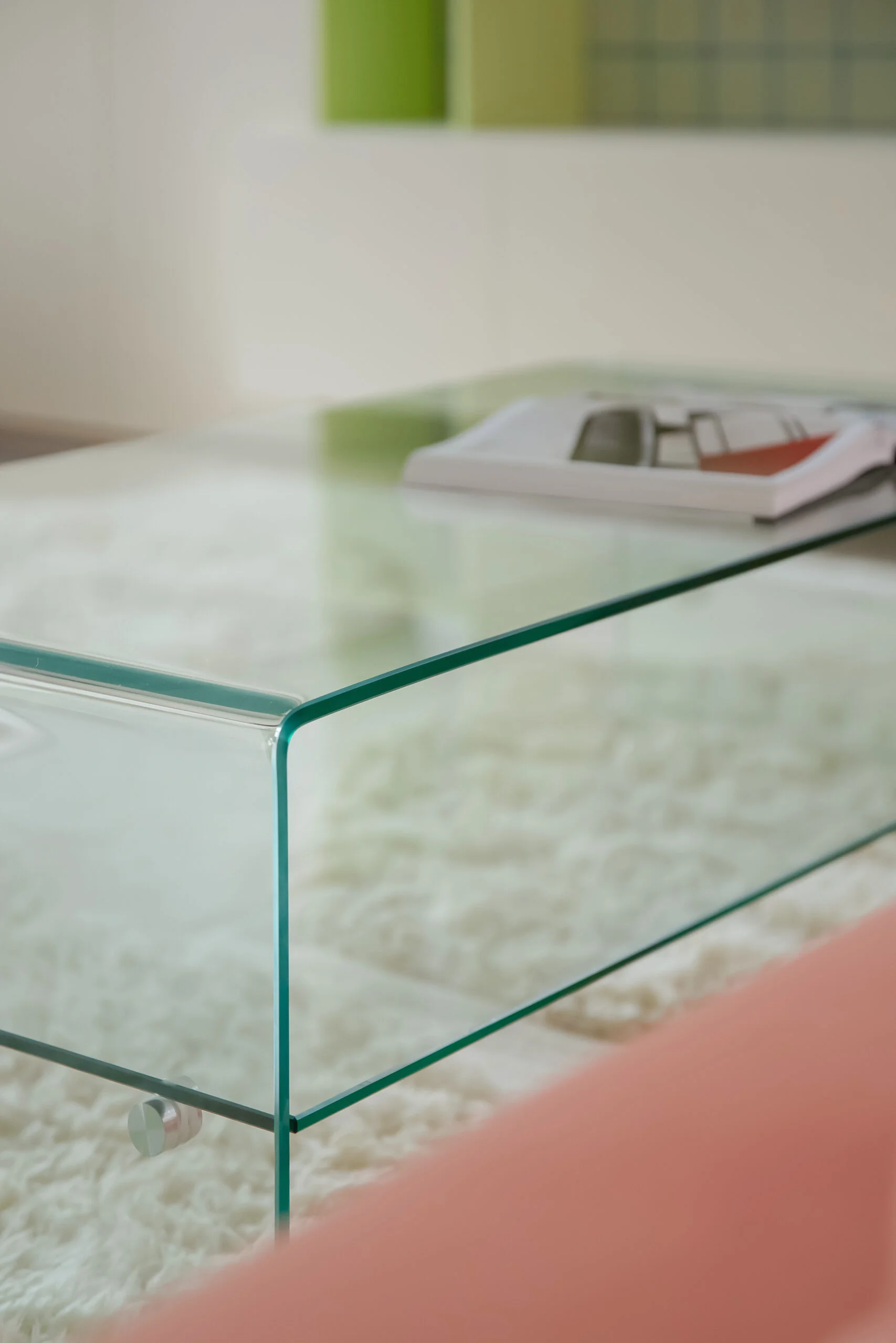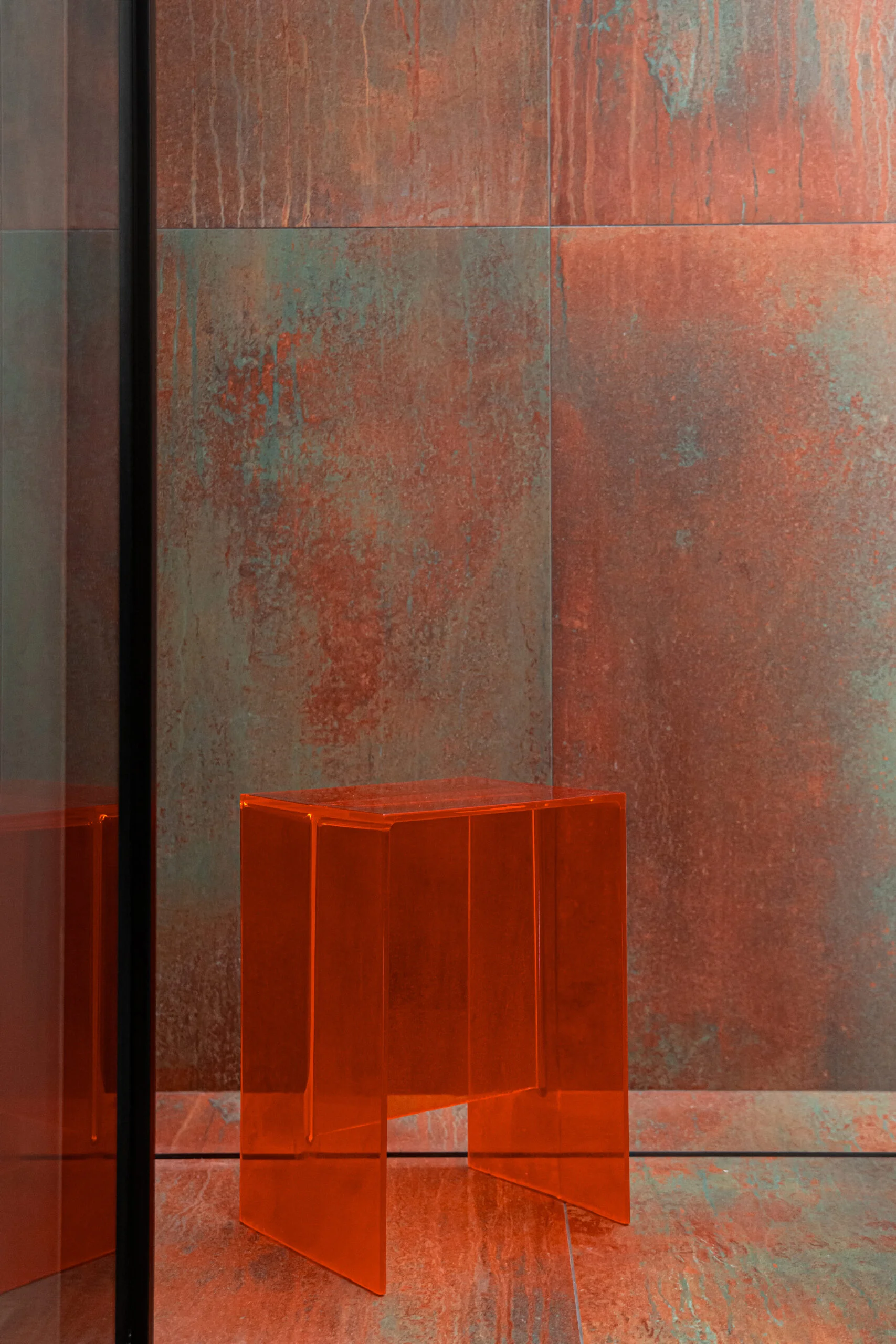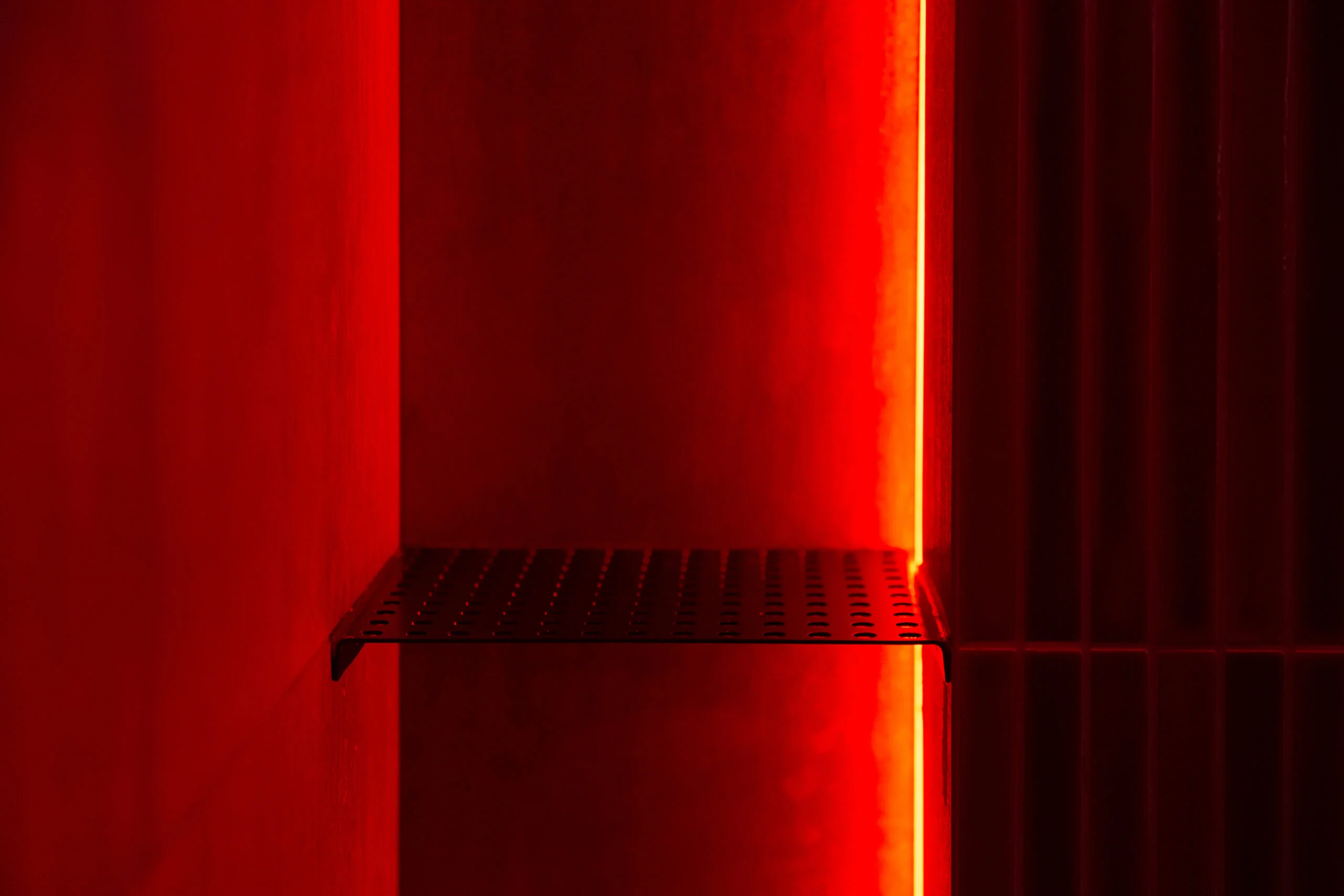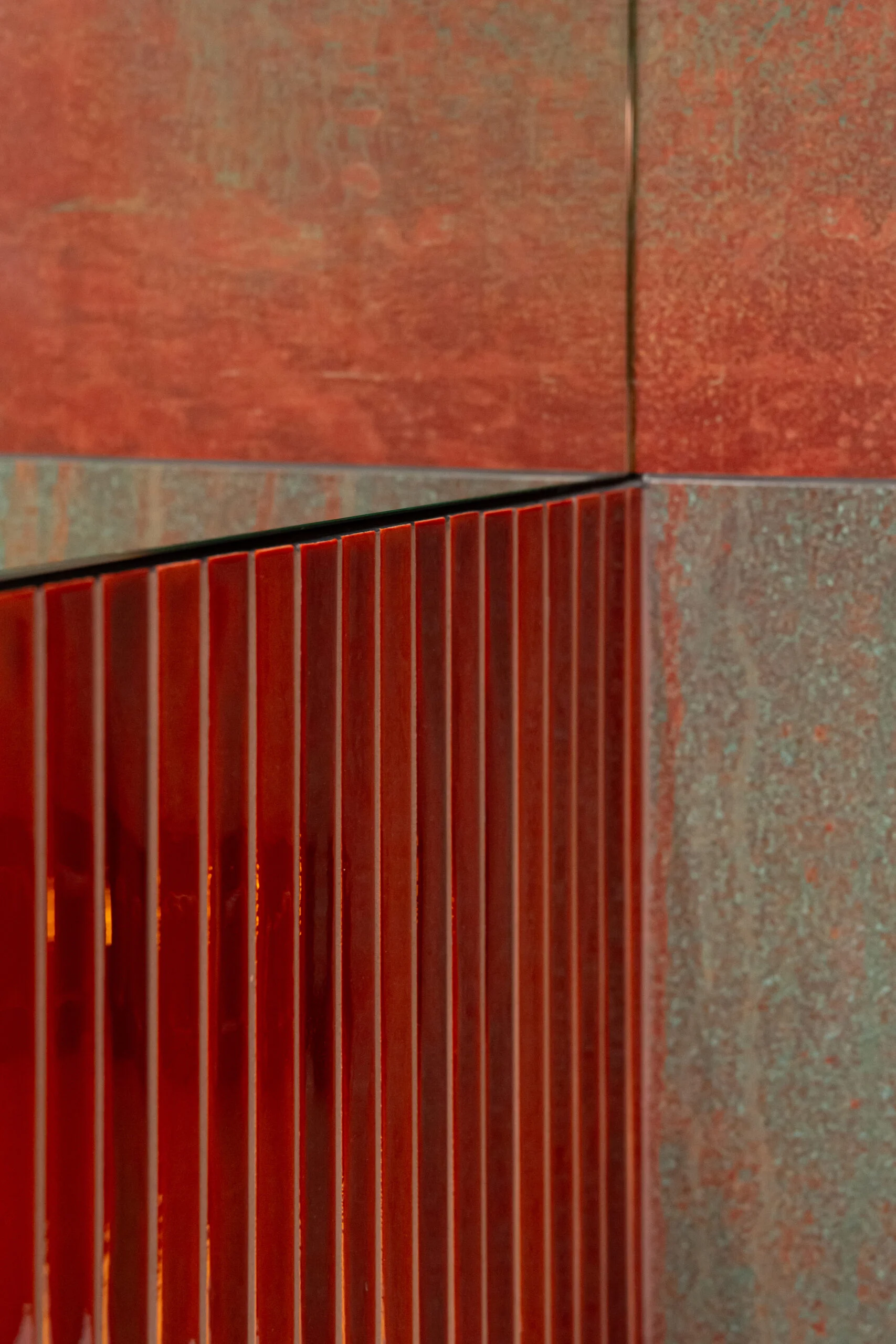 - Netradicinės medžiagos: estetinį ir funkcinį išskirtinumą suteikia rečiau gyvenamuosiuose interjeruose sutinkami elementai – skaidrūs stiklo blokeliai bei Himalajų druskos blokelių apdaila, suteikianti erdvei natūralios tekstūros ir šilumos.