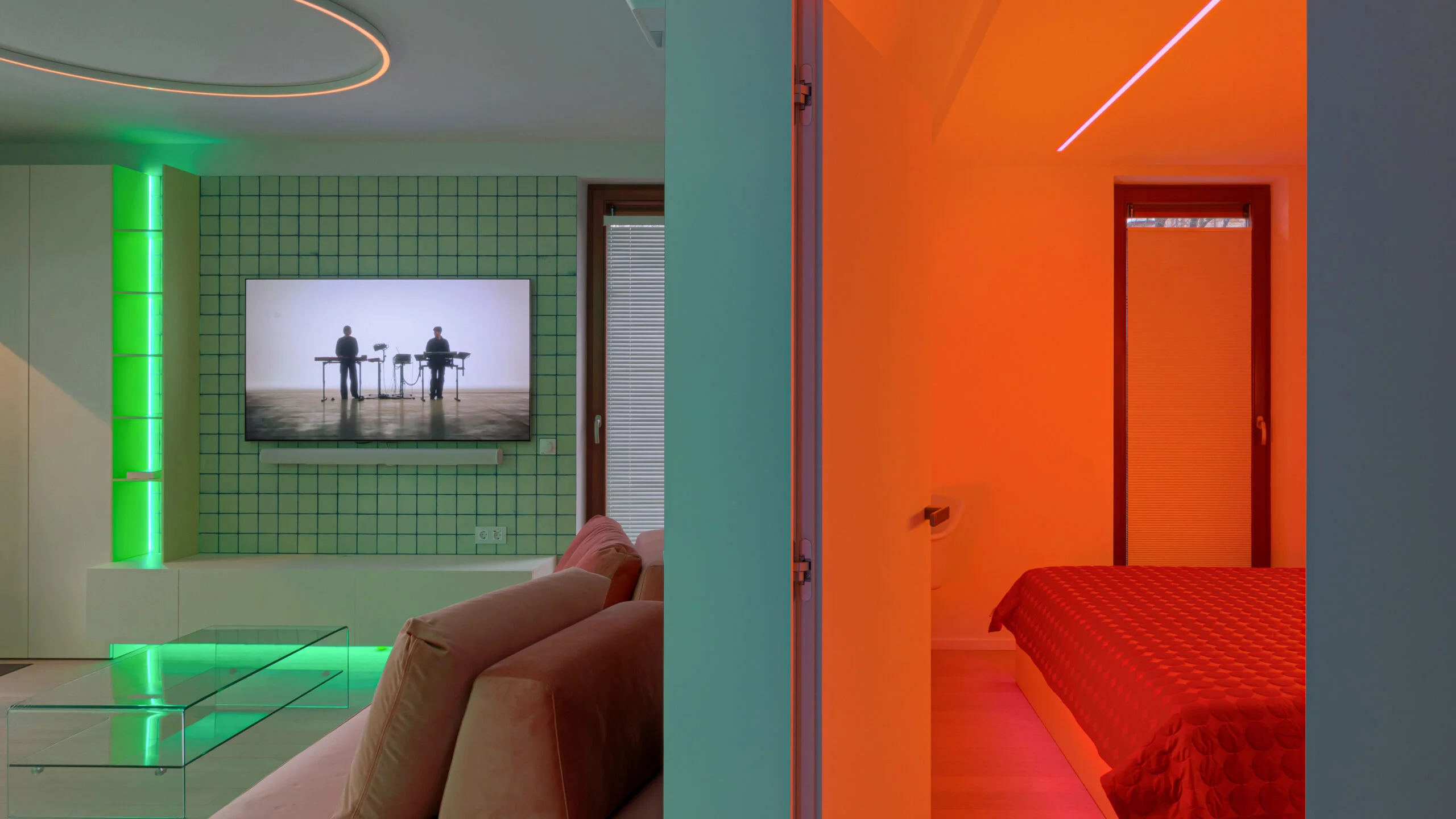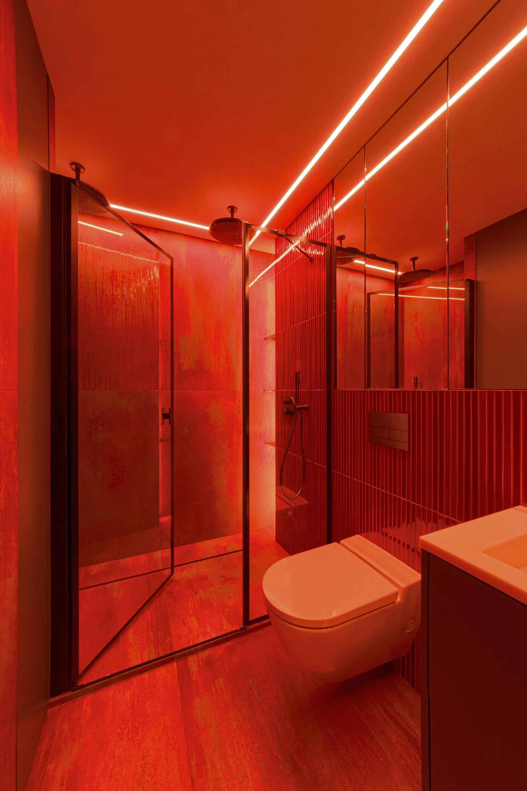 - RGB LED apšvietimas: visose erdvėse integruota išmanioji apšvietimo sistema leidžia gyventojams patiems programuoti spalvinę gamą pagal paros metą ar emocinę būseną.