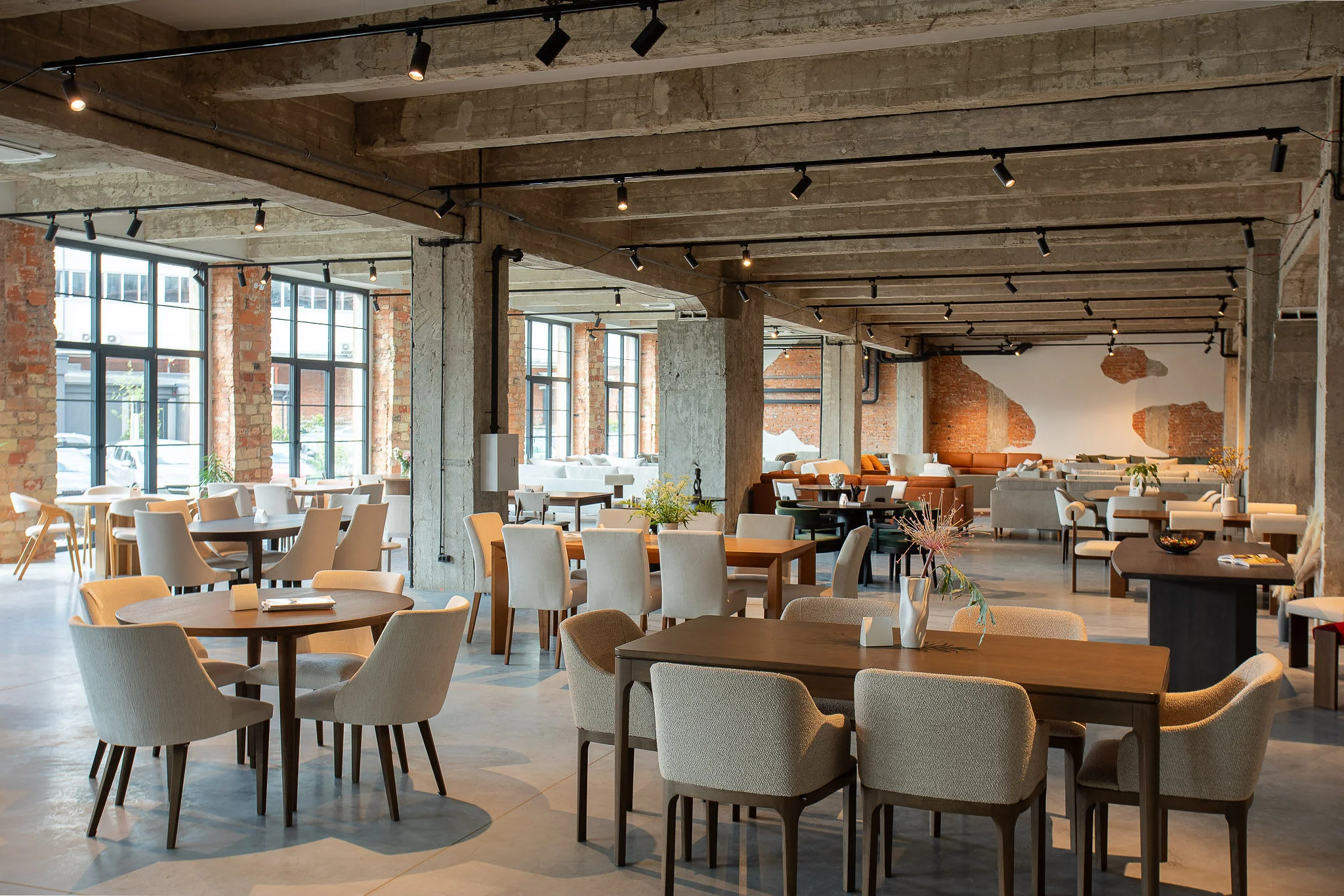 MATERIJA – industrinio stiliaus interjeras Kauno Drobės fabrike