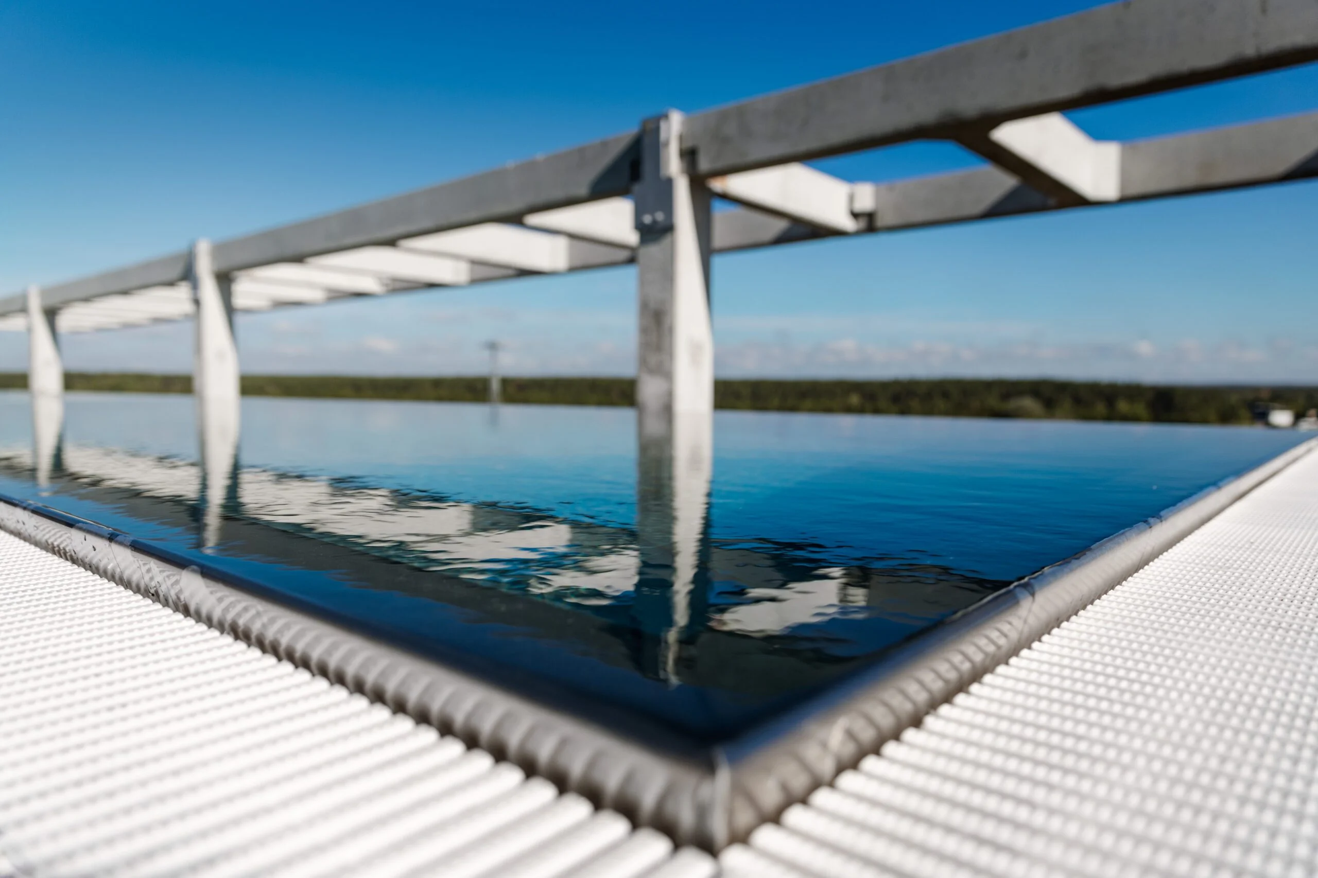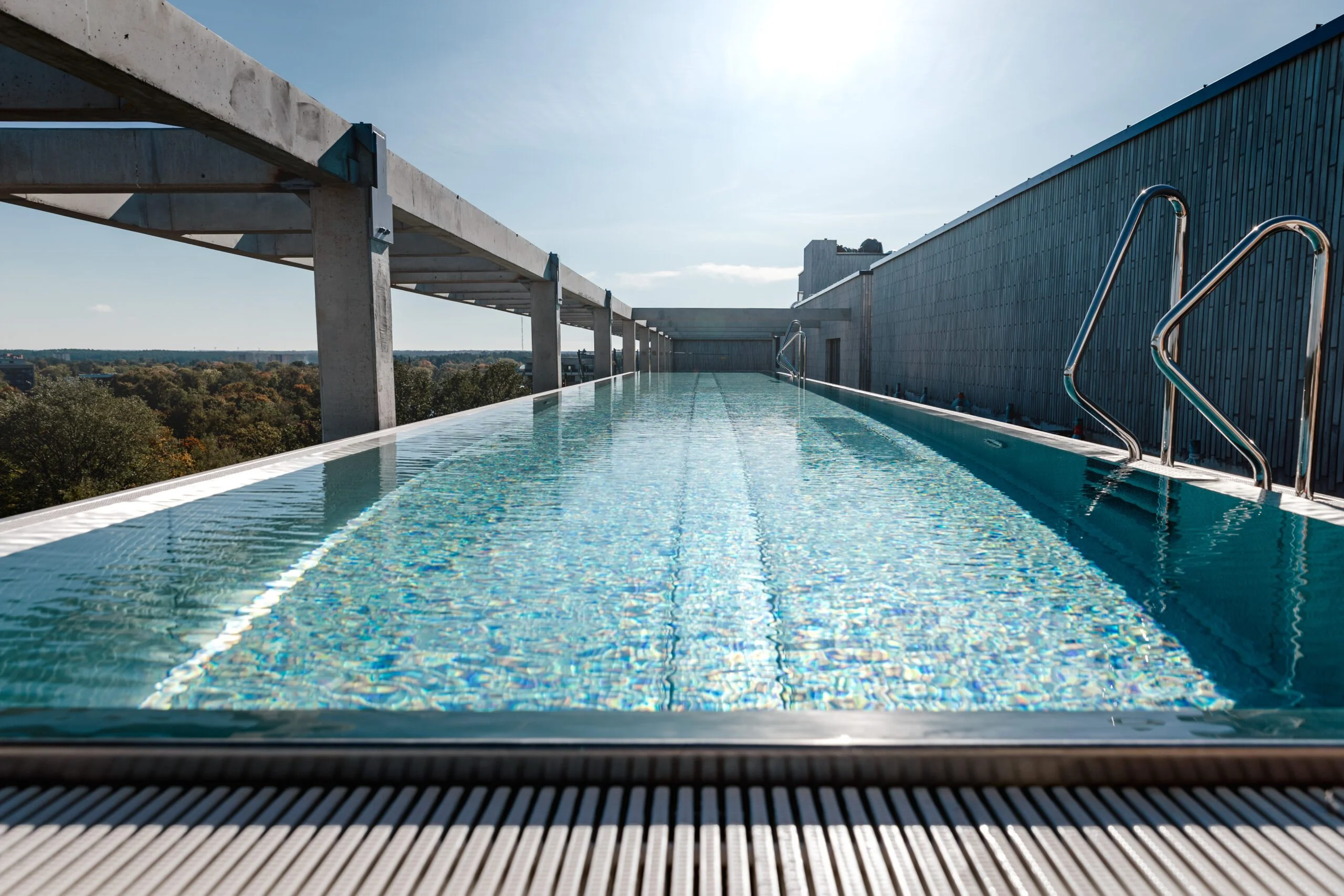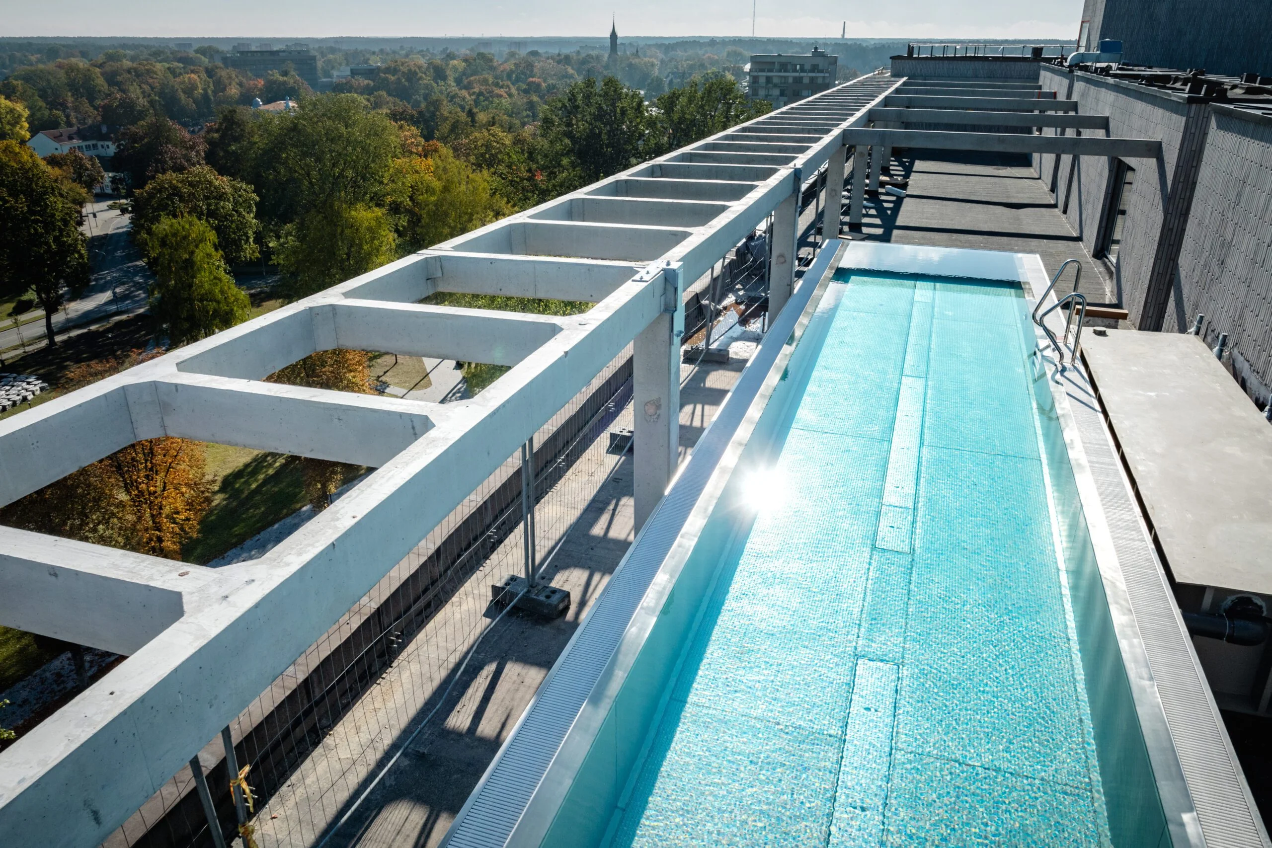 Ant pastato stogo, nuo kurio atsiveria įspūdinga 360 laipsnių panorama į Druskininkus, įrengtas kokteilių baras, atviras baseinas, sauna, persirengimo patalpos, yra galimybė įrengti restoraną. Dalis viršutiniuose pastato aukštuose esančių didžiausių apartamentų taip pat turi terasas ant stogo. Čia esantis baseinas – unikalus. Išskirtinio dydžio 60 kv. m ir 20 m ilgio atviro baseino ant stogo nėra visame Baltijos regione. Baseinas taip pat turi „begalybės“ (angl. infinity) kuriamą iliuziją, dar labiau susilieja su Druskininkų panorama.