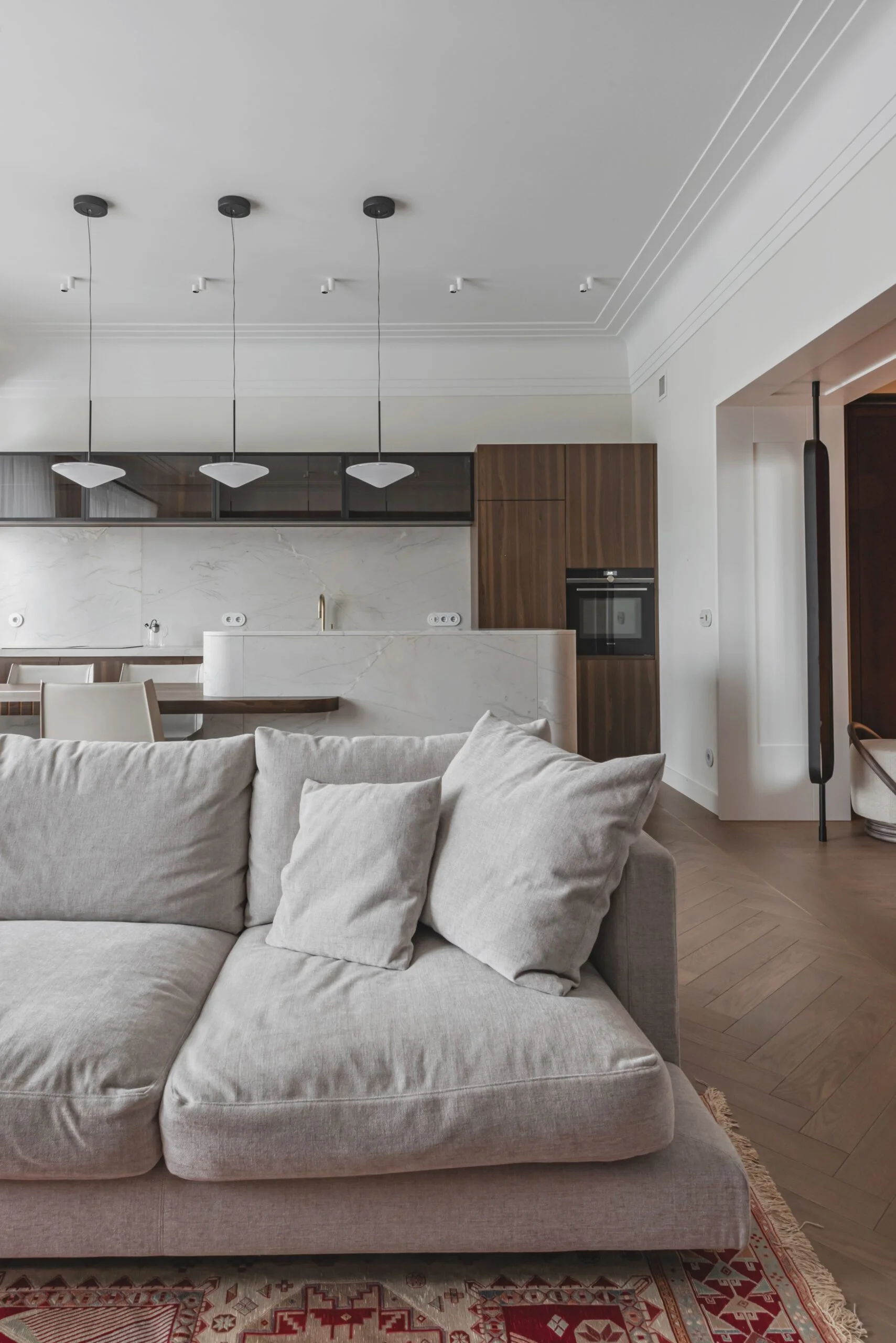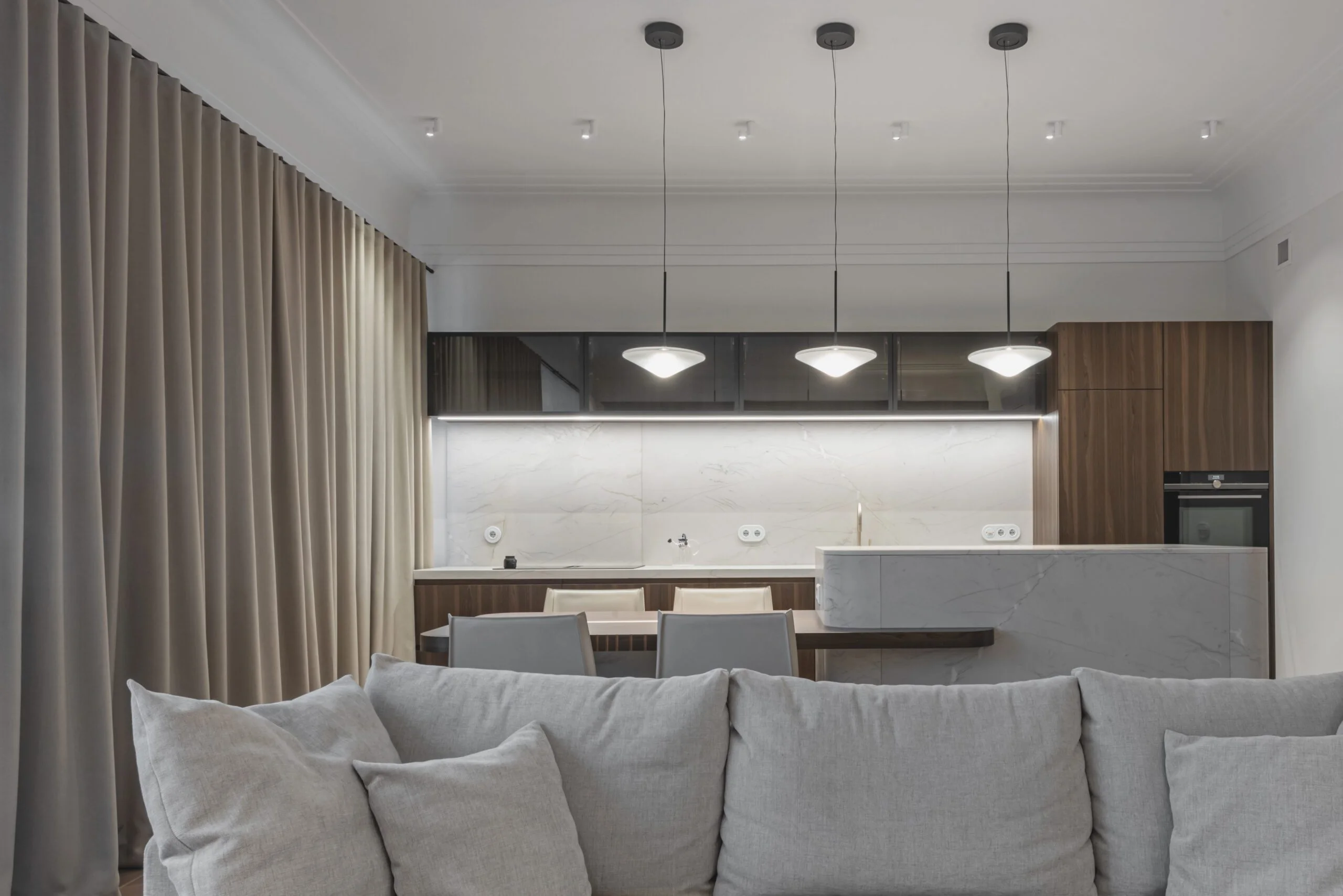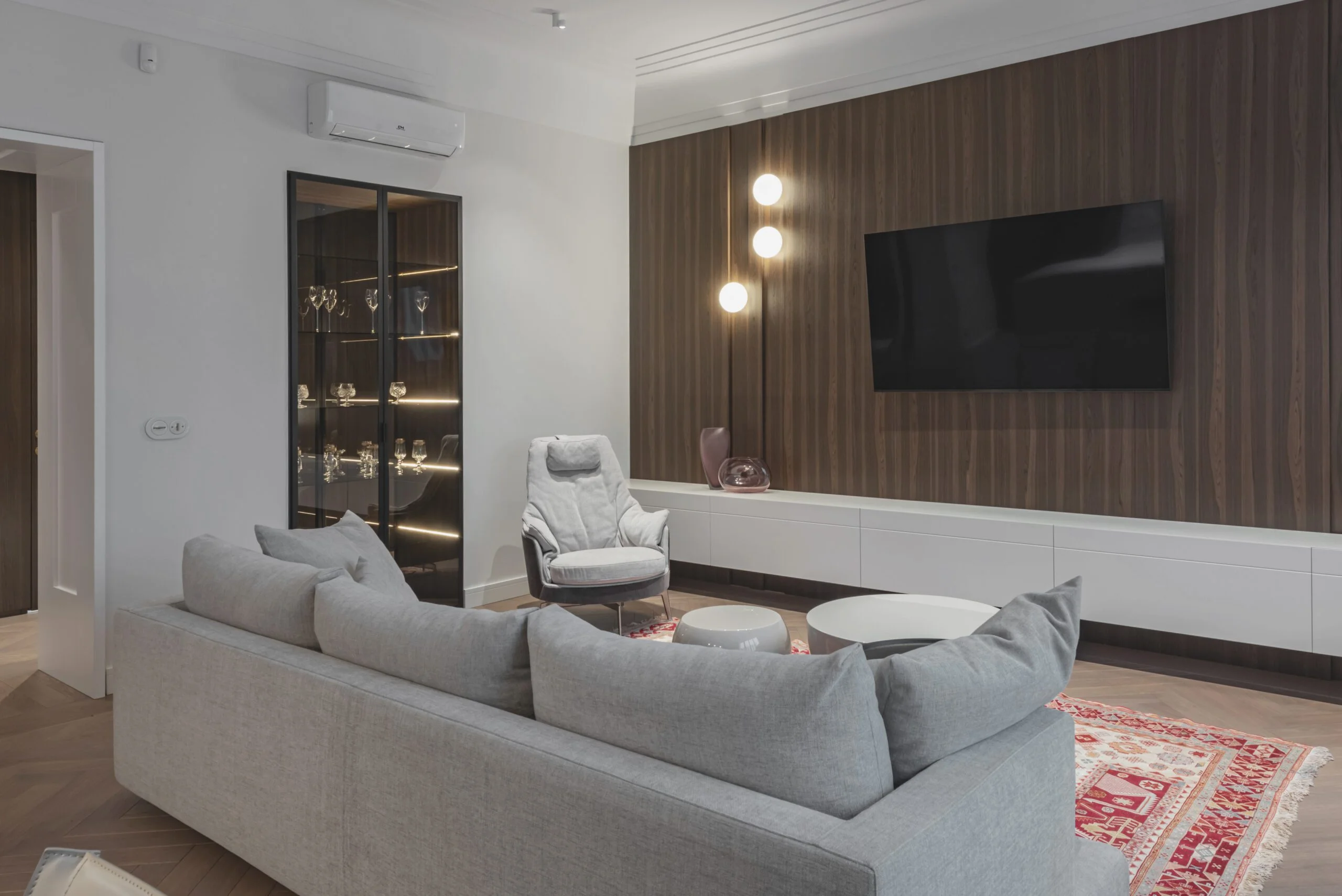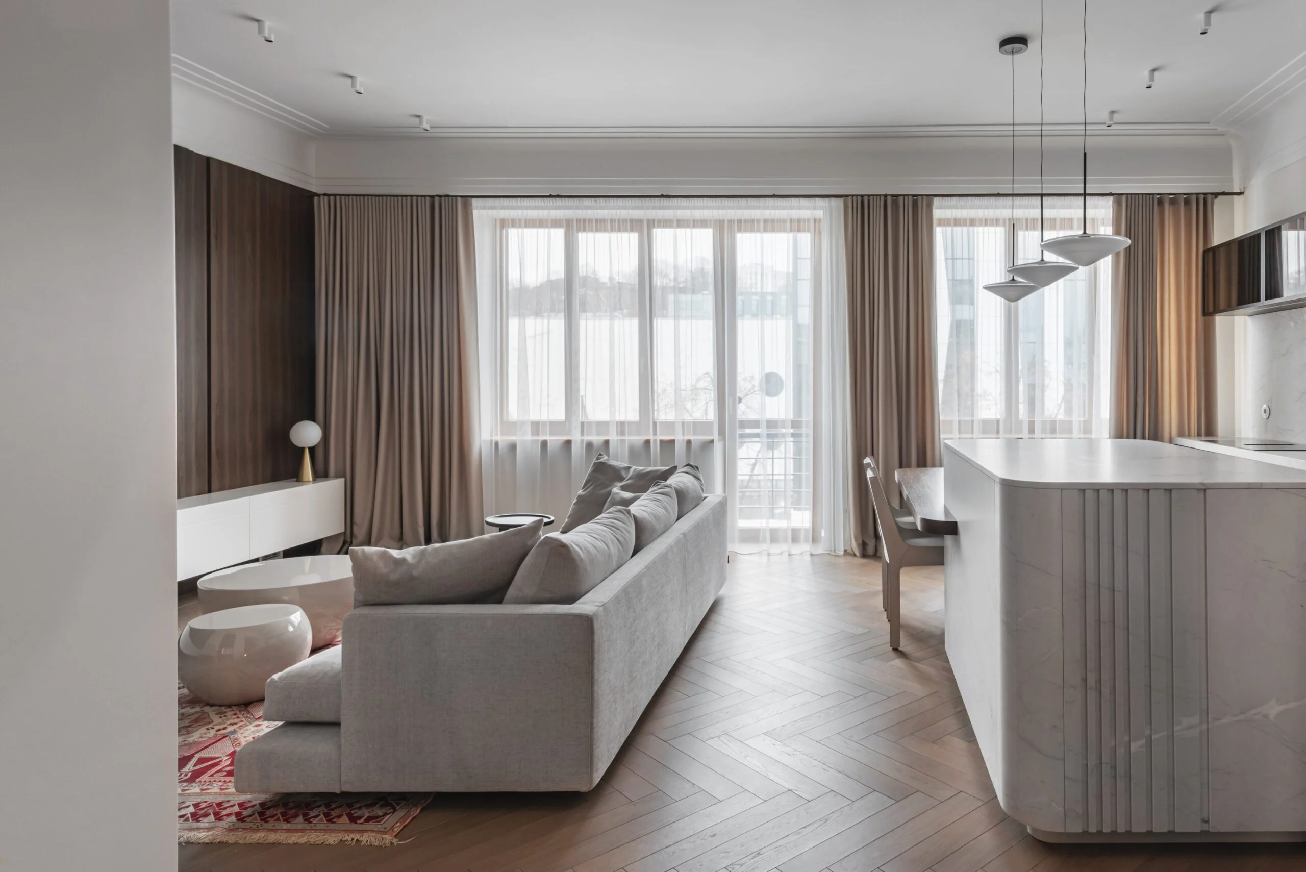 1932 m. inžinieriaus Geršono Davidavičiaus projektuotame name, kurio užsakovai buvo Dovydas ir Gedalis Ilgovskiai, esančio buto interjeras „gelbėtas“ iš euroremonto pinklių ir paverstas į „tarpukarinį perlą“. Namas yra išraiškingas Kauno tarpukario architektūros pavyzdys ir vienas iš geriausiai atpažįstamų Kauno centro gyvenamųjų pastatų. Pirmą kartą pamačius tą liūdną vaizdą – 110 kv. m. butą po jam atlikto pigių sprendimų nestokojančio remonto – užduotis buvo aiški – bent dalinai atstatyti originalų išplanavimą ir atkurti kuo daugiau šiam laikotarpiui būdingų detalių. Visgi, projektui nebuvo aktuali tik istorija, nes UNESCO paveldo sąrašui priklausančio pastato būste šeima norėjo jaukiai leisti savo miestietiškus savaitgalius.