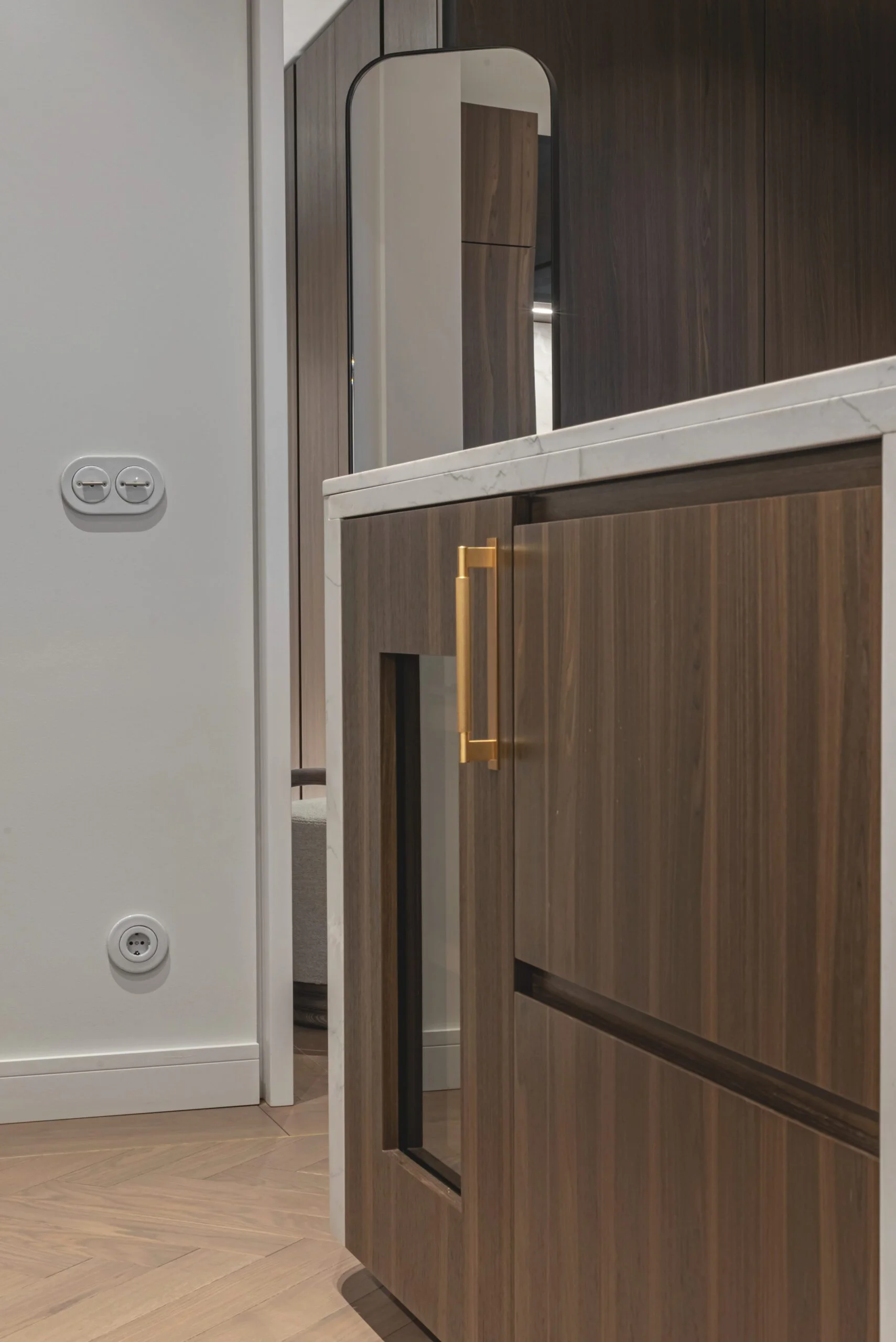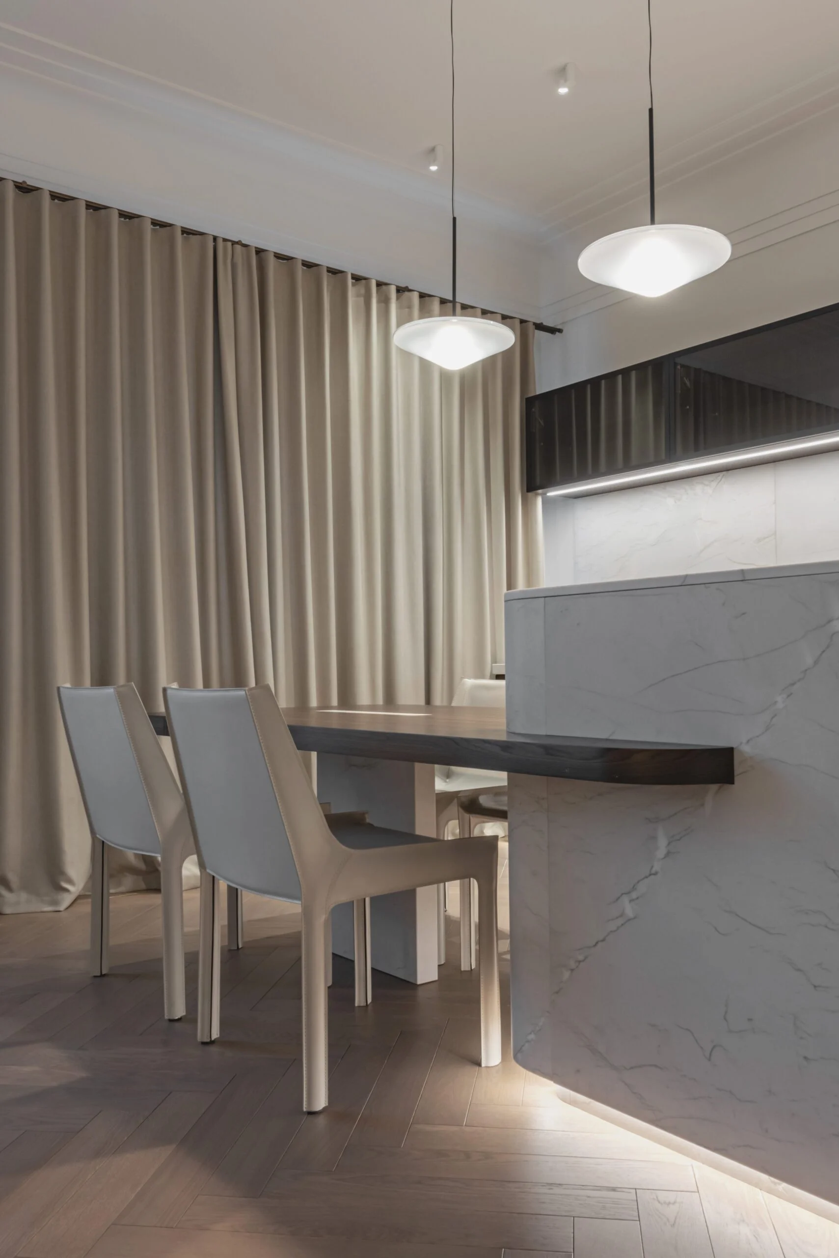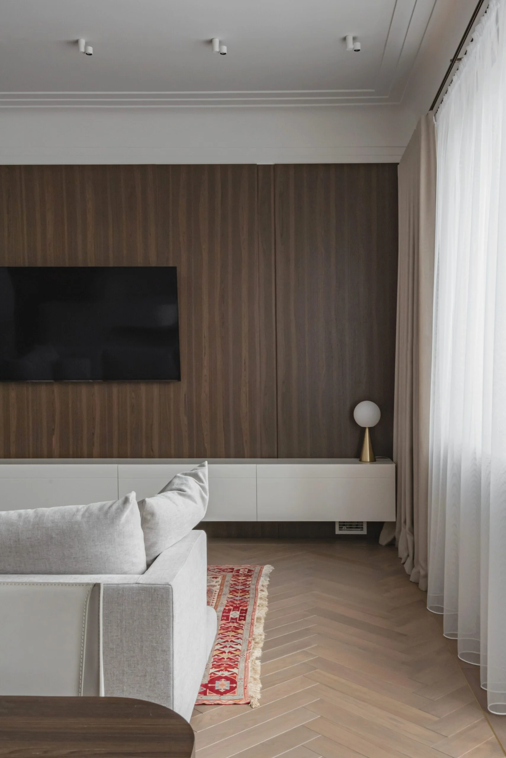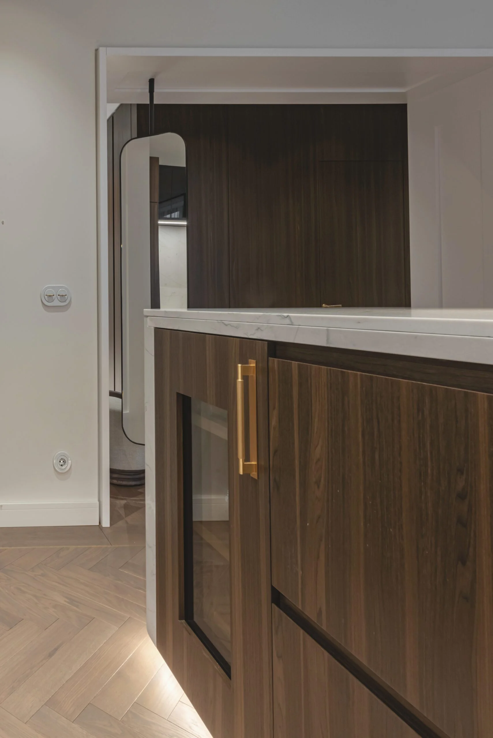 1932 m. inžinieriaus Geršono Davidavičiaus projektuotame name, kurio užsakovai buvo Dovydas ir Gedalis Ilgovskiai, esančio buto interjeras „gelbėtas“ iš euroremonto pinklių ir paverstas į „tarpukarinį perlą“. Namas yra išraiškingas Kauno tarpukario architektūros pavyzdys ir vienas iš geriausiai atpažįstamų Kauno centro gyvenamųjų pastatų. Pirmą kartą pamačius tą liūdną vaizdą – 110 kv. m. butą po jam atlikto pigių sprendimų nestokojančio remonto – užduotis buvo aiški – bent dalinai atstatyti originalų išplanavimą ir atkurti kuo daugiau šiam laikotarpiui būdingų detalių. Visgi, projektui nebuvo aktuali tik istorija, nes UNESCO paveldo sąrašui priklausančio pastato būste šeima norėjo jaukiai leisti savo miestietiškus savaitgalius.