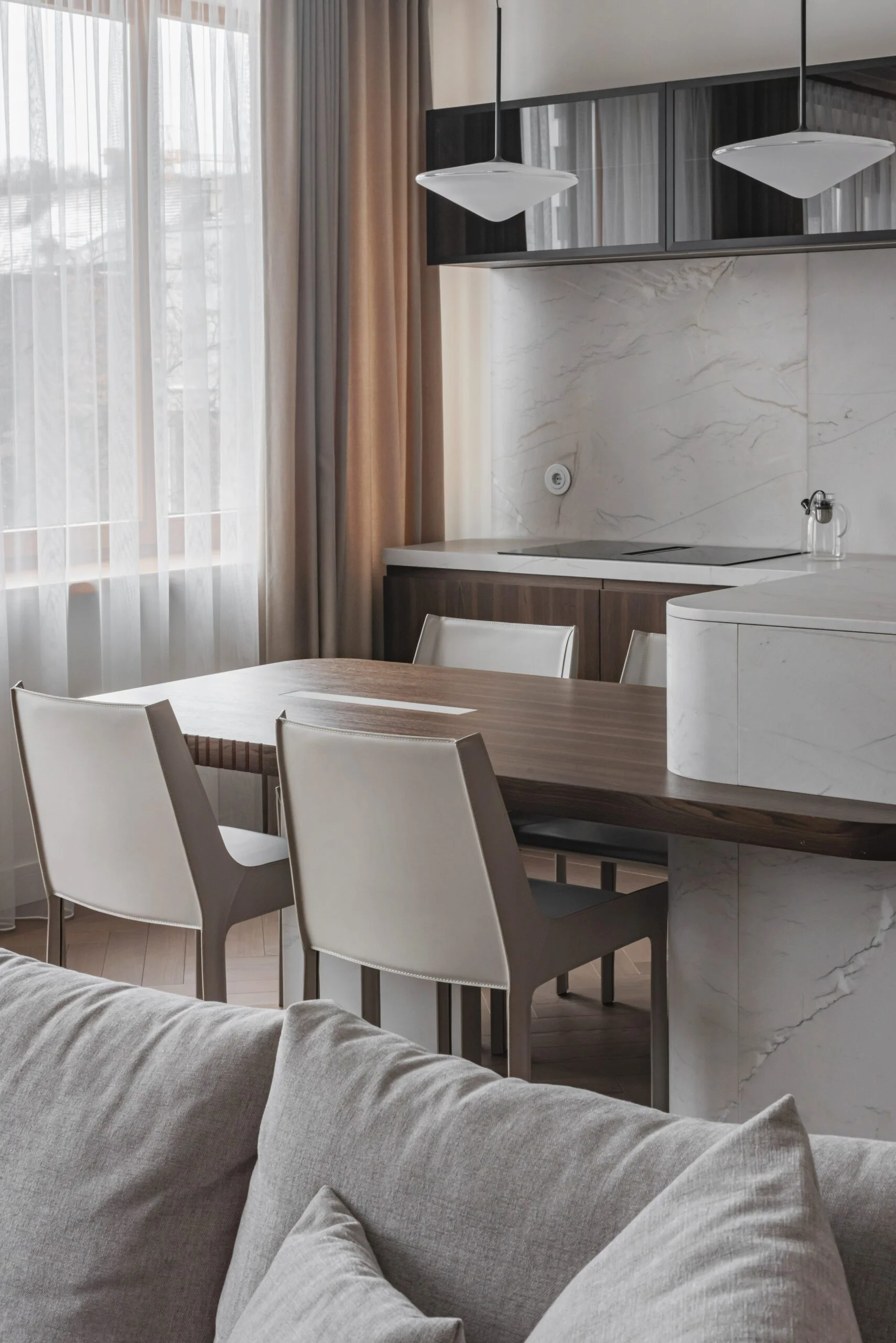 Interjeras „Feniksas“ akcentuoja apšvietimo ir bendros atmosferos kuriamą jaukumą. Derinant kliento poreikius ir tarpukario tendencijas, parinkta šviesi aplinka, kurioje geriau atsiskleidė tamsi faneruotė ir spalvingi akcentai. Vonios patalpoje naudoti tuo laikmečiu populiarūs plytelių profiliai ir grindjuostės, vaikų kambariuose derinti žaismingi ir multifunkciniai baldai, o miegamųjų ir gyvenamosios erdvės grindys papuoštos ryškiais prabangių kilimų akcentais.