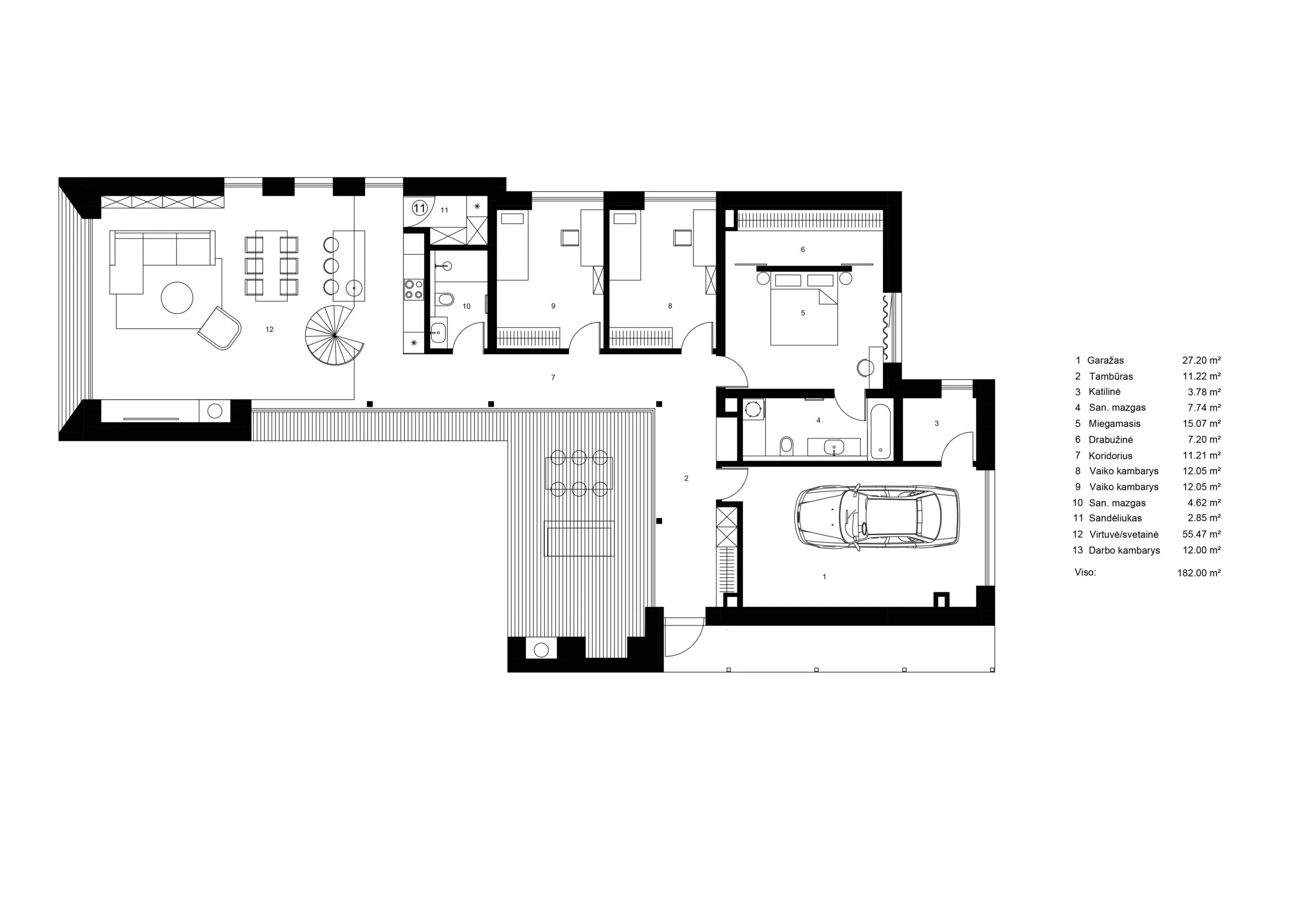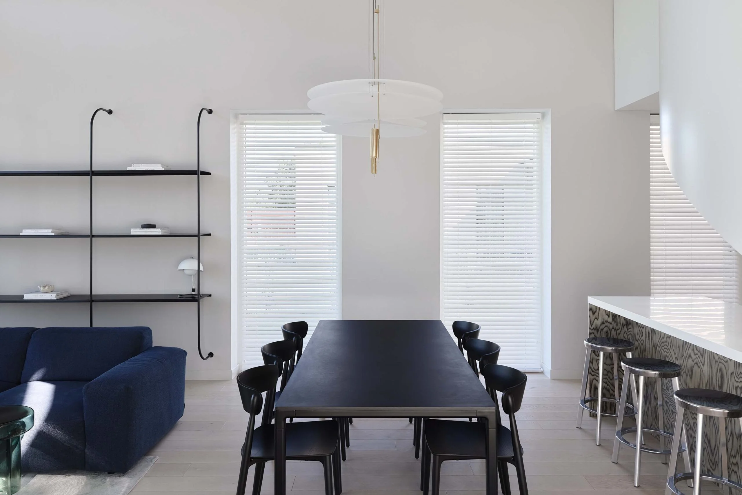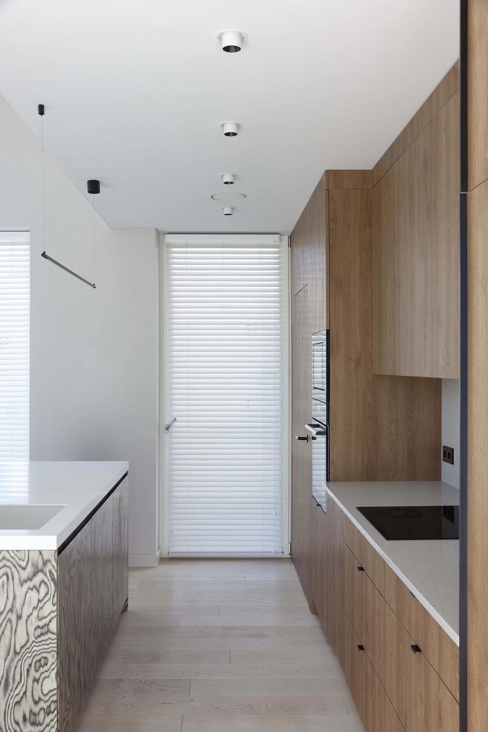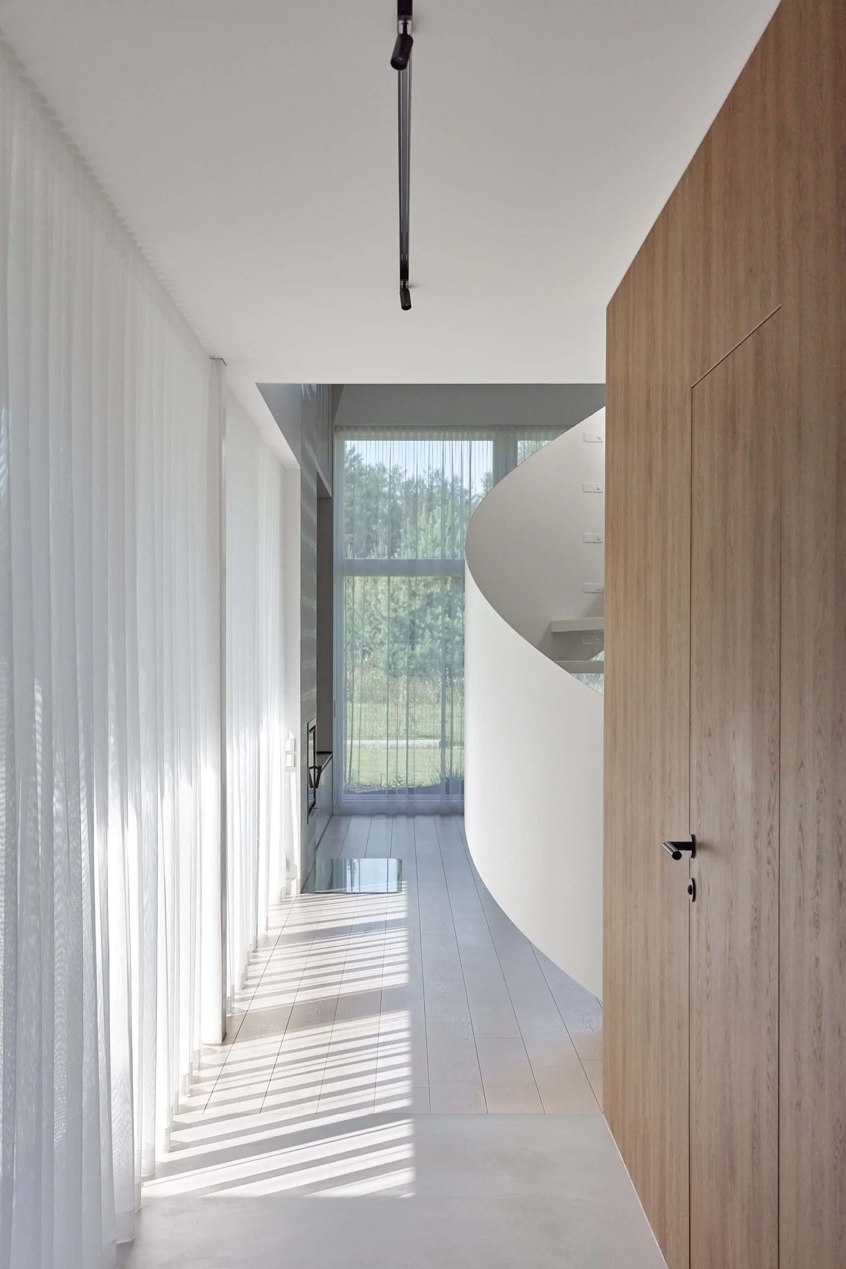 Interjeras organiškai papildo architektūrą – architektūrinė struktūra ir interjero sprendimai veikia kaip vientisa visuma, kurioje dera švara, estetika ir funkcionalumas.