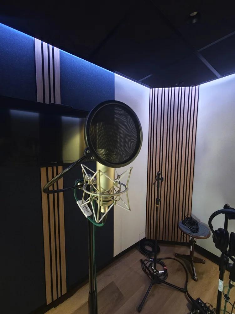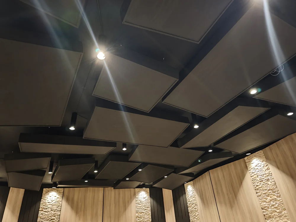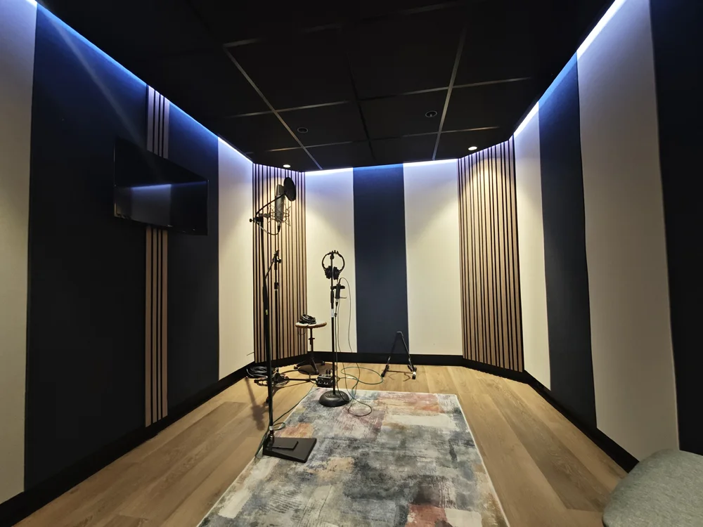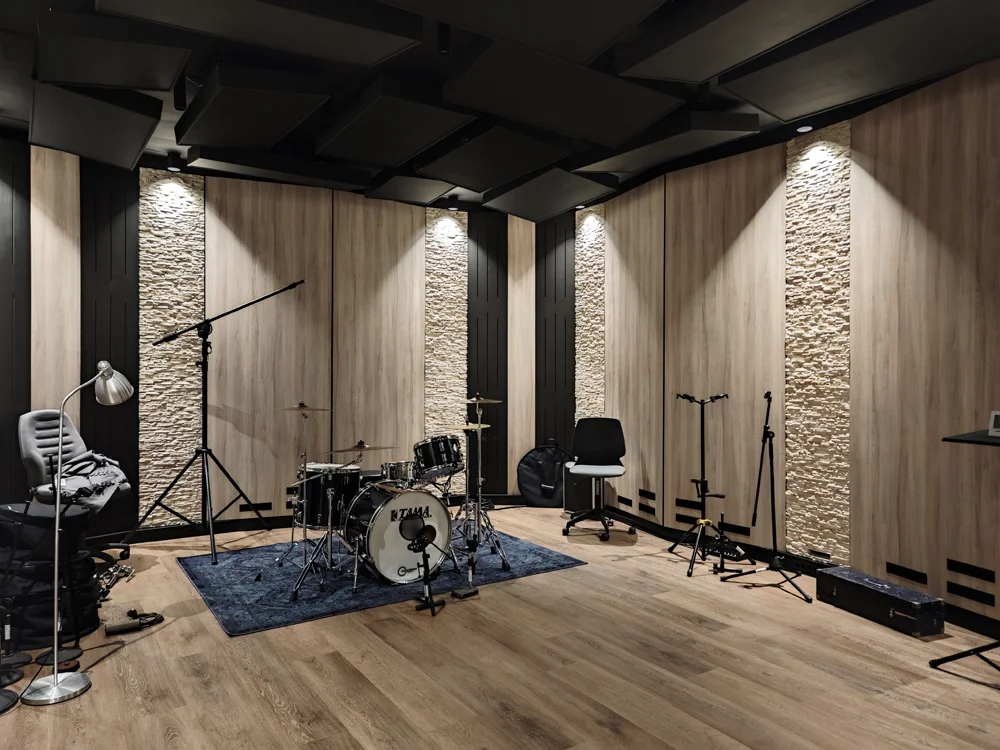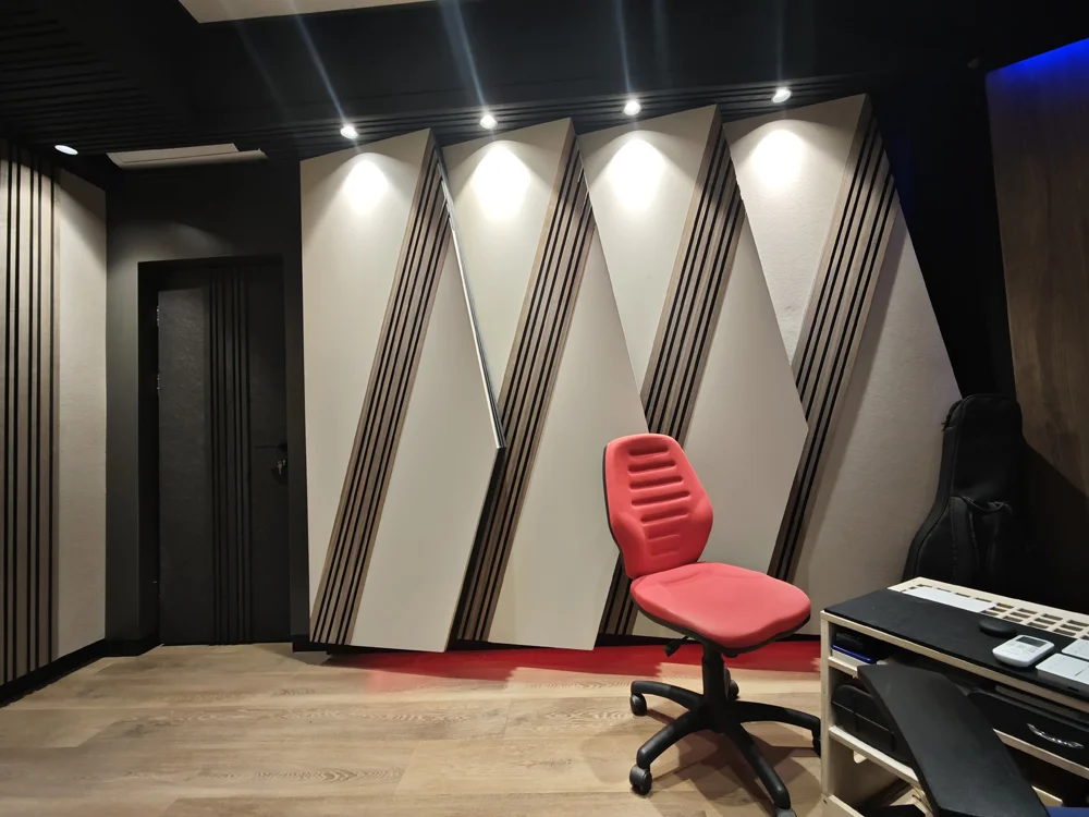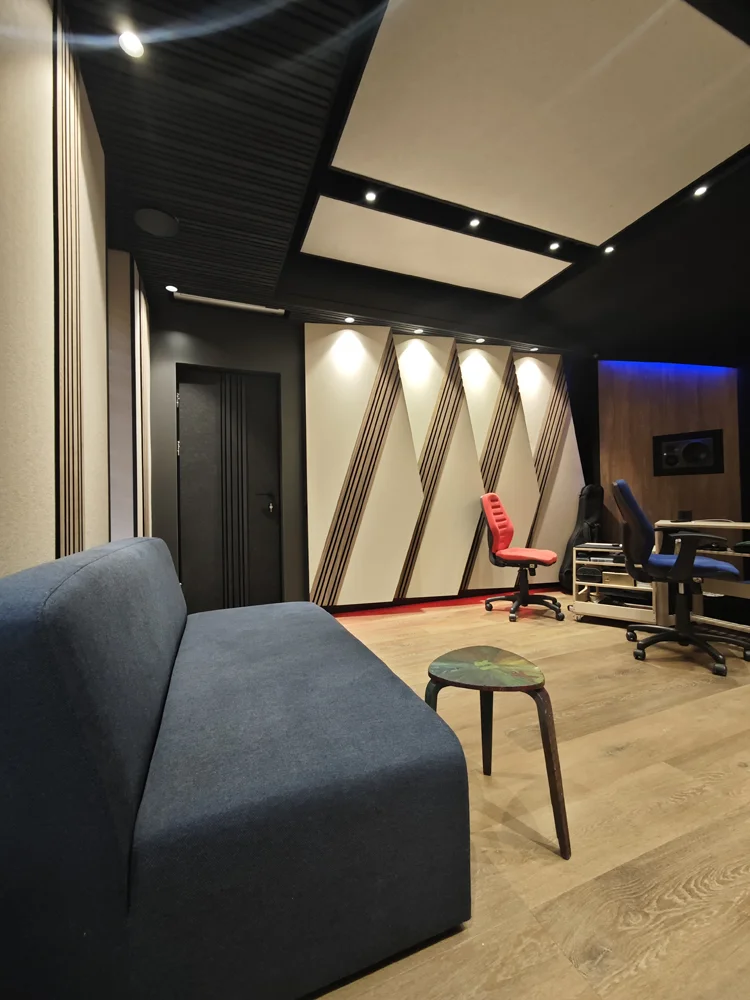 - Funkcinę estetiką: nuo specialių rozečių iki apšvietimo scenarijų – kiekviena detalė buvo derinama taip, kad netrukdytų garso izoliacijai, bet kurtų kūrybinę atmosferą.