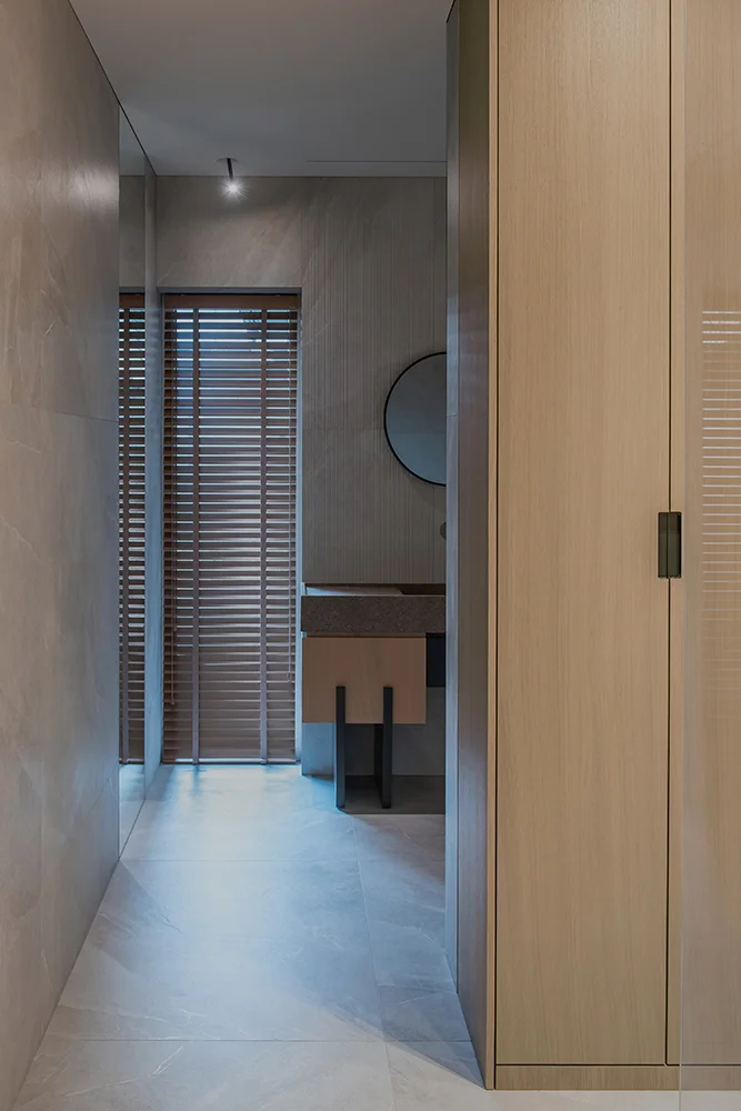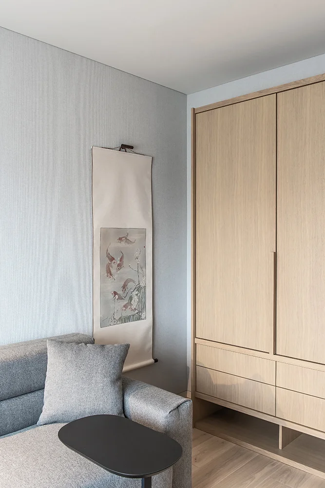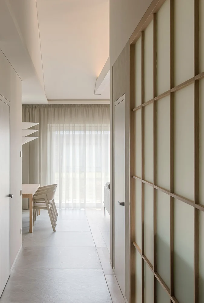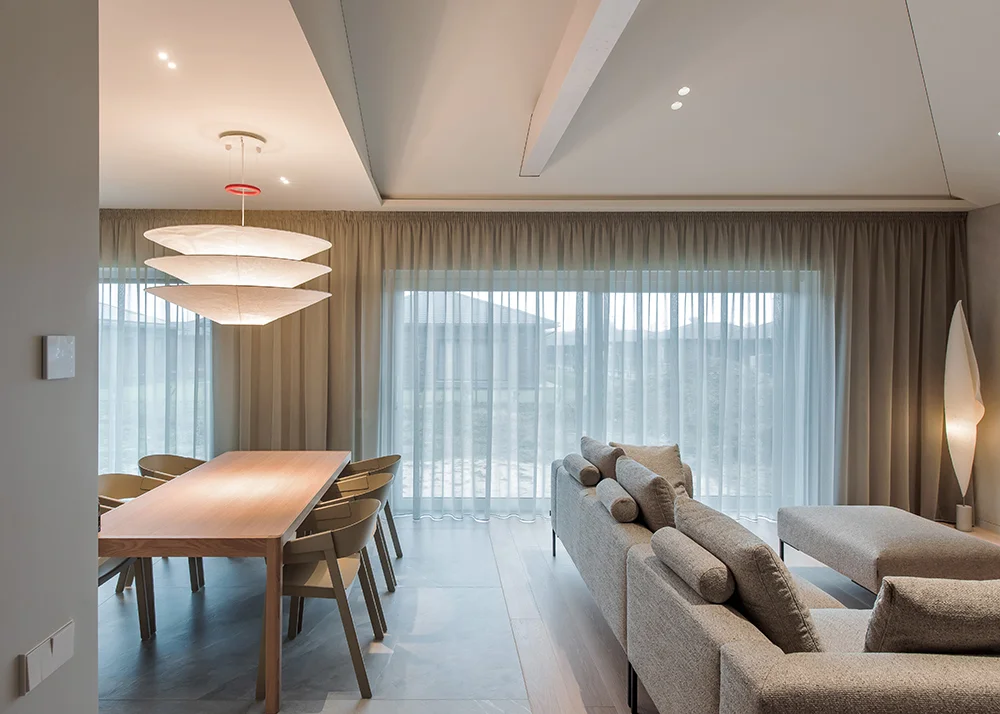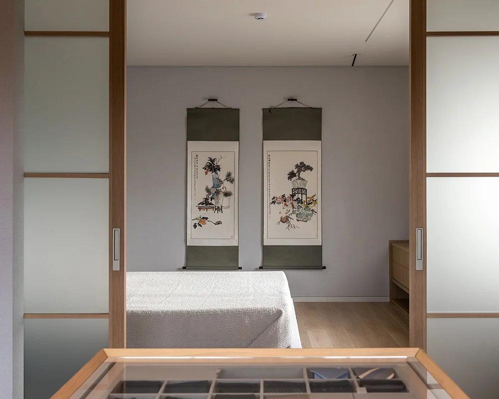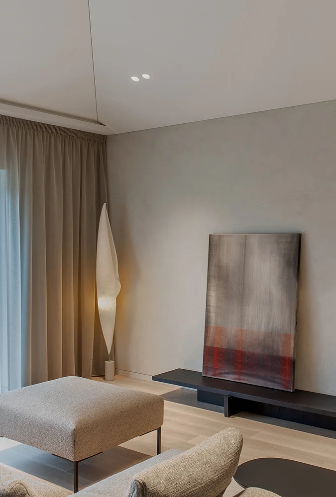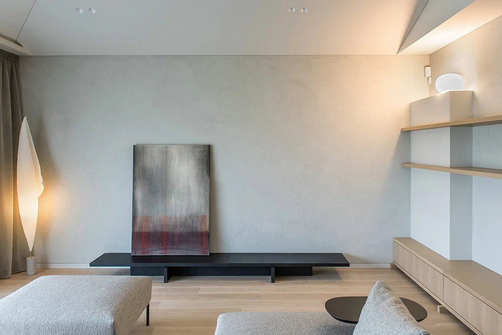 Šilti medžio atspalviai, neutralios pilkos, baltos ir žemiškai rudos spalvos – kuria ramybės atmosferą. Subtilių tekstūrų įvairovė varijuoja nuo akmens, dekoratyvaus tinko ir medienos paviršių iki matinio stiklo pertvarų tarp patalpų bei Ingo Maurer šviestuvų, pagamintų iš japoniško popieriaus. Dar 1970-1980 metais sukurti šviestuvai deklaruoja norą priartėti prie natūralių medžiagų bei skleisti šviesos poeziją. Subtiliai suglamžyta japoniško popieriaus faktūra sukuria šiltą, švelniai paskirstytą šviesą ir pavirsta į savotišką šviesos ir sklendžiančio popieriaus skulptūrą. Visa tai padeda pabėgti nuo kasdienio skubėjimo ir sukurti erdves apmąstymams ir tyliam būvimui.