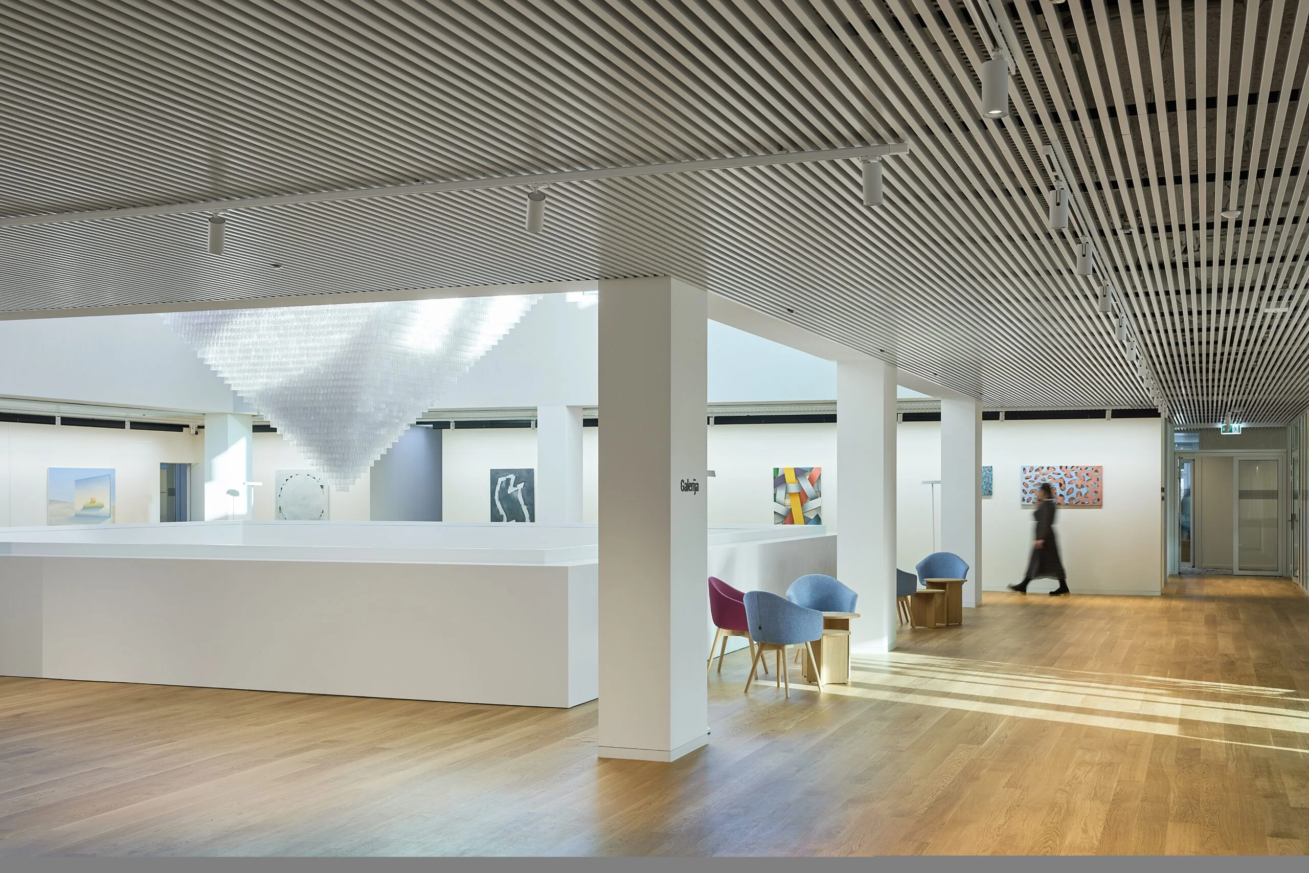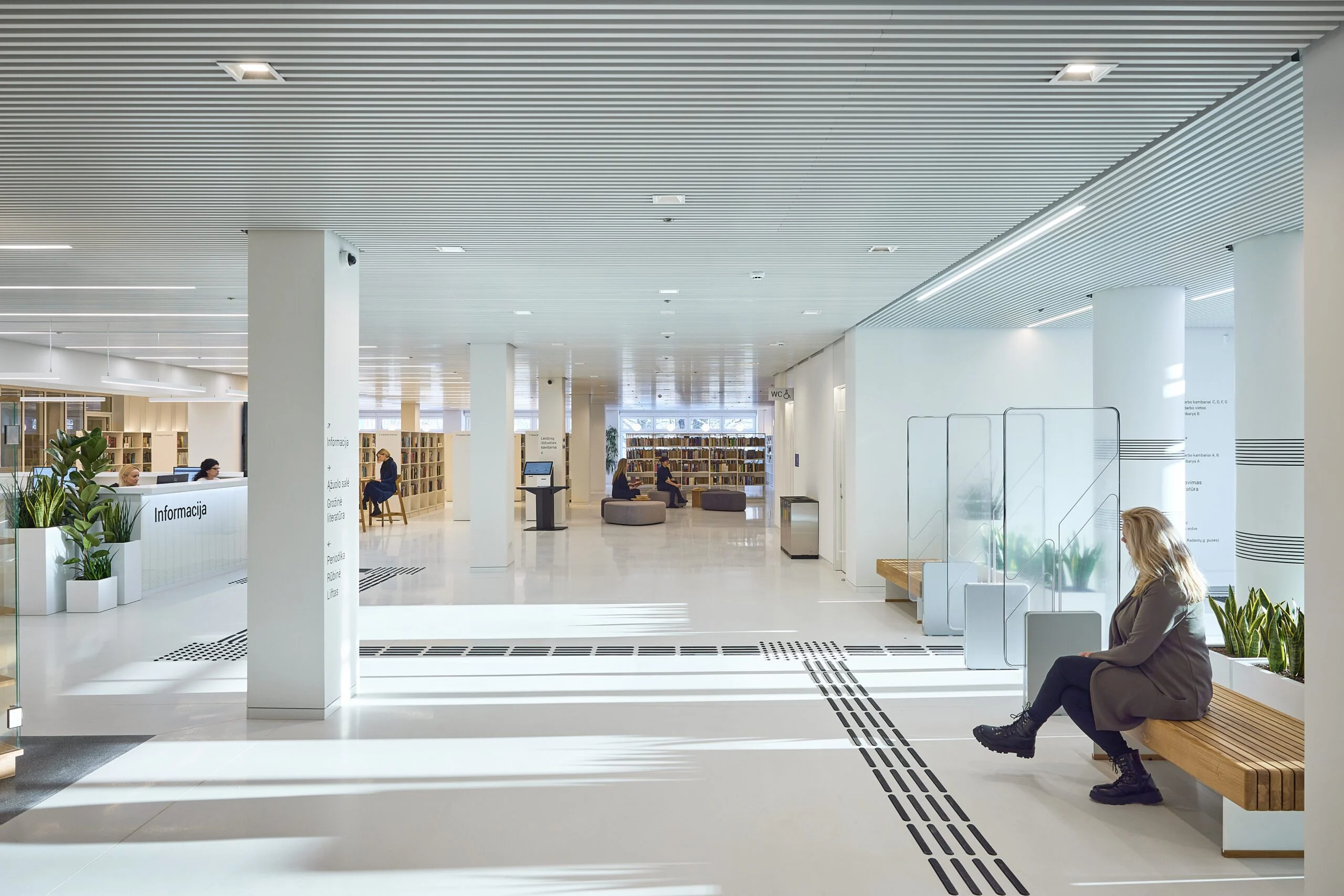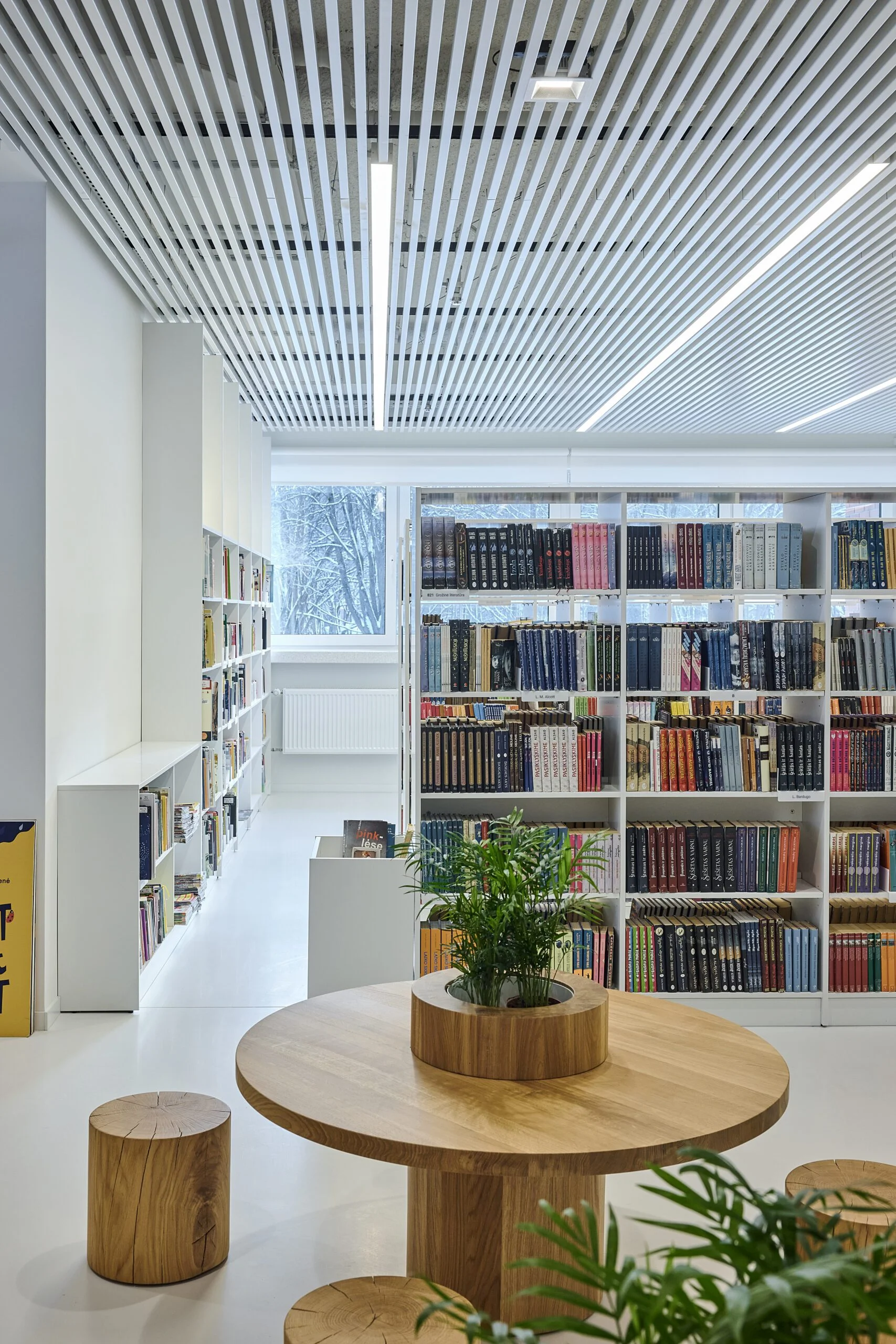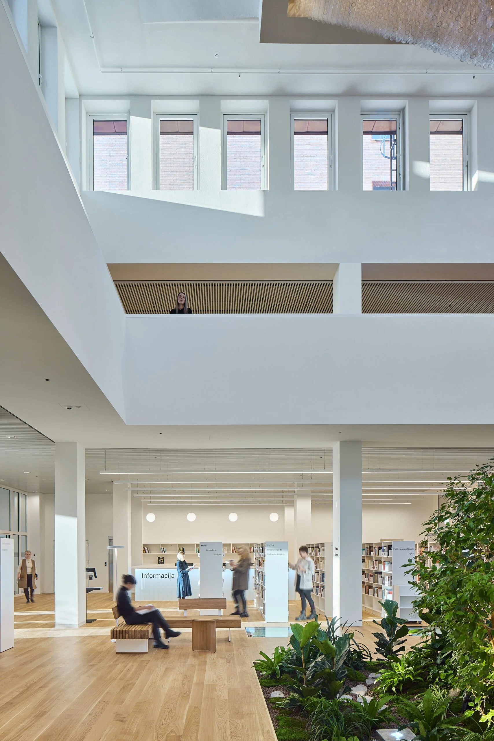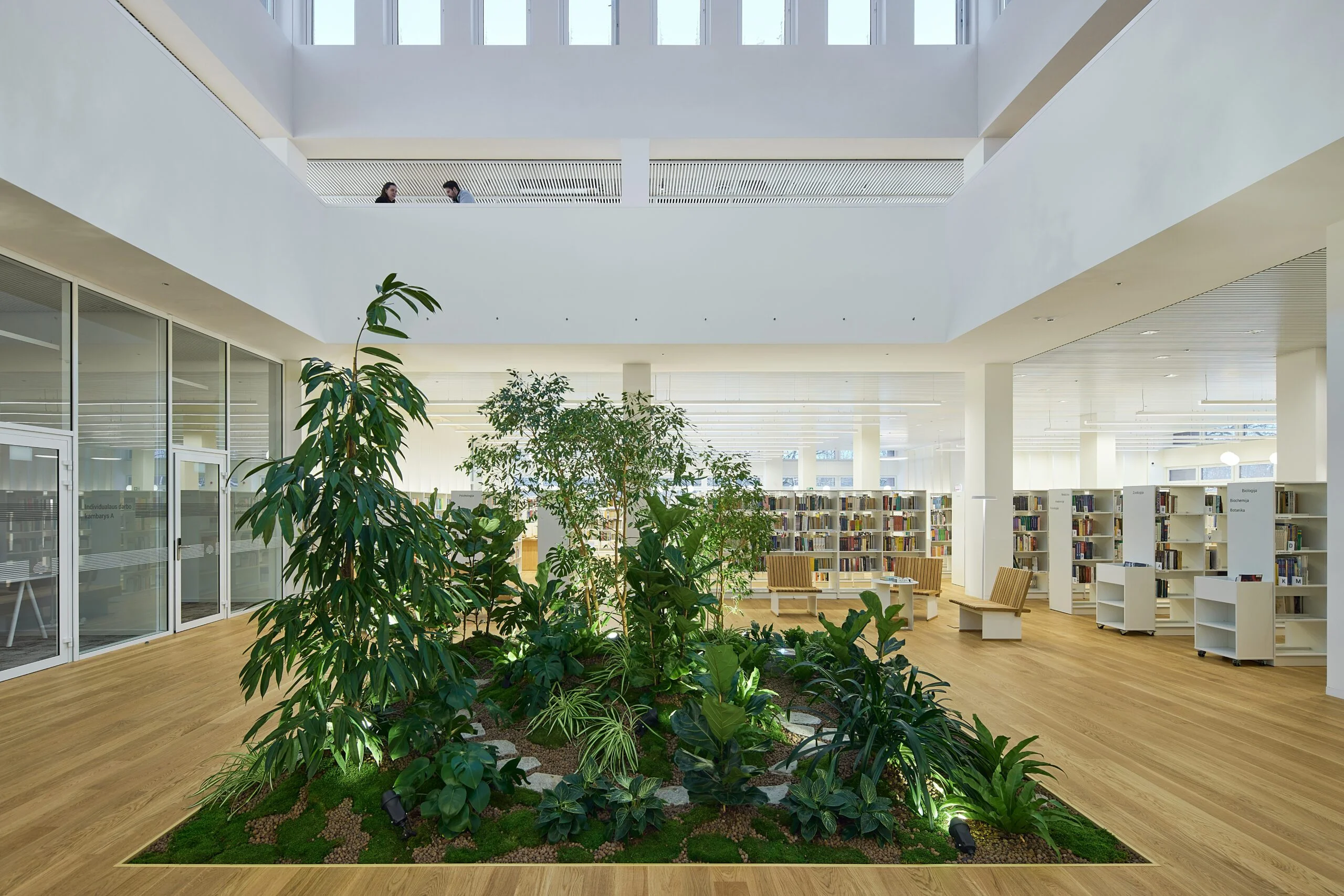 Kuriant naują bibliotekos viziją labai daug dirbo tiek kūrybinė komanda, tiek ir bibliotekos administracija. Kiekvieną lankytoją čia pasitinka akį traukiančios šviesios lentynos su knygoms, kurios kviečia skaitytojus ir prisėsti. Įrengtas įspūdingas nuo grindų besitęsiantis atriumas, kuriam panaudotas baltas koriano akmuo. Bibliotekos interjerui nustatyti aiški užduotis, kad sprendimai derėtų su išskirtine bibliotekos erdve – ąžuolynu. Tam interjere buvo pasirinktos spalvos iš gamtos, o pro langus į bibliotekos vidų „įsileistas“ ąžuolynas. Bibliotekos ašyje netgi buvo įsodintas nedidelis parkelis, įrengta stiklinė, per keturis aukštus besitęsianti virtina, kad skaitytojai bibliotekoje galėtų matyti ąžuolyną ir jaustųsi esantys gamtoje.