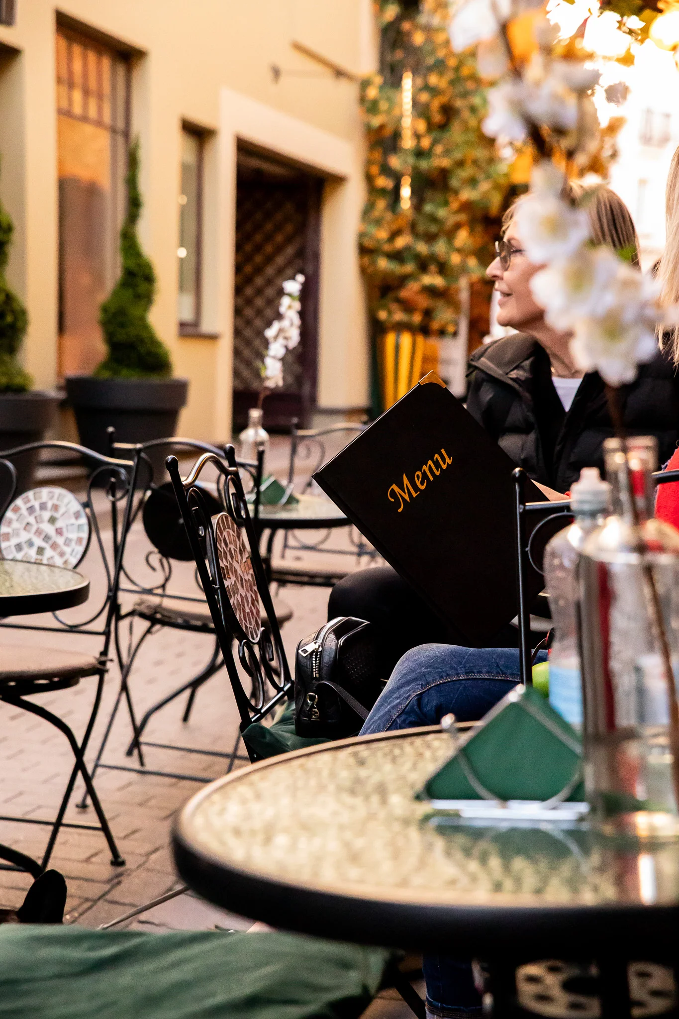 Lauko baldai buvo itin apgalvoti – akcentuotos mažos erdvės lankstumo galimybės. Čia buvo svarbus kompaktiškumas, kad nedideliame plote pavyktų komfortiškai įkurti kuo daugiau vietų svečiams bei turėti galimybę kėdes nesudėtingai sulankstyti ir sandėliuoti. Taip pat buvo siekta stilistiškai papildyti kuriamą atmosferą: švelnumo bei romantiškumo suteikiančios baldų apvalios formos bei puošybos elementai.