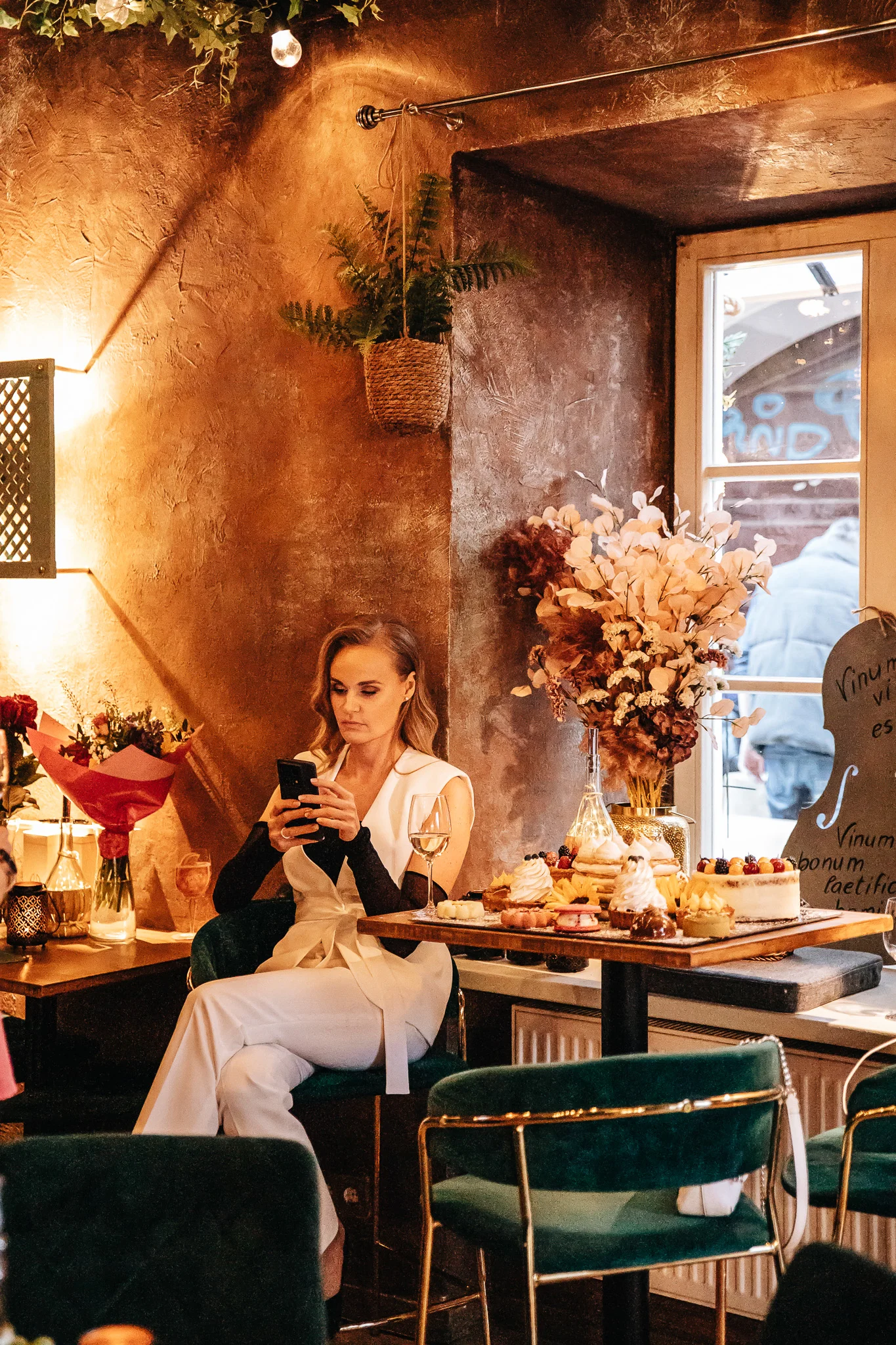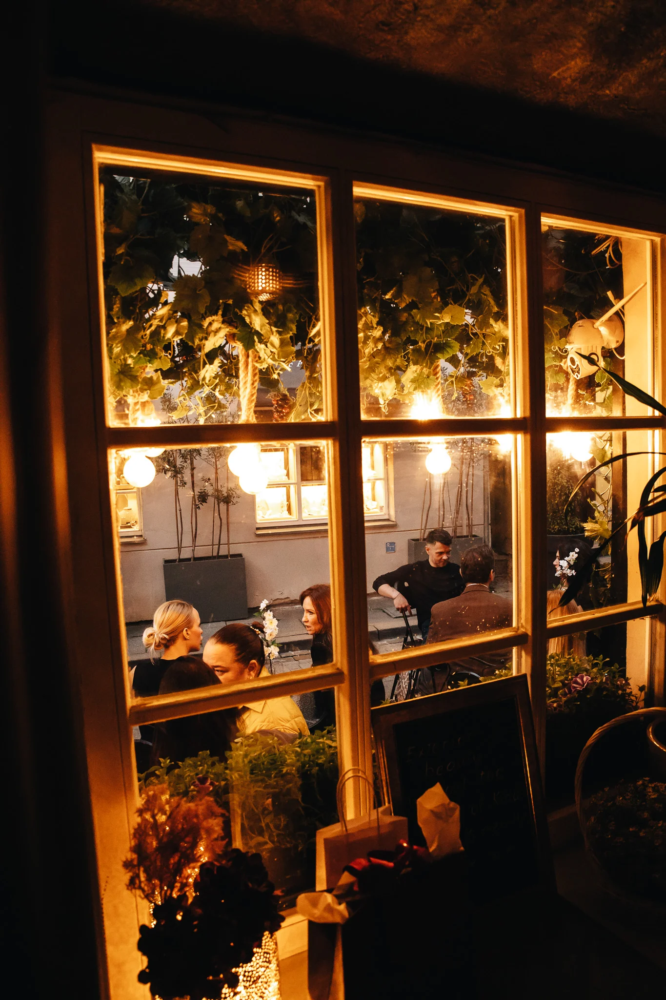 Erdvės dizaino realizacijai – vos siauras ruoželis vyninės pašonėje, todėl kiekviena detalė turi ypatingą svorį. Šiai vizijai įgyvendinti panaudoti augalų motyvai: vynuogių lapai, kekės ir alyvuogėmis aplipę medžiai, palanges puošia gyvi svyrantys augalai, o kiekvienas stalas dekoruotas baltu gėlės žiedu. Visa apgaubianti minėtų augalų kombinacija emociškai nukelia į kitą, ypatingą dvasią turinčią erdvę. Kiekviena detalė yra svarbi kuriant bendrą nuotaiką ir išlaiko dizaino vientisumą.