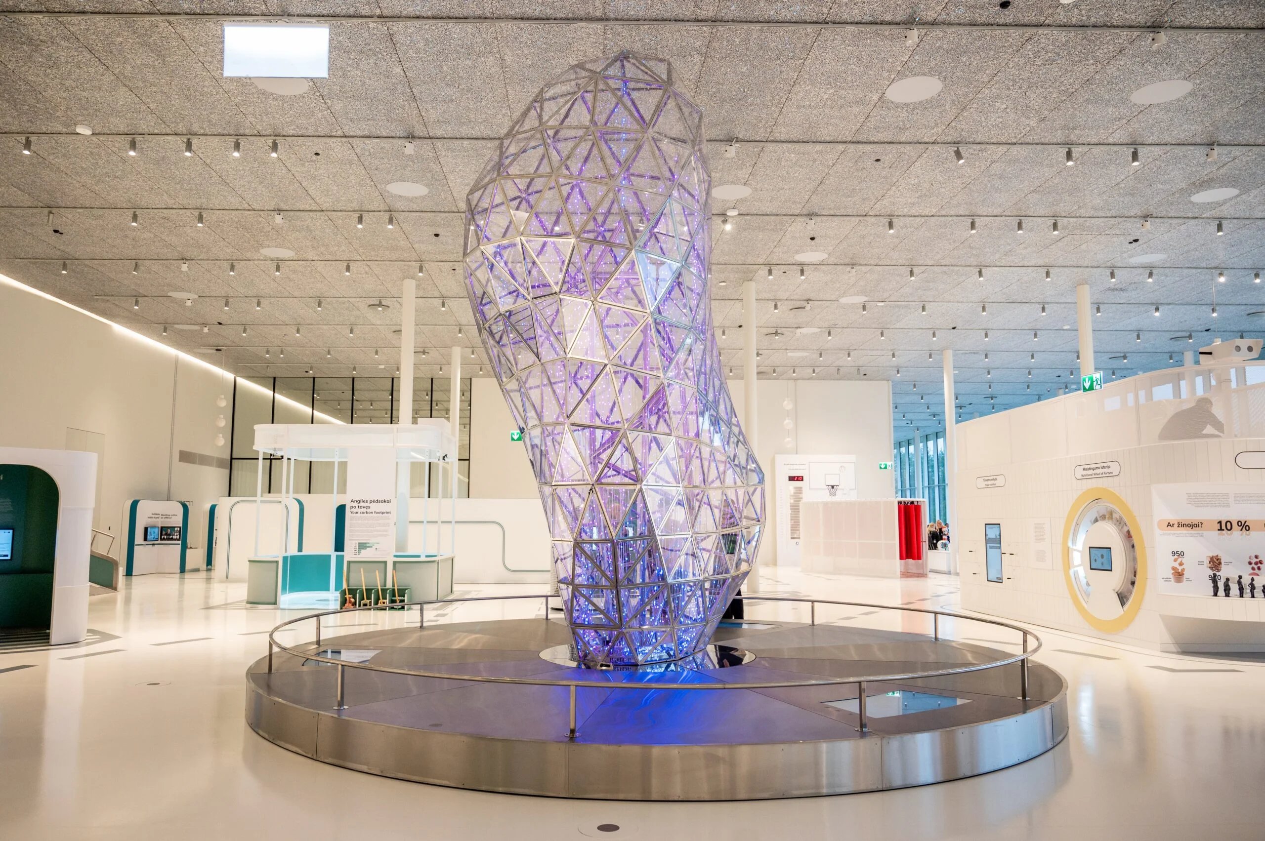 „Mokslo sala“ inovacijų muziejuje parinkti „Interjero linija“ akustinių dieninių audinių sprendimai.