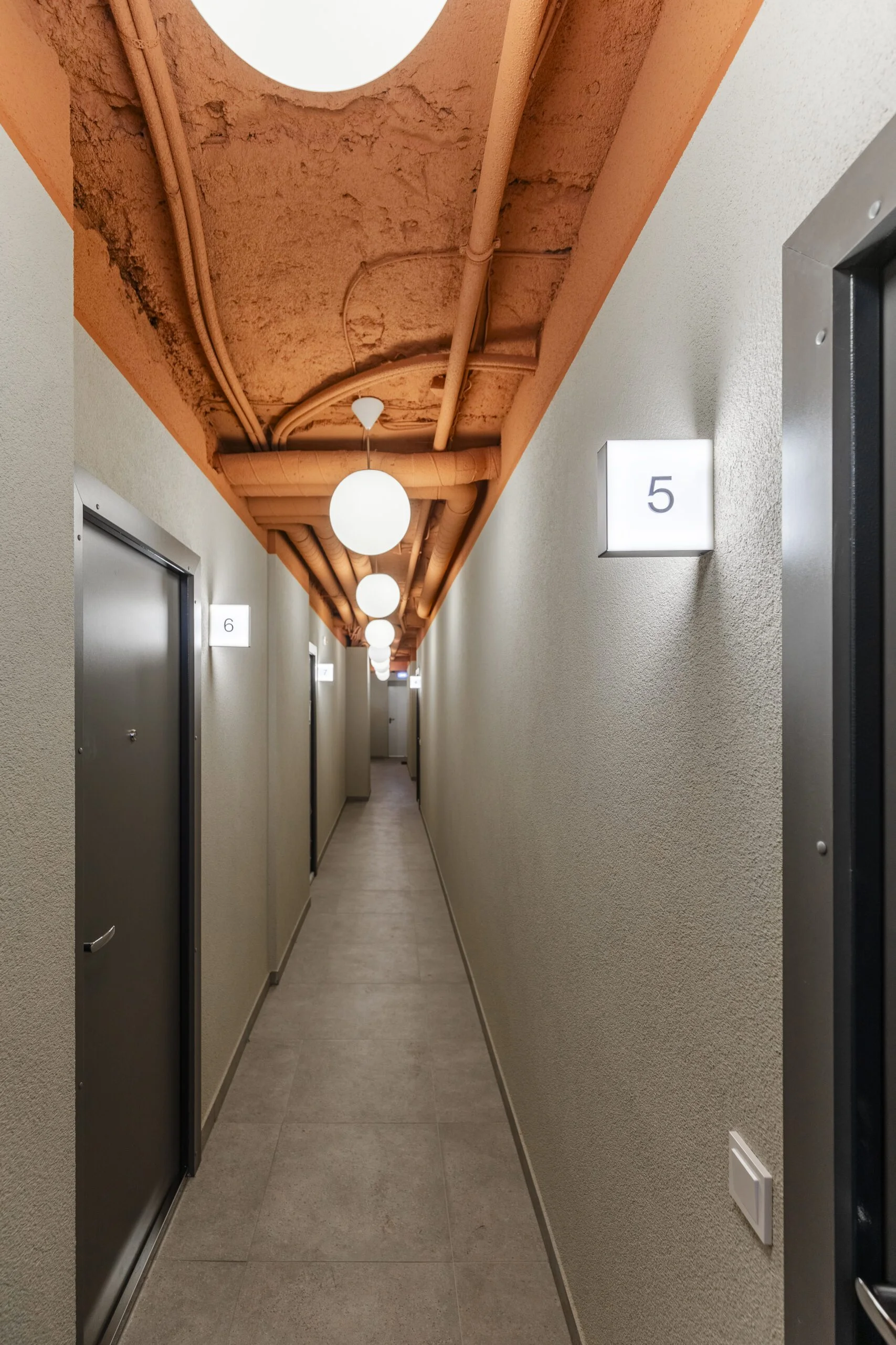 Projekto renovacijos procese buvo siekiama išsaugoti kuo daugiau buvusio pastato autentikos, taip išlaikant jo identitetą. Išsaugoti arkiniai langai, laiptai, turėklai, kurie iki šiol alsuoja čia buvusio viešbučio dvasia. Viduje buvo svarbu išsaugoti autentiškas laiptinės dalis – dekoratyvias medines duris ir laiptus nuo koridorių atskiriančias pertvaras, marmuro dekorą ir žalvarinius turėklus. Šiuolaikiškas įvaizdis sukurtas išklojus laiptus juodomis ir baltomis plytelėmis, o sienas nudažius raudonai. Bendrose erdvėse pirmajame aukšte atsirado ryškūs, plytelėmis dekoruoti baldai, visose bendrose erdvėse savo vietą, vienu ar kitu santykiu, taip pat atsirado ryškios spalvos. Vienos iš erdvių sienos dekoruojamos drąsaus štricho – juodos linijos – menininko piešiniais. Su dizainerių pagalba perkurtas holas ir bendros erdvės. Jos pritaikytos susitikimams ir bendradarbystei, ir yra atviros kūrybinėms partnerystėms.