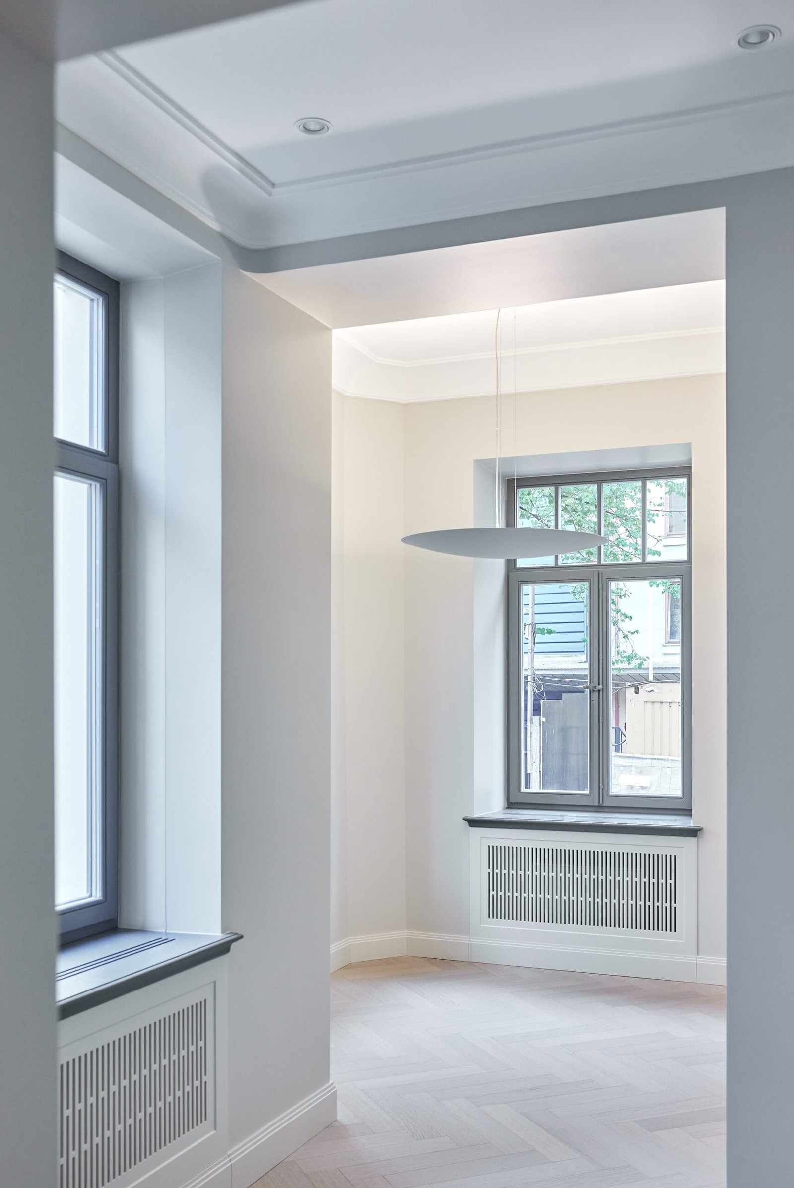 Paslaptingos XX a. pradžios vilos atgimimas – įspūdingas, elegantiškas, pilnas šviesos žaismo ir romantikos – tai dar vienas interjero architektės Jurgitos Paškevičiūtės projektas. Tvarkomas kultūros paveldo objektas – pastatas Naujamiestyje, Vilniuje. Interjero projektavimo užduotis buvo sukurti aplinką, išaugant autentiškas detales: freskos, koklinės krosnys, sienų bei lubų dekoras, restauruoti laiptus, turėklus, duris ir langus, pritaikyti erdves naujam gyvenimui. Interjero stilistiką padiktavo pats pastato fasadas ir jo istorija, interjerą papildė išskirtiniai šviestuvai.