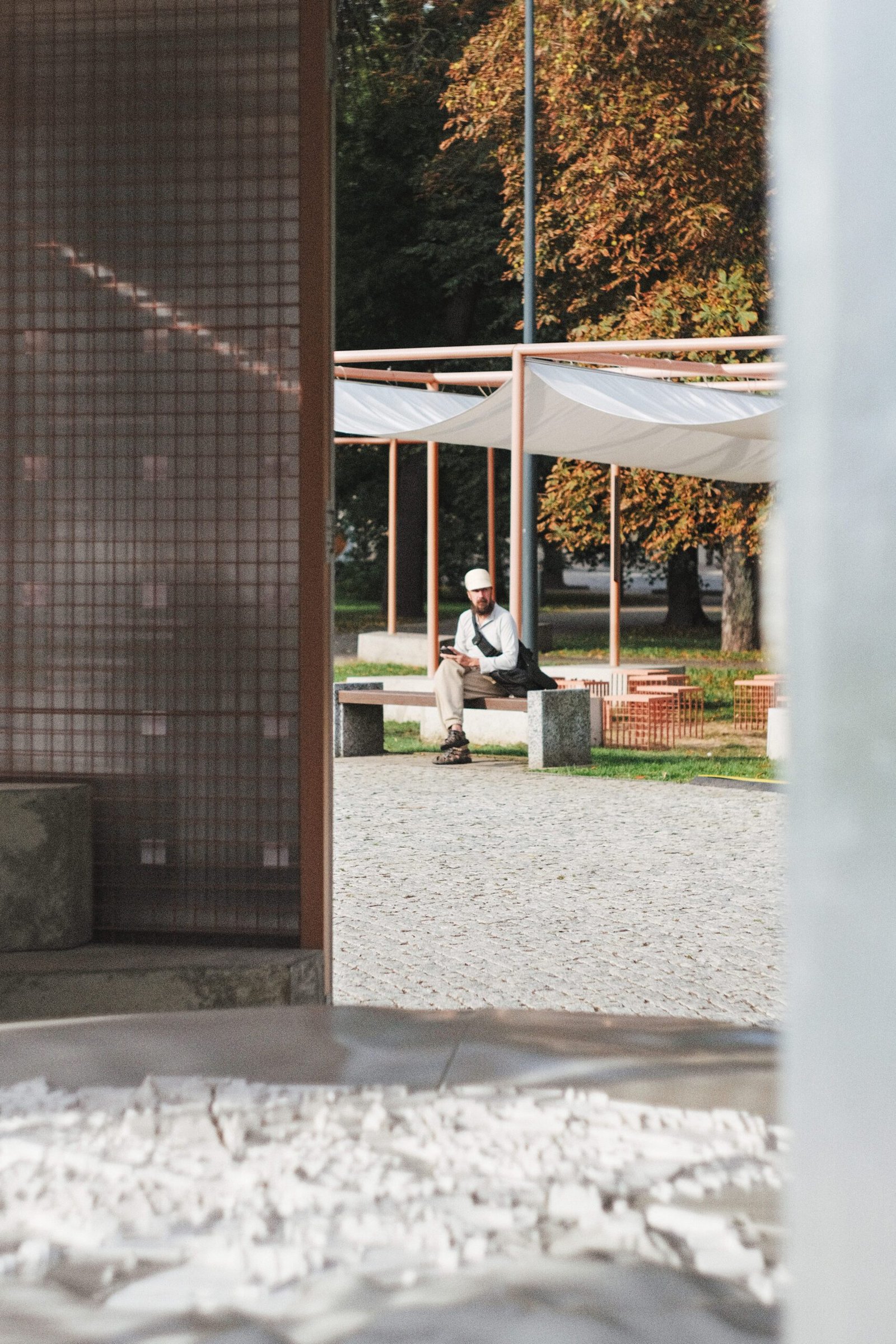 Paviljono išsidėstymas leido ne vien įsikurti unikalioje lokacijoje, tačiau ir ją praturtinti naujais, ir dinamiškais ekspoziciniais bei architektūriniais elementais, taip sukuriant unikalų informacinį, architektūrinį bei socialinį tinklą – atlasą. Viename iš atlaso centrinių taškų, pėsčiųjų tako ašyje įkurdinta dominantė – amfiteatras, leidžiantis saugoti pagrindinį eksponatą – XIX amžiaus Vilniaus miesto maketą.
