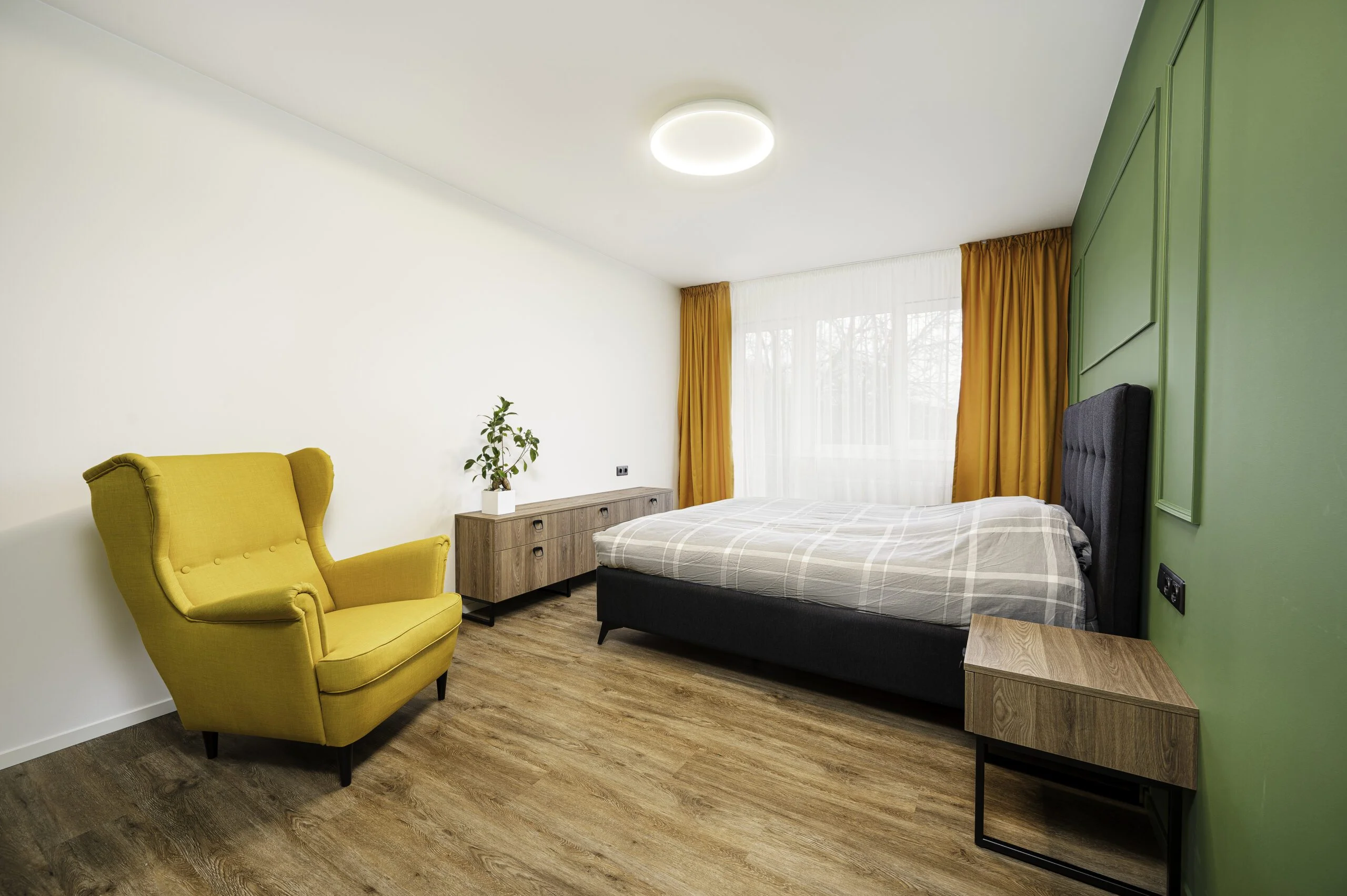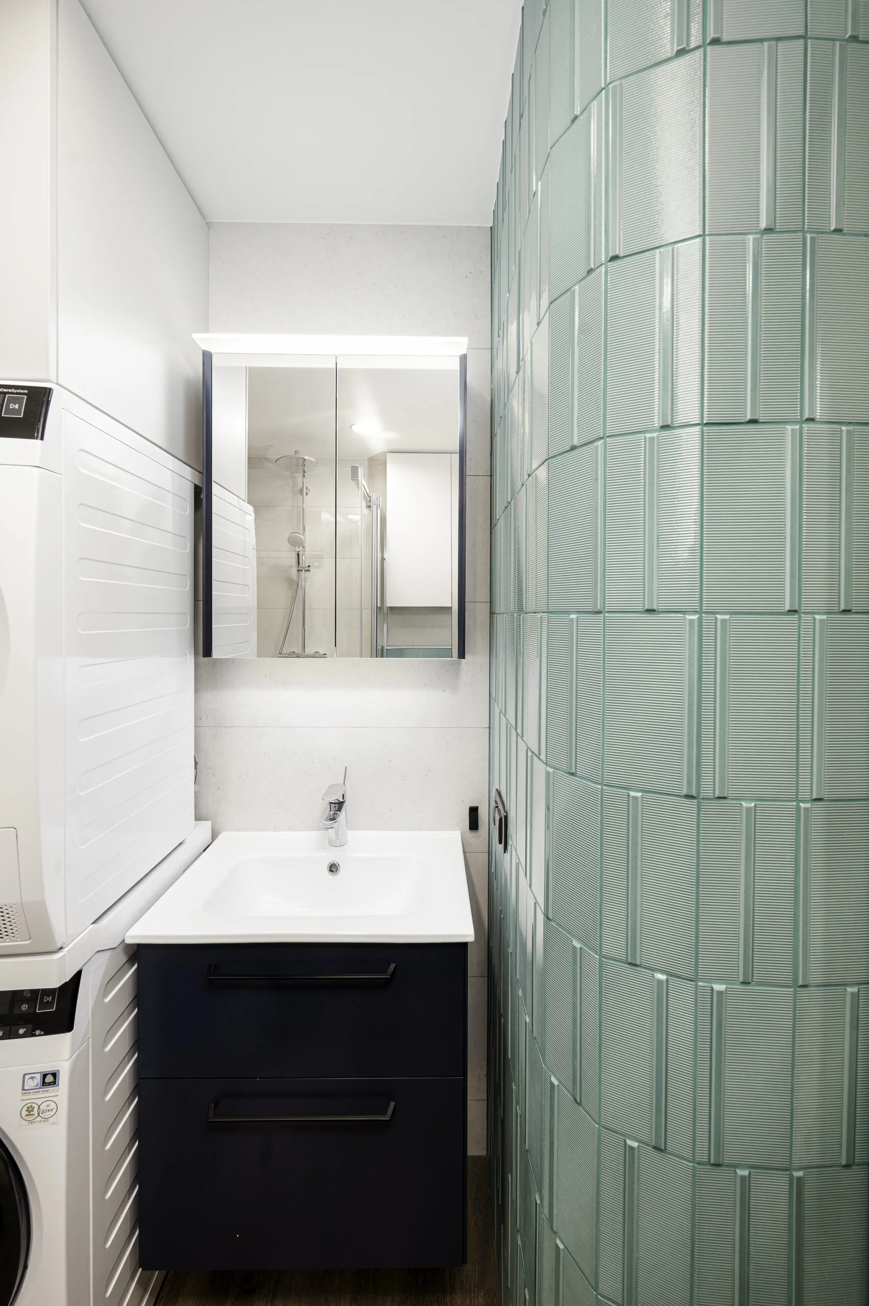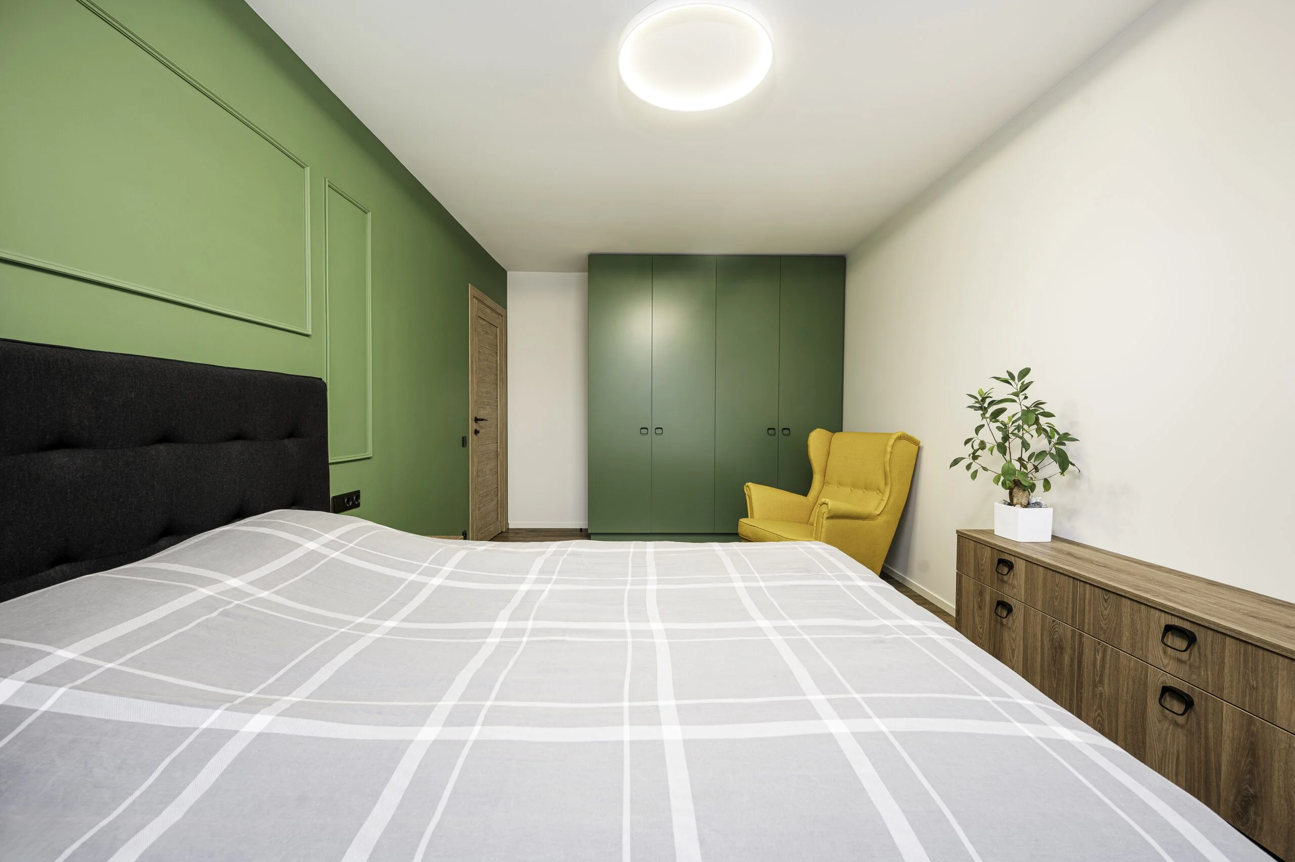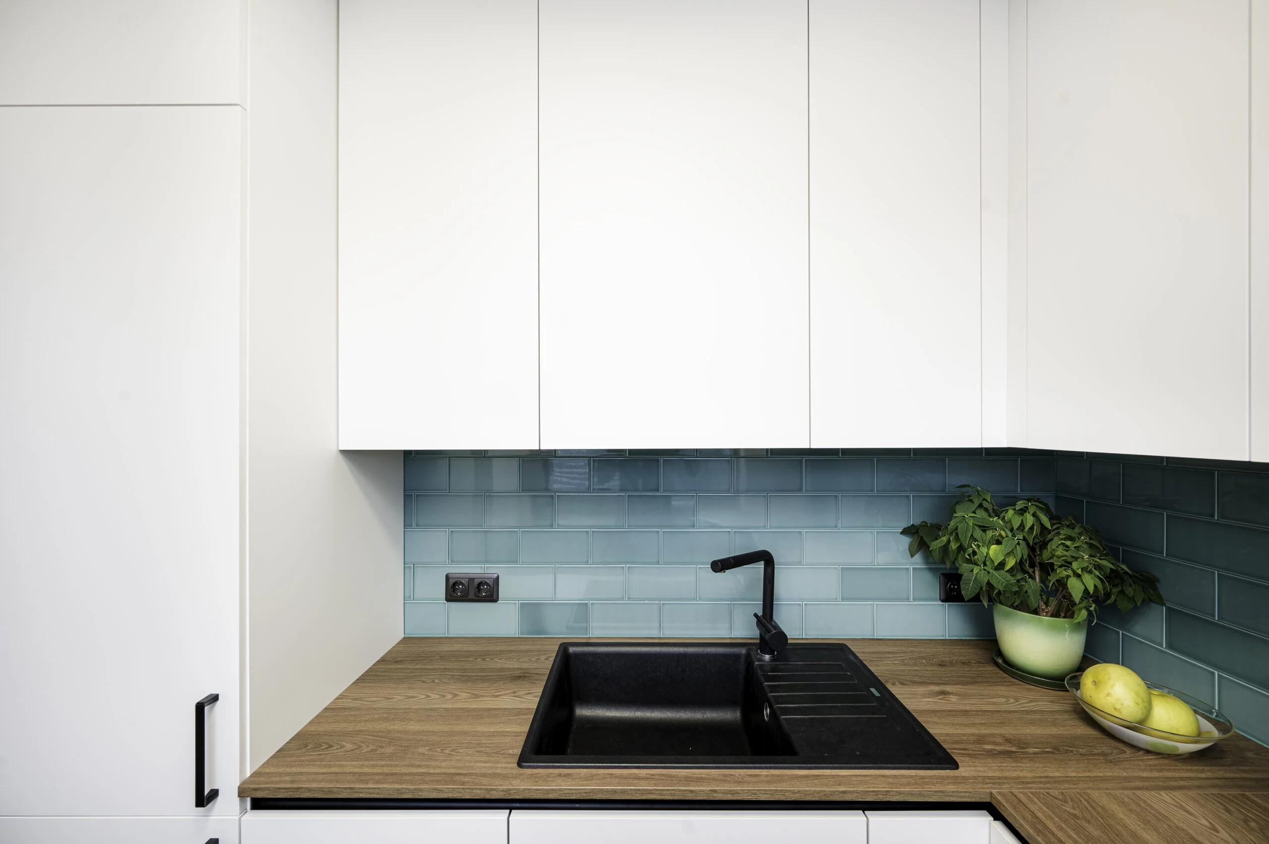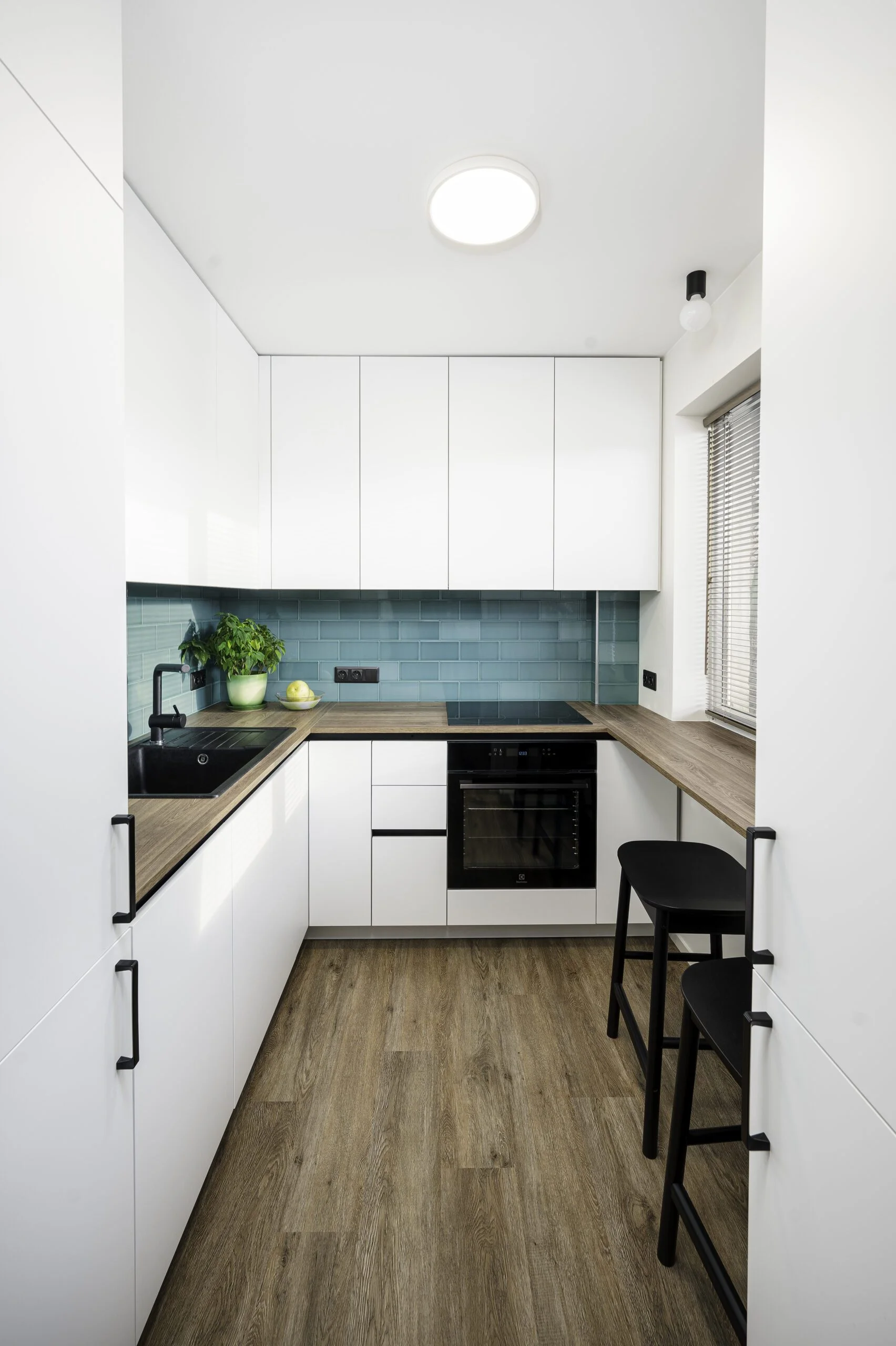 Saulėtas senos statybos 45 m2 butas „Saulė“. Pagrindinė užsakovų užduotis buvo padaryti šviesų, jaukų, šiltą butą bei pertvarkyti jo suplanavimą – padidinti san. mazgą bei virtuvę. Natūralumas interjere tapo vienas iš pagrindinių prioritetų, todėl bute „Saulė“ vyrauja šilto medžio, geltoni ir žali atspalviai. Grindų apdaila, ta pačia spalva atkartojamas duryse bei pereina į briuselių dekoratyvą ant sienų.