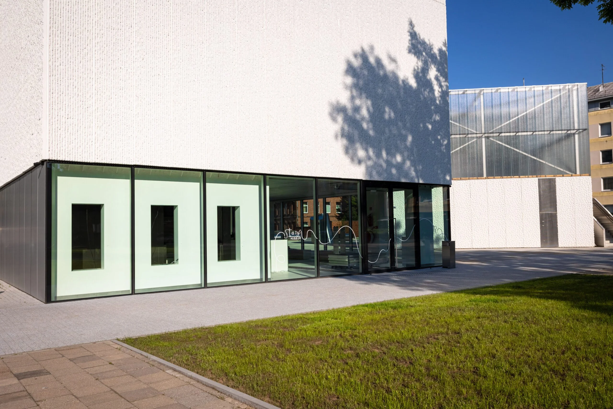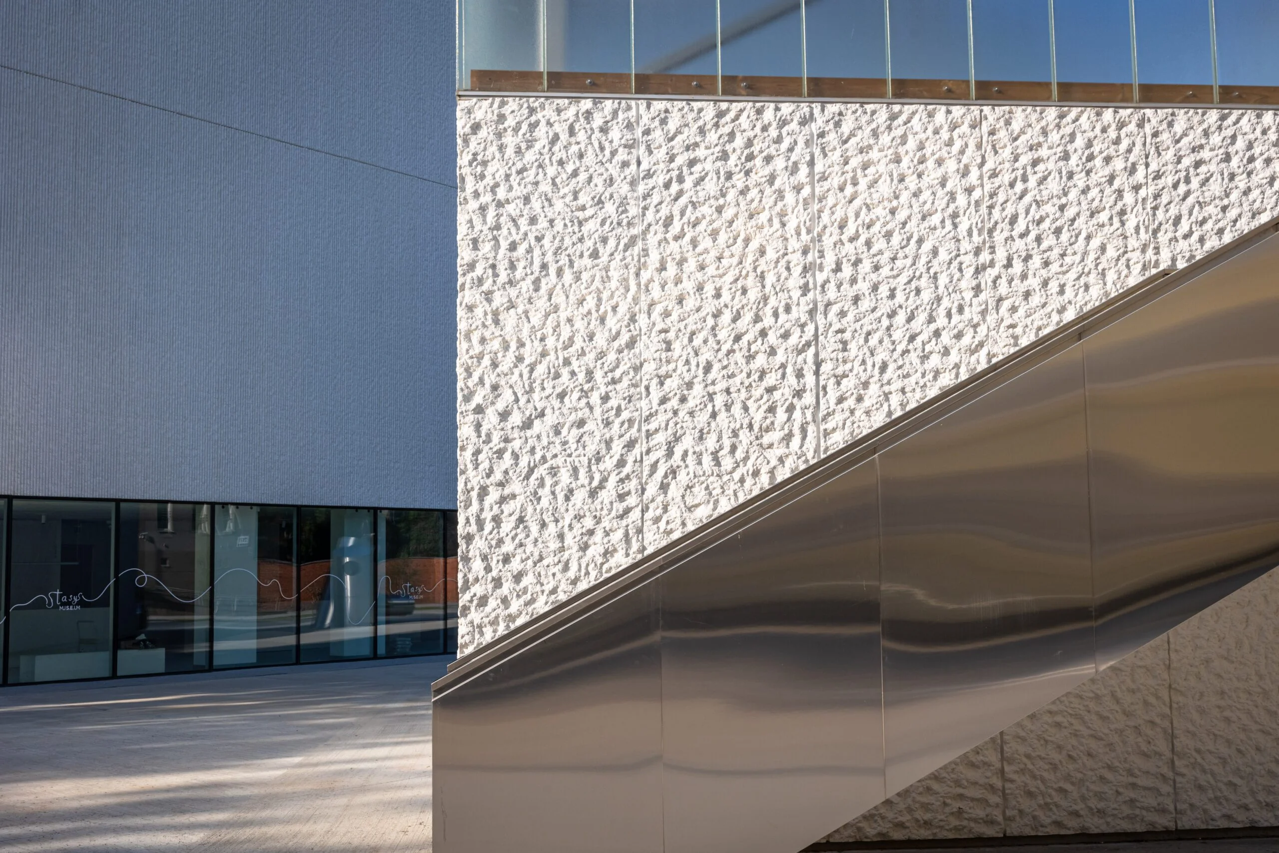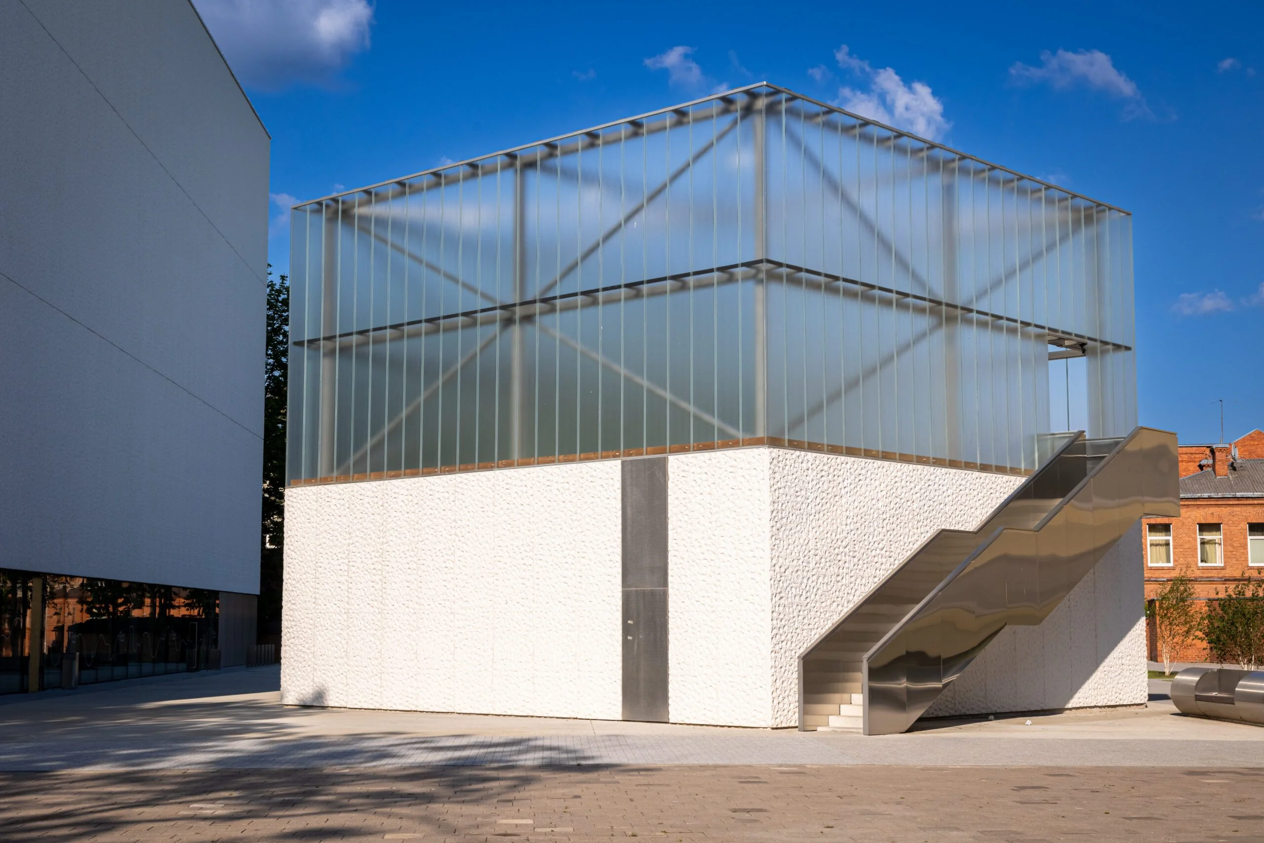 Žodžių „menų centras“ junginys kviečia įsivaizduoti erdvę, kurioje kūriniams teikiamas didesnis vaidmuo – ne vien stebėti pro stiklą, bet ir užmegzti interaktyvų santykį su objektais, dalyvauti edukacijose, įsitraukti ir reflektuoti. „IMPLMNT architects“ komandos kurtas pastatas šiuolaikiškas, švarios, racionalios, minimalistinės estetikos. Jo išraiška nėra labai kuklių proporcijų, bet estetiškai pastatas yra nuosaikus ir ramus. Tą nulėmė supanti aplinka, kurioje vyrauja pakankamai reguliarus, stačiakampių formų perimetrinis arba taškinis užstatymas