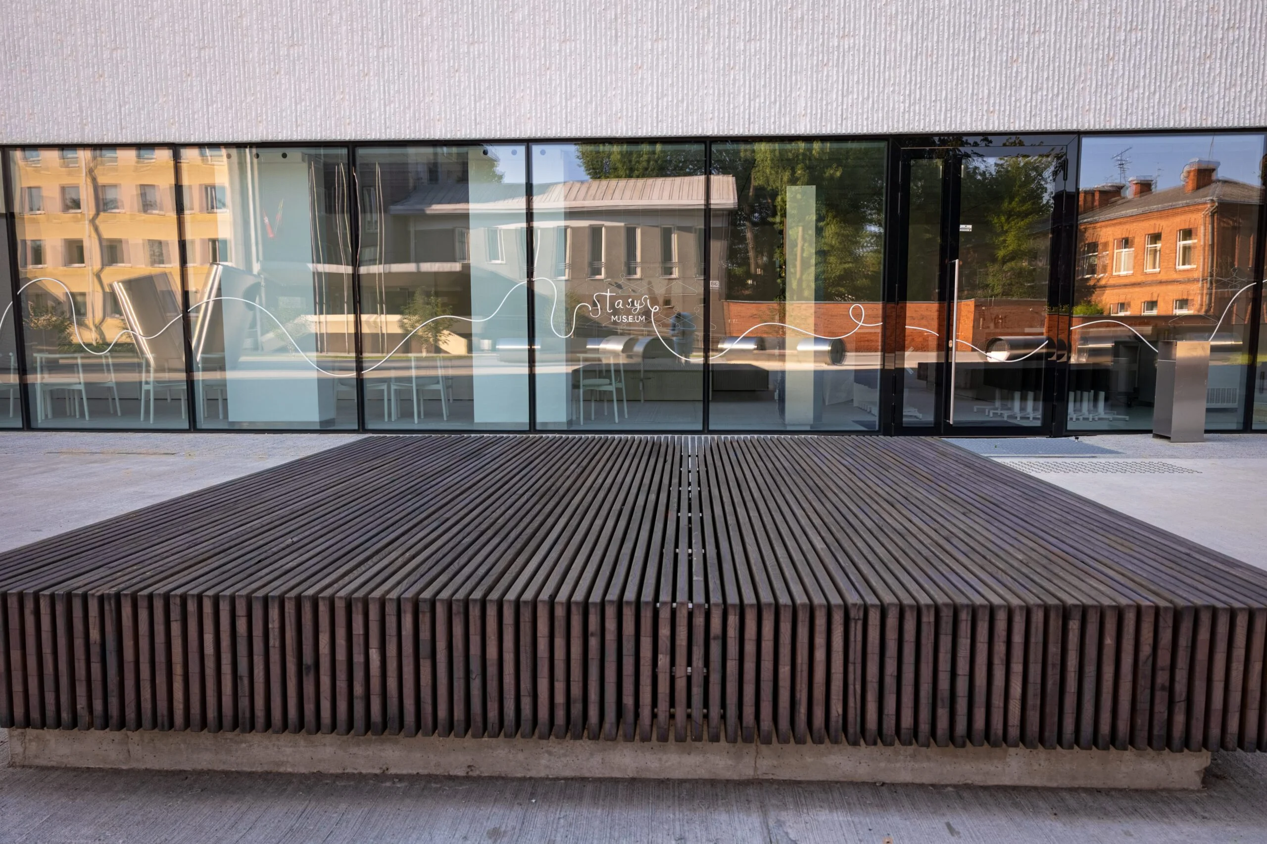 Atsiradus naujam pastatui, pasikeitė ir Panevėžio Respublikos aikštės charakteris. Pakitusi aikštės kompozicija, leidžianti pastatui ir jo prieigoms įsijungti į miesto struktūrą, yra viena iš kertinių projekto idėjų. Naujas pastato tūris atlaisvina erdvę pietinėje aikštės dalyje ir taip jungia Respublikos ir Kranto gatves. Atsirado ryški jungtis tarp šių gatvių, o viešosios erdvės centre iškilo kino „kubas“ su lauko ekspozicija virš jo. Aikštėje prie muziejaus kartu kuriamas ir judrumas, yra mažosios architektūros elementų, ilgainiui gali atsirasti ir tūrinių meno objektų.