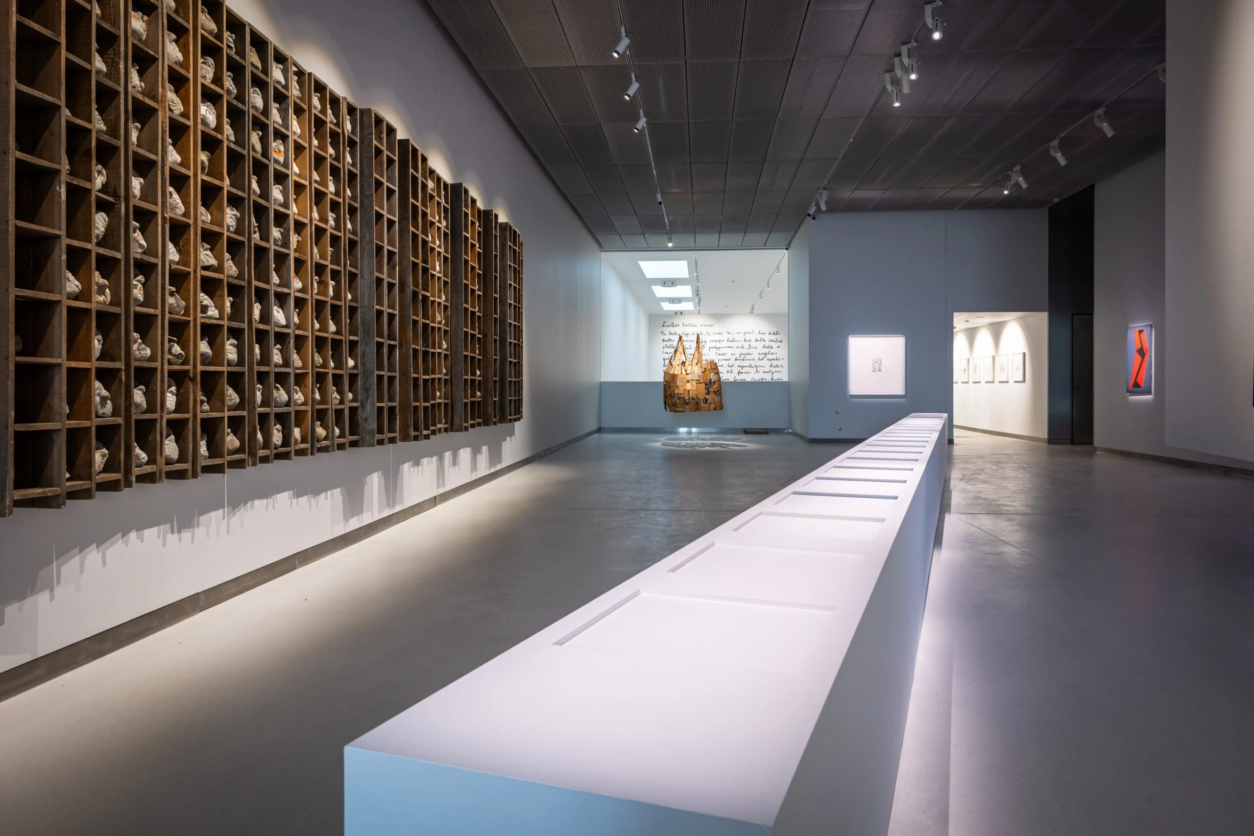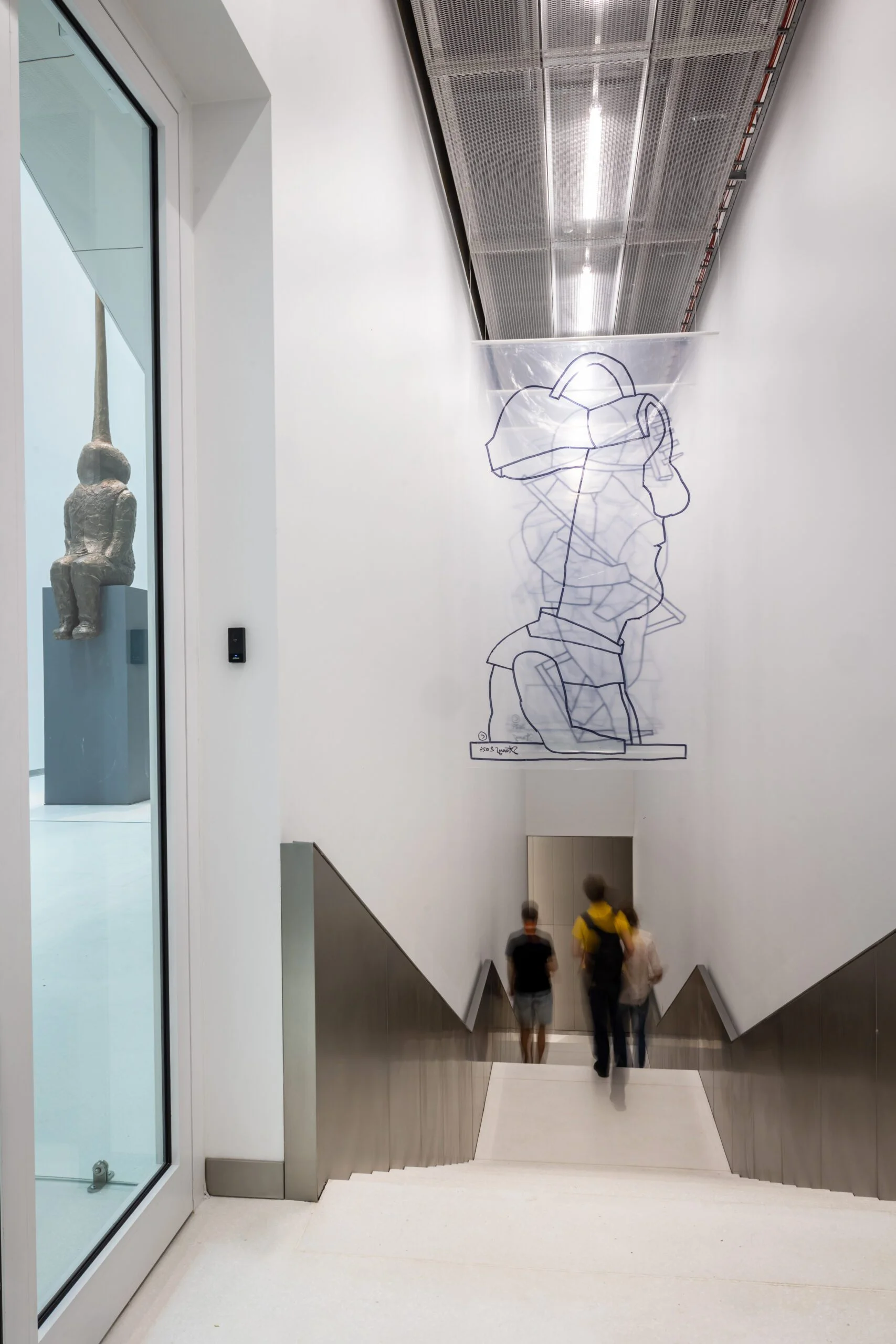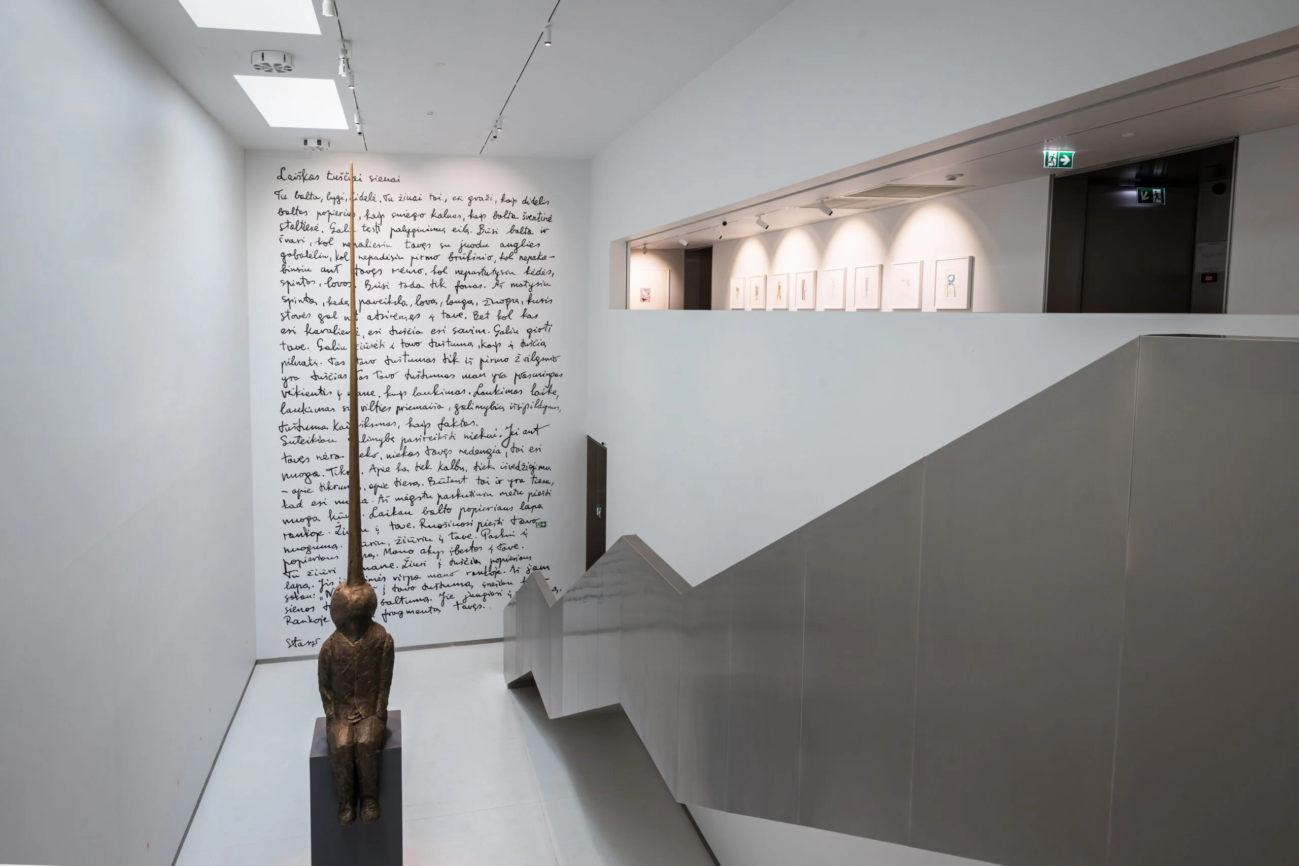 Lankytojui įėjus į muziejų pasitinka Santorinio salą primenantys laiptai. Jie – aliuzija į menininko kelionę, įkvėpusią tiek jo asmeninę kūrybą, tiek laiško architektams eilutes. Universalų galerinį baltumą interjere papildo nerūdijančio plieno elementai, kuriais pabrėžiamos visos nišos ir visi laiptai – lakoniška estetika užleidžia svarbiausią vietą kūriniams. Jie bus eksponuojami S. Eidrigevičiaus kūrybos parodoje: didelis Panevėžiui dovanotų darbų kiekis leis ekspozicijoms keistis, išlikti įdomiomis. Vienas aukštas skirtas kintamosioms parodoms, kuriose būtų eksponuojami ir kitų menininkų darbai. Edukacinės veiklos užsitarnavo būtino šiuolaikinio muziejaus programos elemento reputaciją – joms čia irgi skirtos erdvės. Taip pat yra ir staigmenų – rūsy, prie drabužinės, įrengtos atviros darbų saugyklos: pro vitrinas galima stebėti kolekcijos archyvavimo vietą, taip pat bus įmanoma pakilti ant pastato stogo, nuo kurio atsiveria Panevėžio panorama.