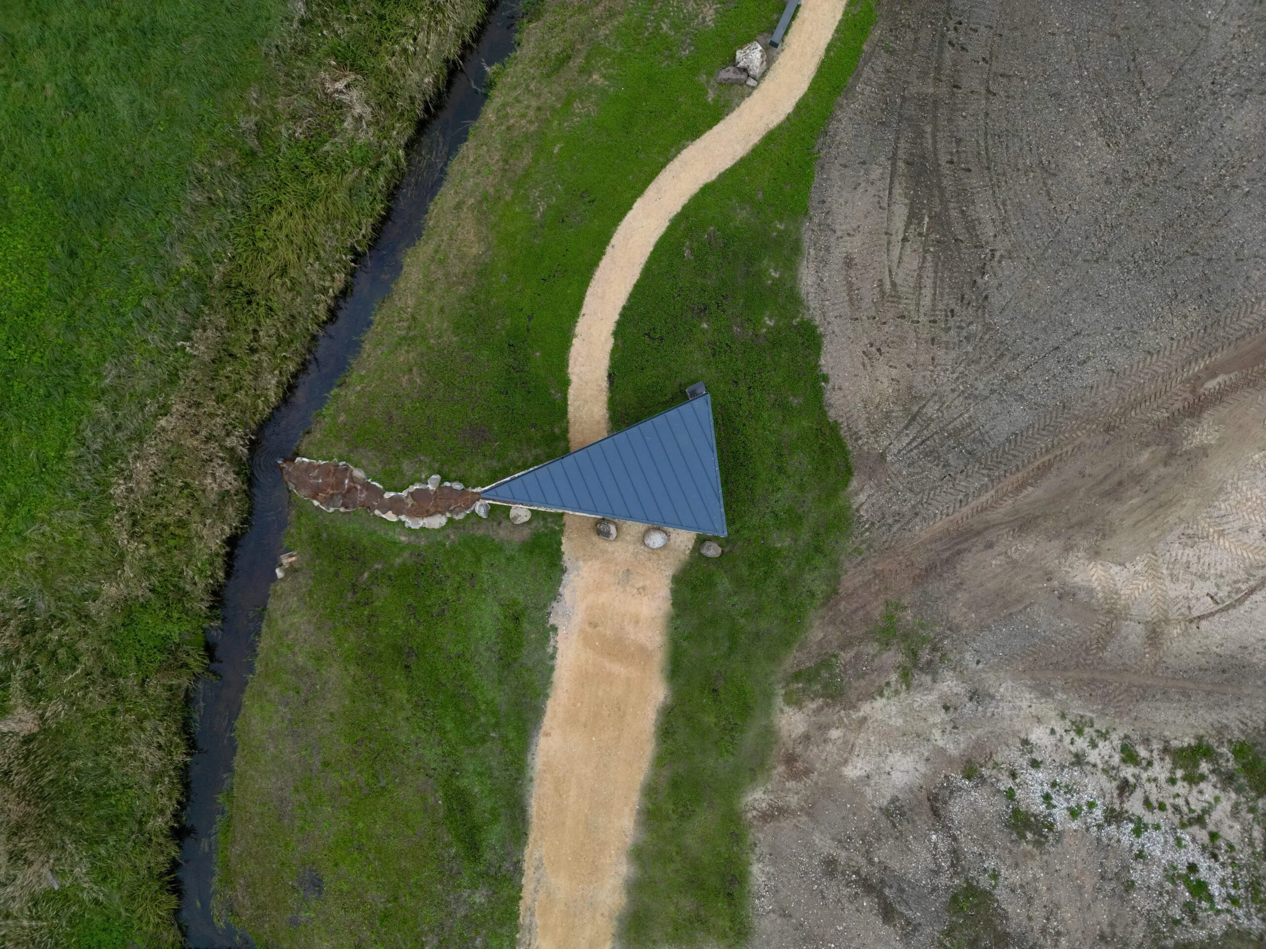 Koncepcijos ašimi tapo Suvainiškio architektūrinis simbolis – Šv. apaštalo Jokūbo bažnyčia, kurios trikampis stogo siluetas matomas atvykstant iš Latvijos pusės. Ši forma tapo įkvėpimu šaltinio architektūrai: naujasis tūris suprojektuotas kaip veidrodinis bažnyčios stogo atspindys. Taip sukuriamas vizualinis dialogas tarp dviejų objektų – sakralinio ir natūralaus, tarp žmogaus sukurtos ir gamtinės struktūros.