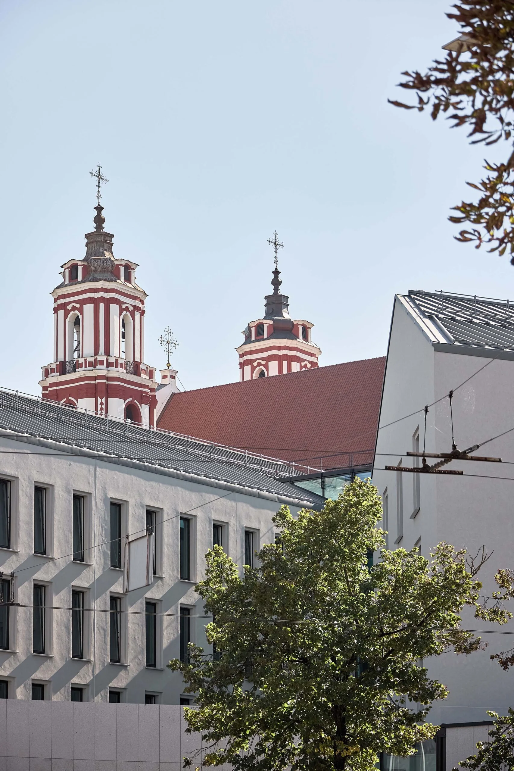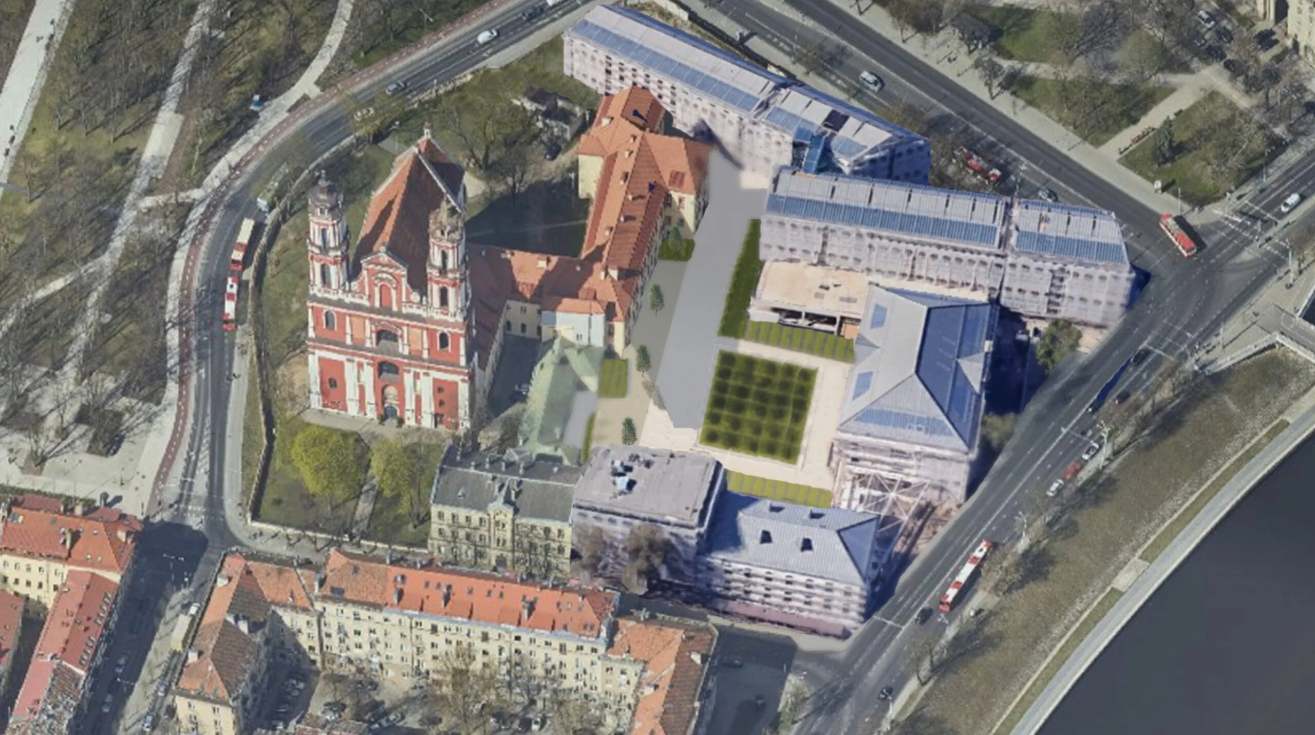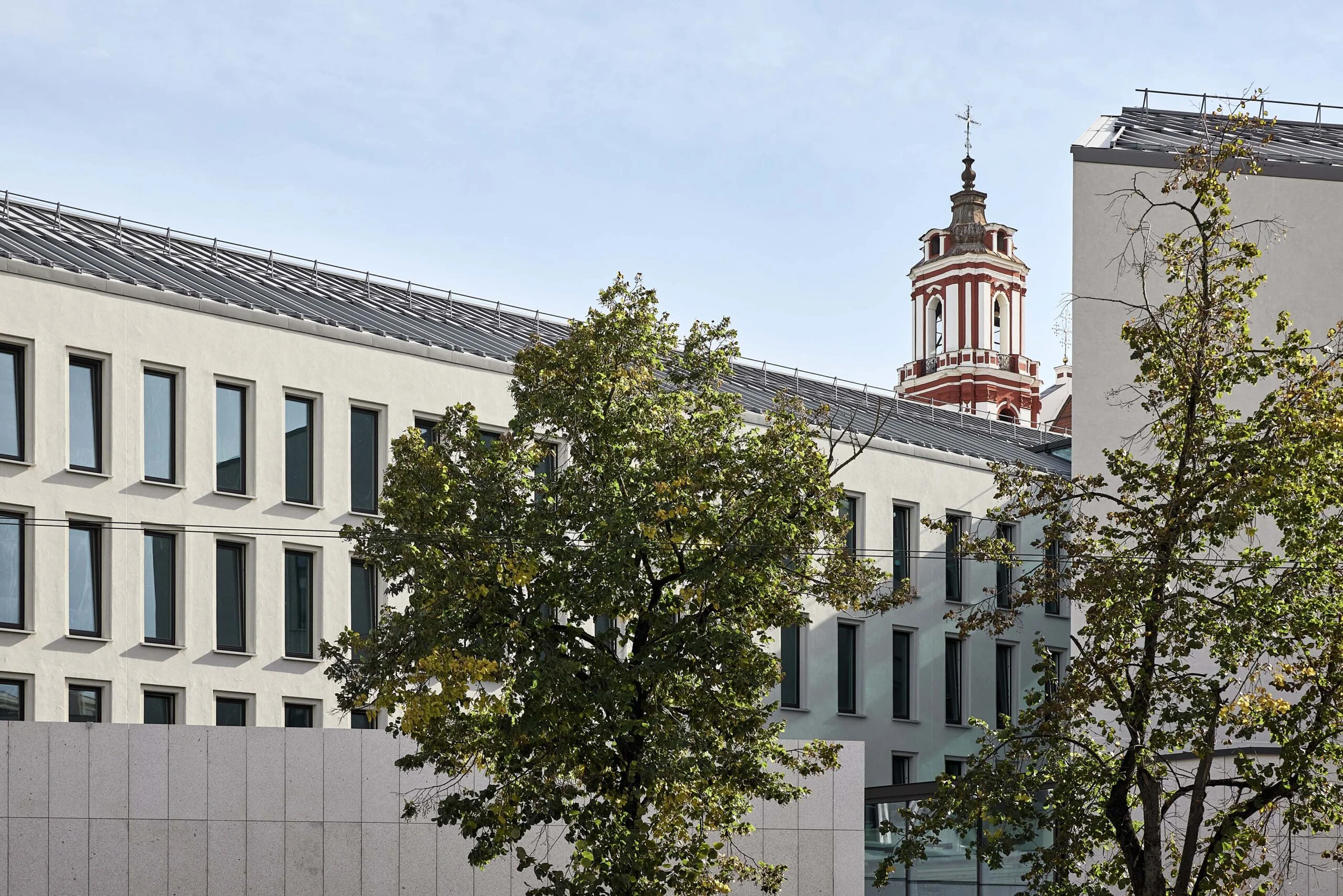 Siekdami kurti vieningą kvartalo urbanistiką, architektai pasinaudojo Lukiškių aikštės pusėje esančios tvoros altitude ir pratęsė ją aplink visą kvartalą. Jis susijungia per fasadus, tvoras, langus ir kitus elementus, taip juntama, kad ši teritorija yra vienas „kvartalas“. Kvartalas apsuptas aktyviais pirmais aukštais, nauji intarpai sužeminti, atveriant perspektyvas į bažnyčios bokštus, miestiečiams atvertas kiemas ir sodas. Naujuose Vaižganto g. pusės tūriuose suprojektuoti dideli 5 metrų aukščio langai, mažoji architektūra, fasaduose integruoti suoliukai, žaluma – kuriamas vizualinis objekto ir miesto ryšys. Sekant istorinio konteksto melodiją, A. Goštauto g. prieigos atvertos į miesto pusę, grąžinant vizualinį ryšį su Neries upe.