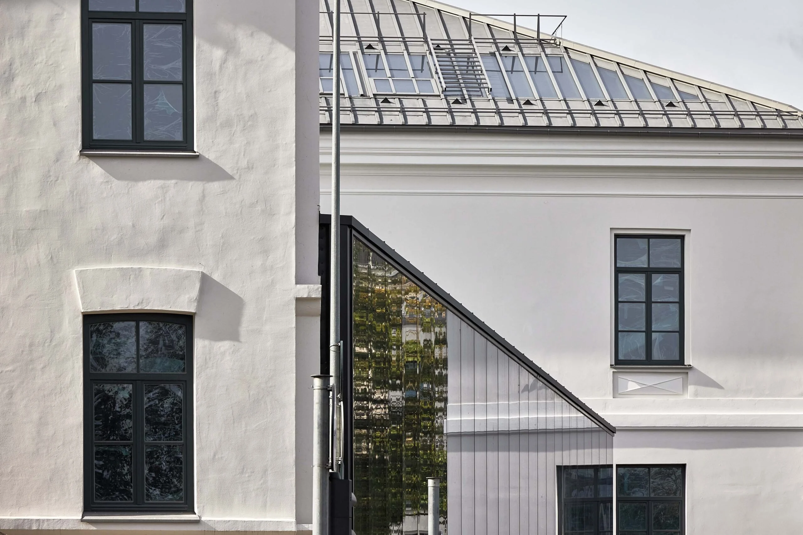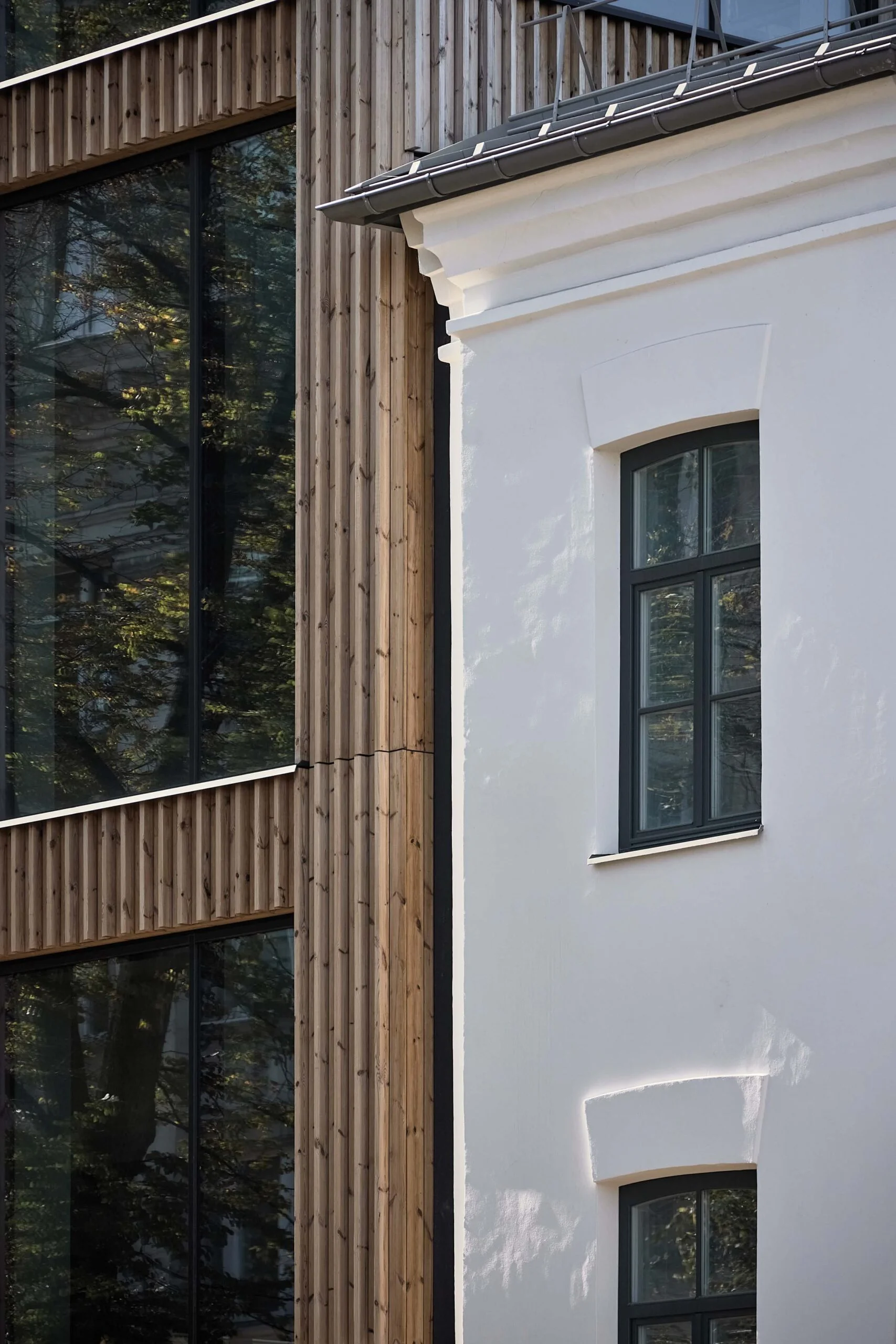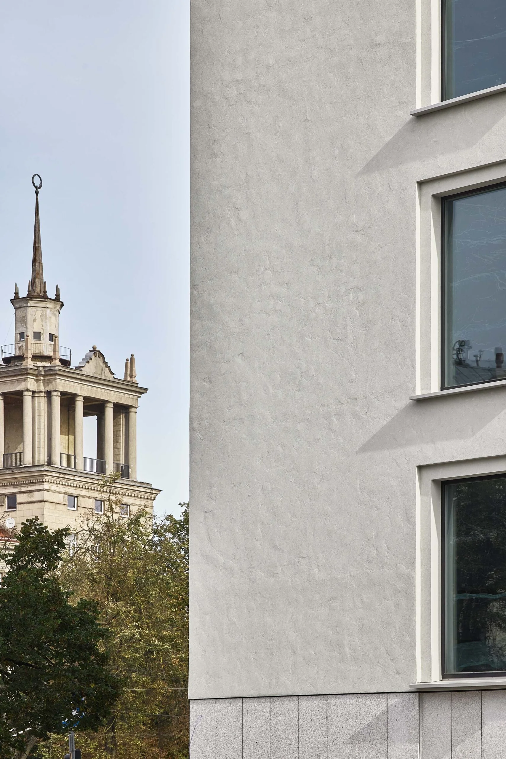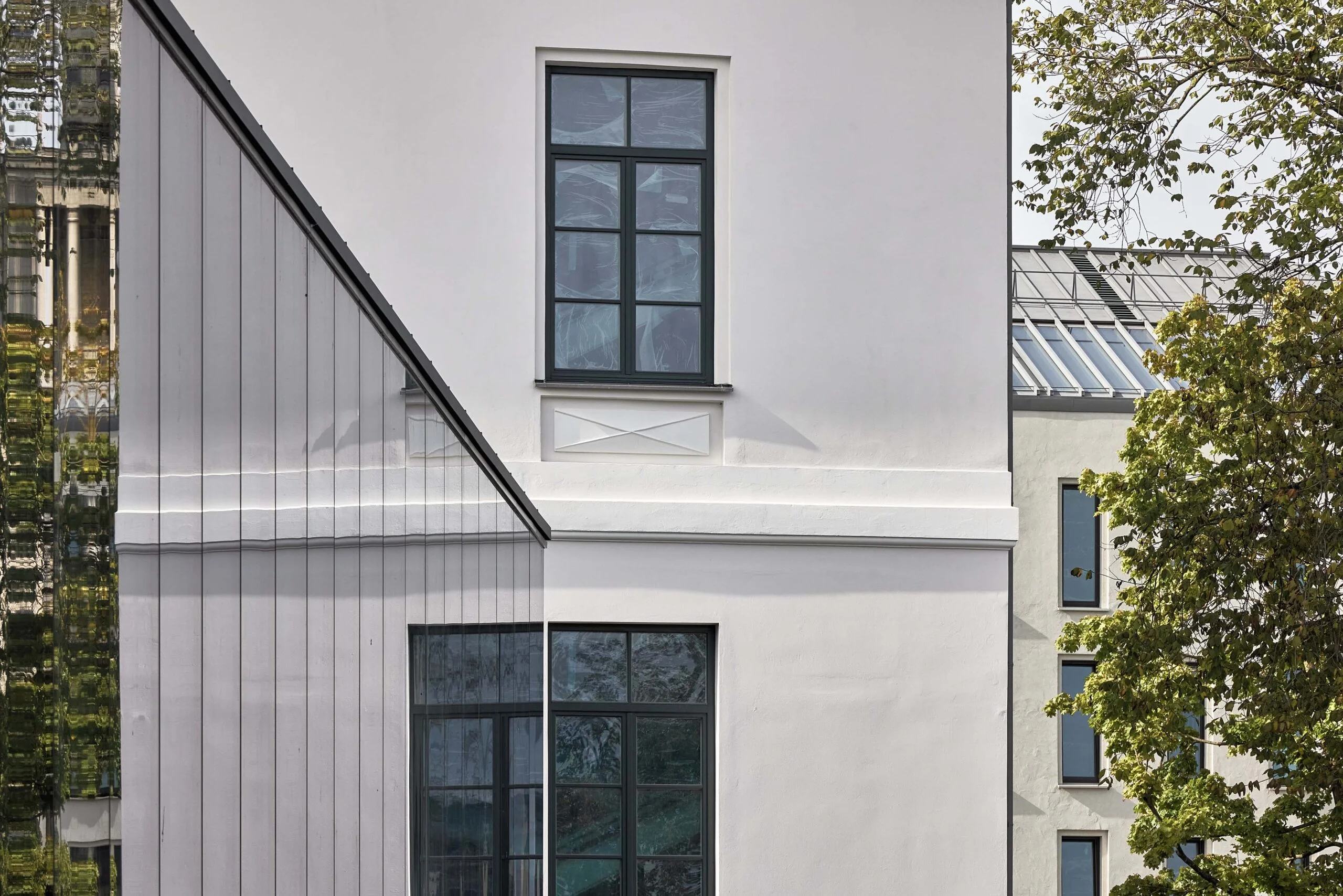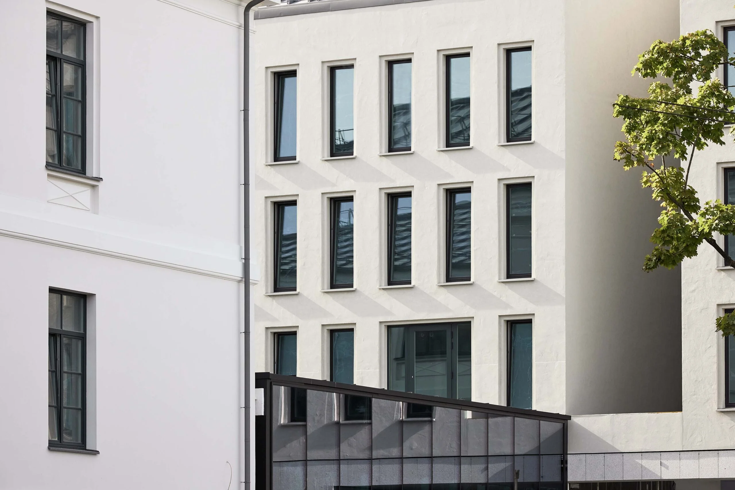 Architektai siekė atkurti istorinį žavesį, o kartu ir grąžinti miestui vieningai skambantį kvartalą. Naujieji viešbučio pastatai – suskaidyti į du pastatus, papildomai smulkinti ir langų ritmu bei stiklinėmis „pauzėmis“ – nukeipiant dėmesį į bokštus. Įkvėpti barokinės erdvinės hierarchijos, žmogus nuo intensyvios gatvės kviečiamas į įgilintą kiemelį, ir tik tada įėiti pro pagrindinį įėjimą.