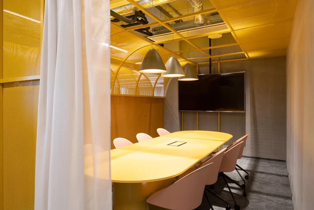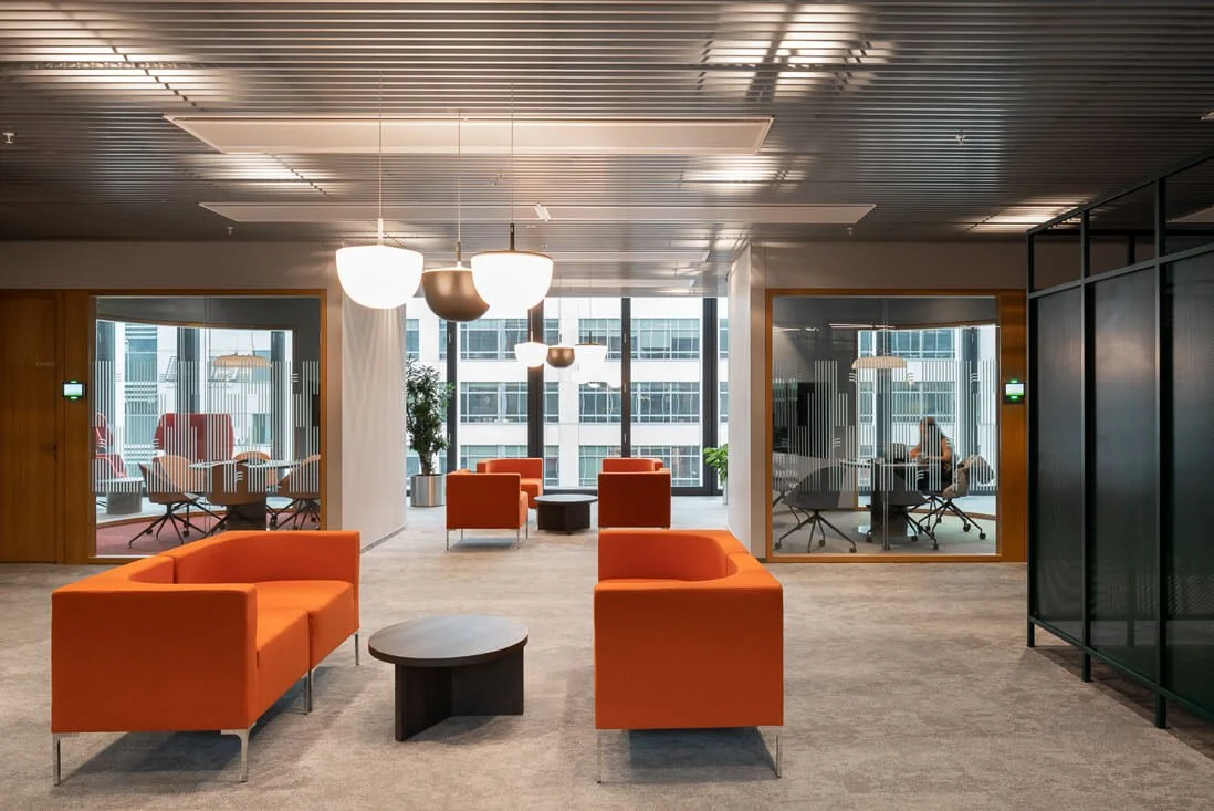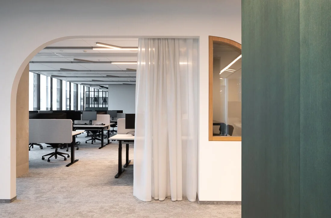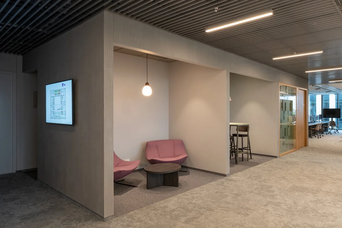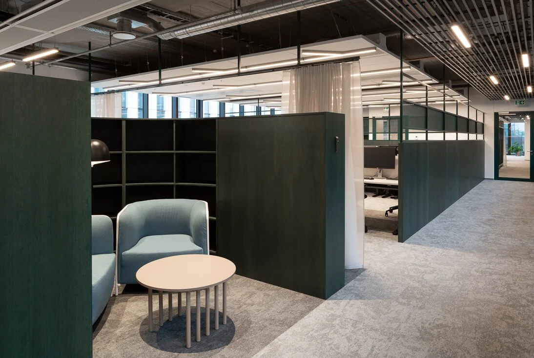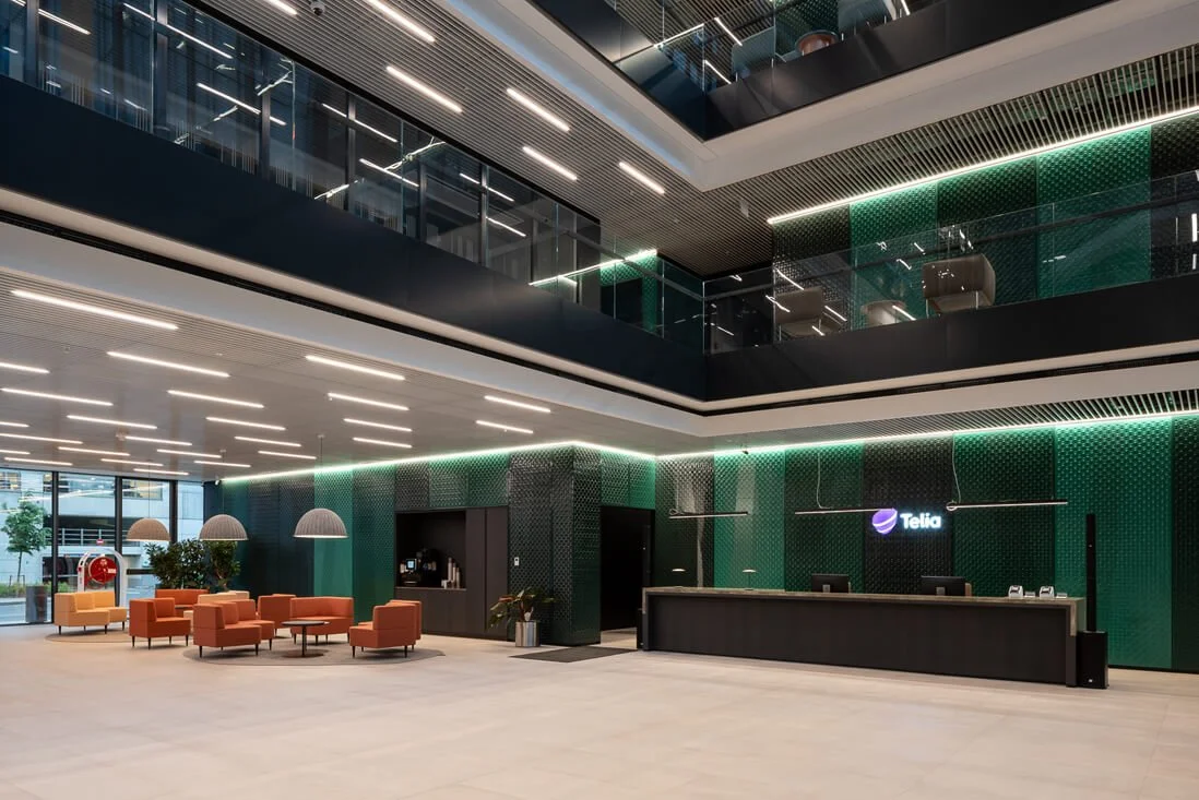 „Telia“ biure „Interjero linija“ tiekė „Vescom“ akustinius dieninius audinius pertvaroms. Daugiau „Interjero linija“ sprendimų