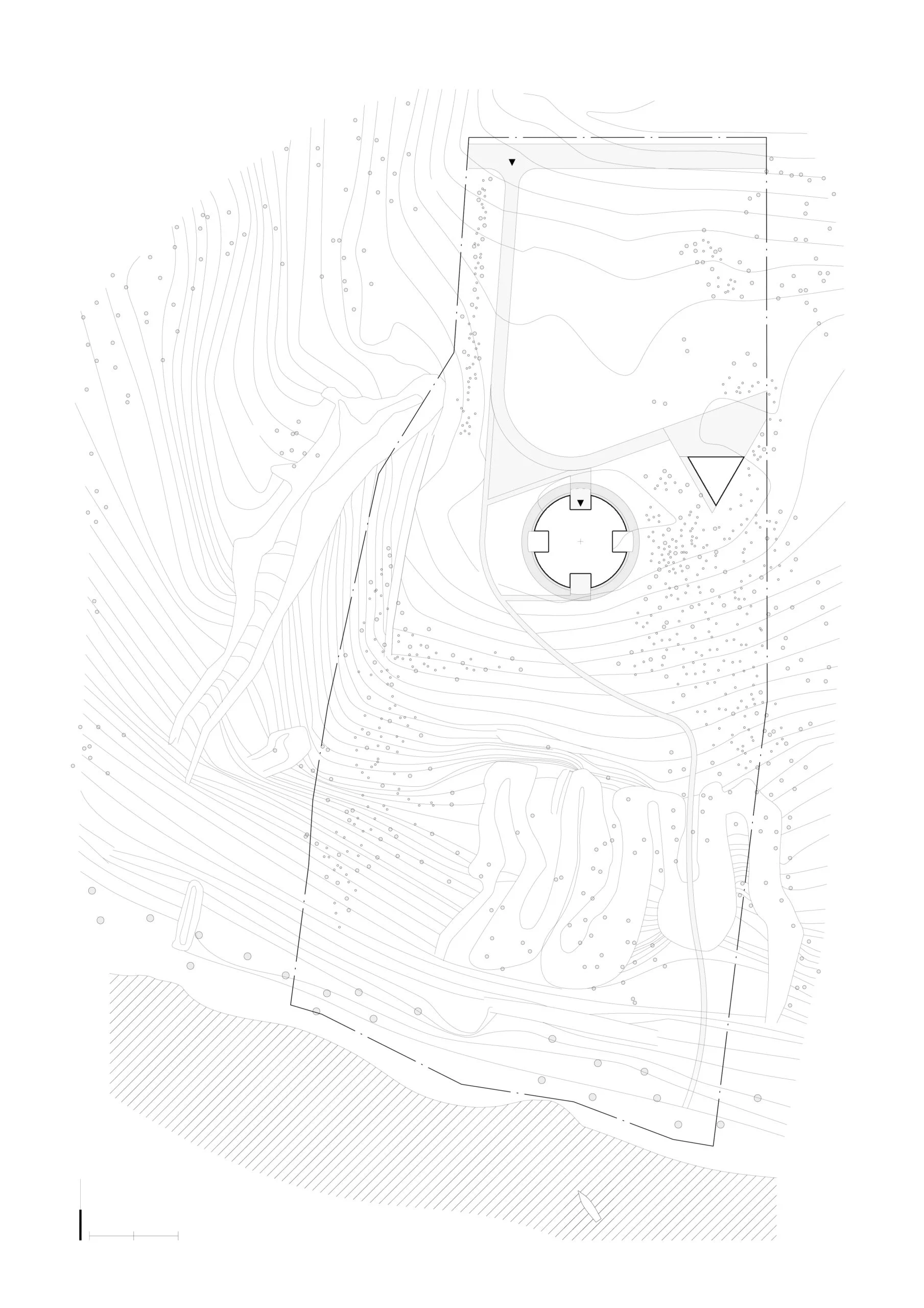 Plano centre – „pliuso“ formos erdvė, dalijanti apskritimą į keturias dalis. Dvi skirtos miegamiesiems, viena – svečių zonai ir viena tampa ramybės oaze – SPA zona. Centrinė dalis yra ryškiausias namo akcentas: atvira, šviesi ir dinamiška gyvenamoji erdvė, apjungianti holą, virtuvę, valgomąjį ir svetainę į erdvią, dinamišką erdvę. Kiekvienas „pliuso“ langas atveria vis kitokį vizualą: vienas į įvažiavimą, vienas į miškelį, vienas į gamtos tolius ir vienas į ežerą.