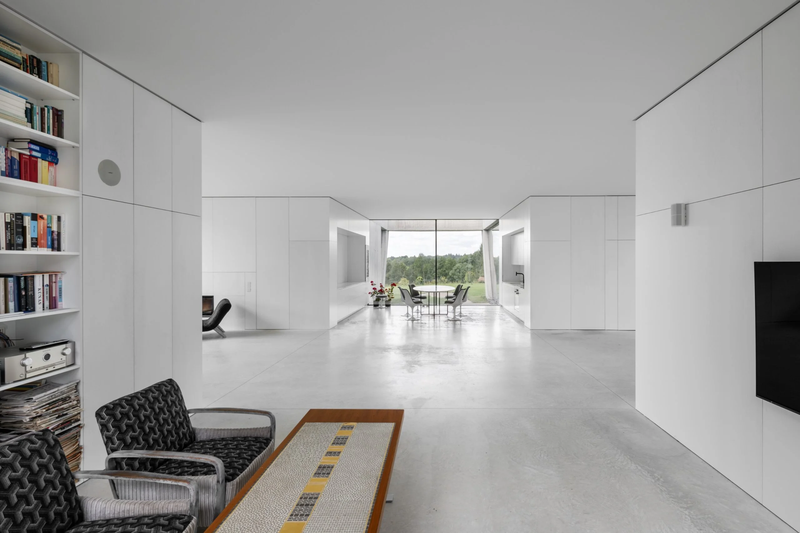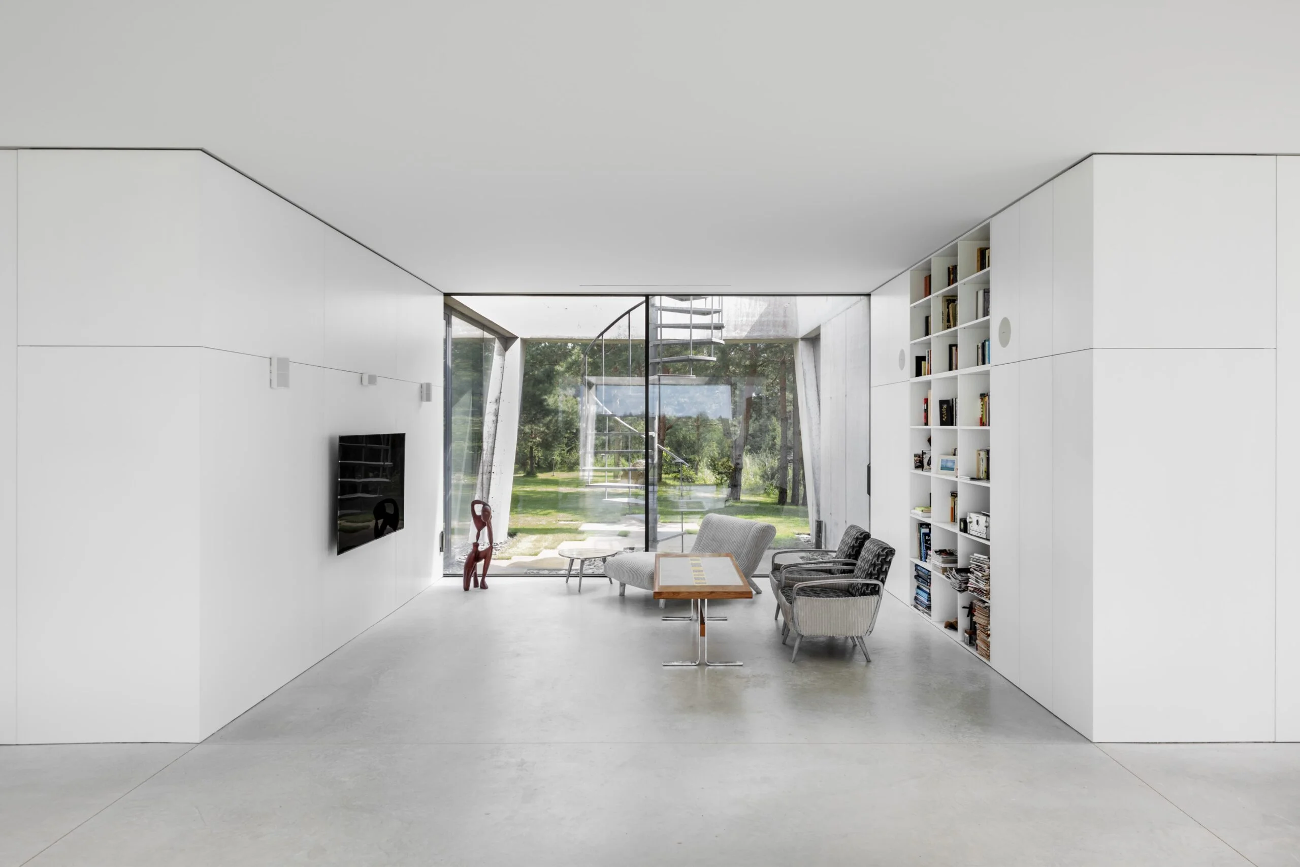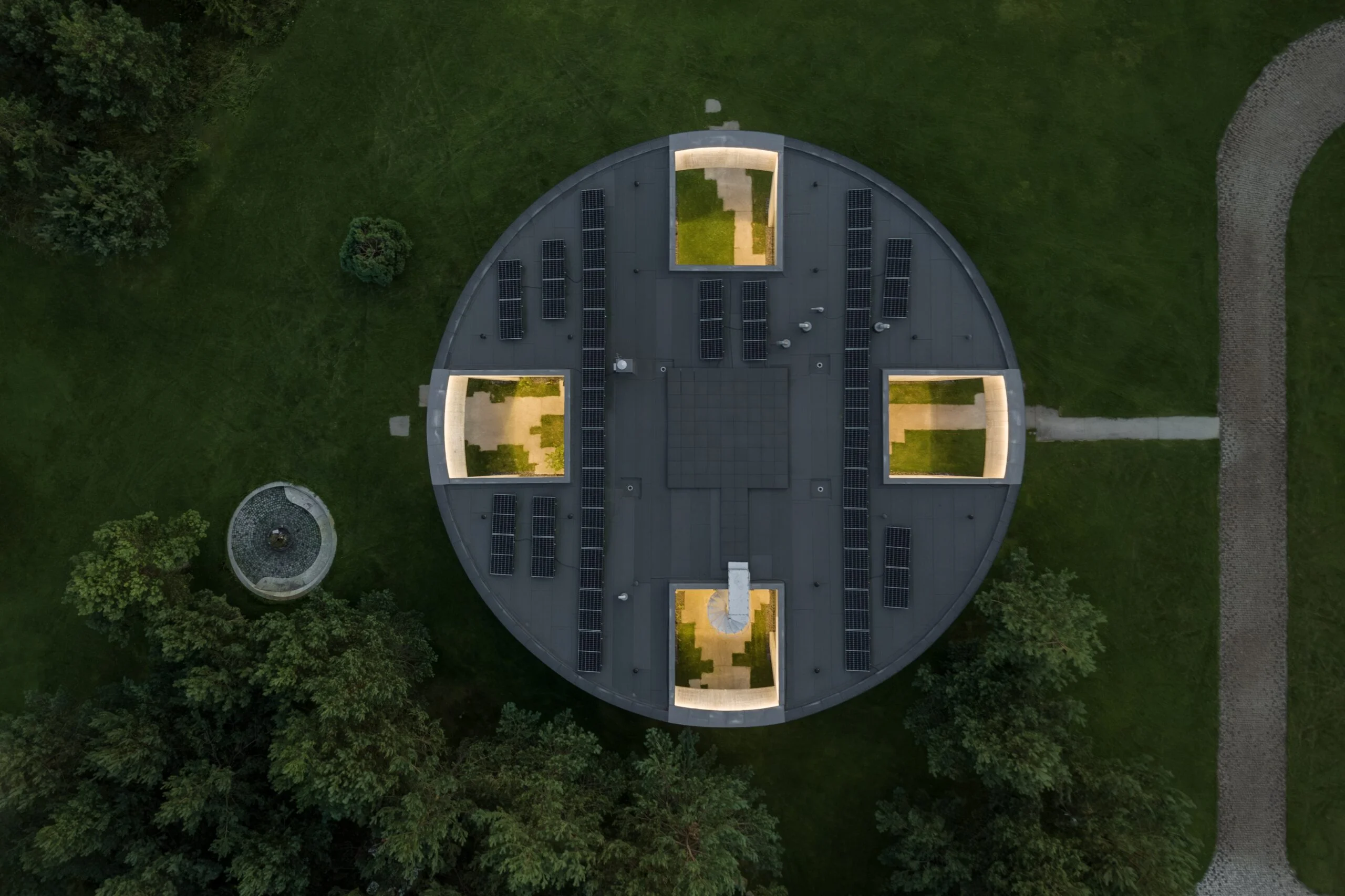 Aiškumas ir harmonija. Namas orientuotas į keturias pasaulio šalis, įsileidžiantis natūralią šviesą ir gamtą į kiekvieną erdvę. Perimetras slepia privatesnes erdves, o centrinė erdvė išlieka erdvi, permatoma ir gyvybinga – architektūrinis „pliusas“ visomis prasmėmis.