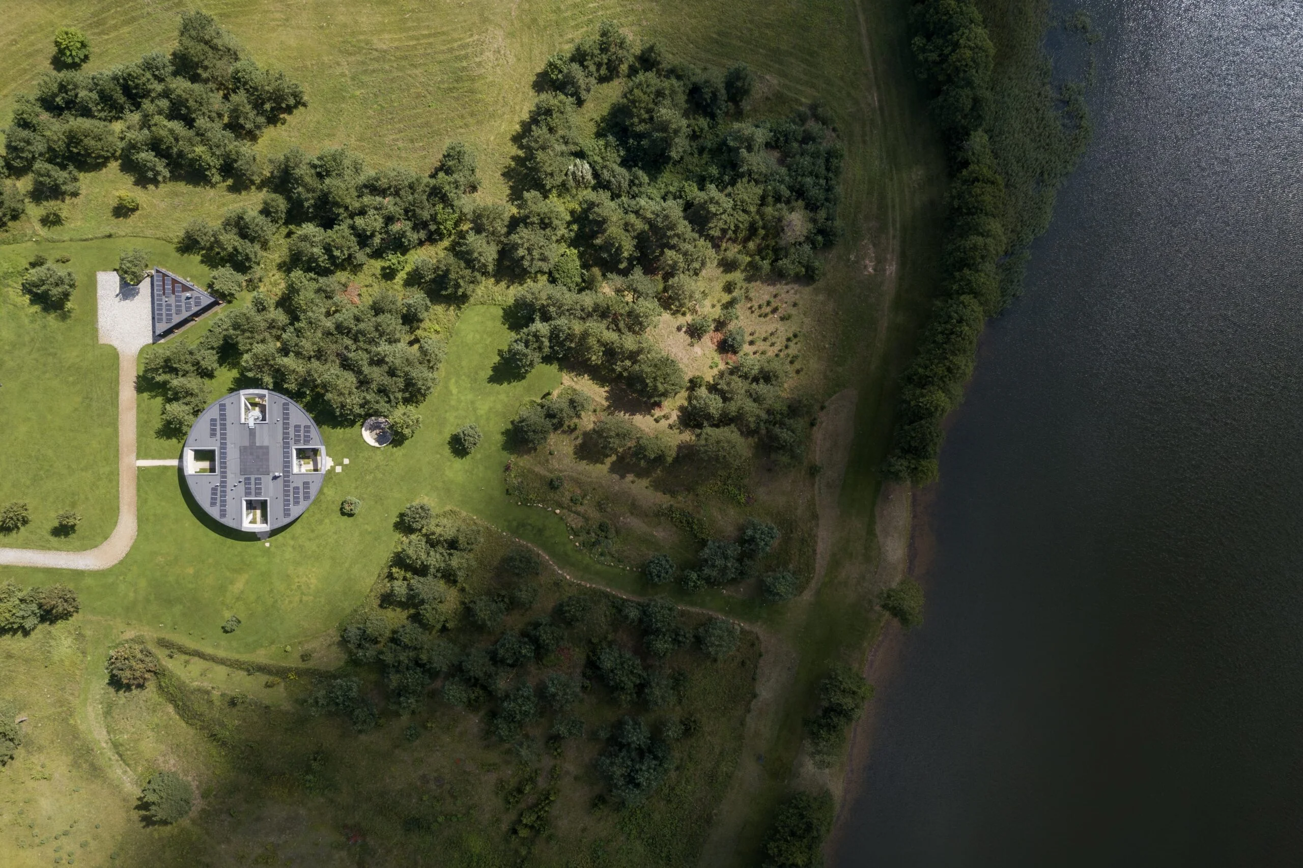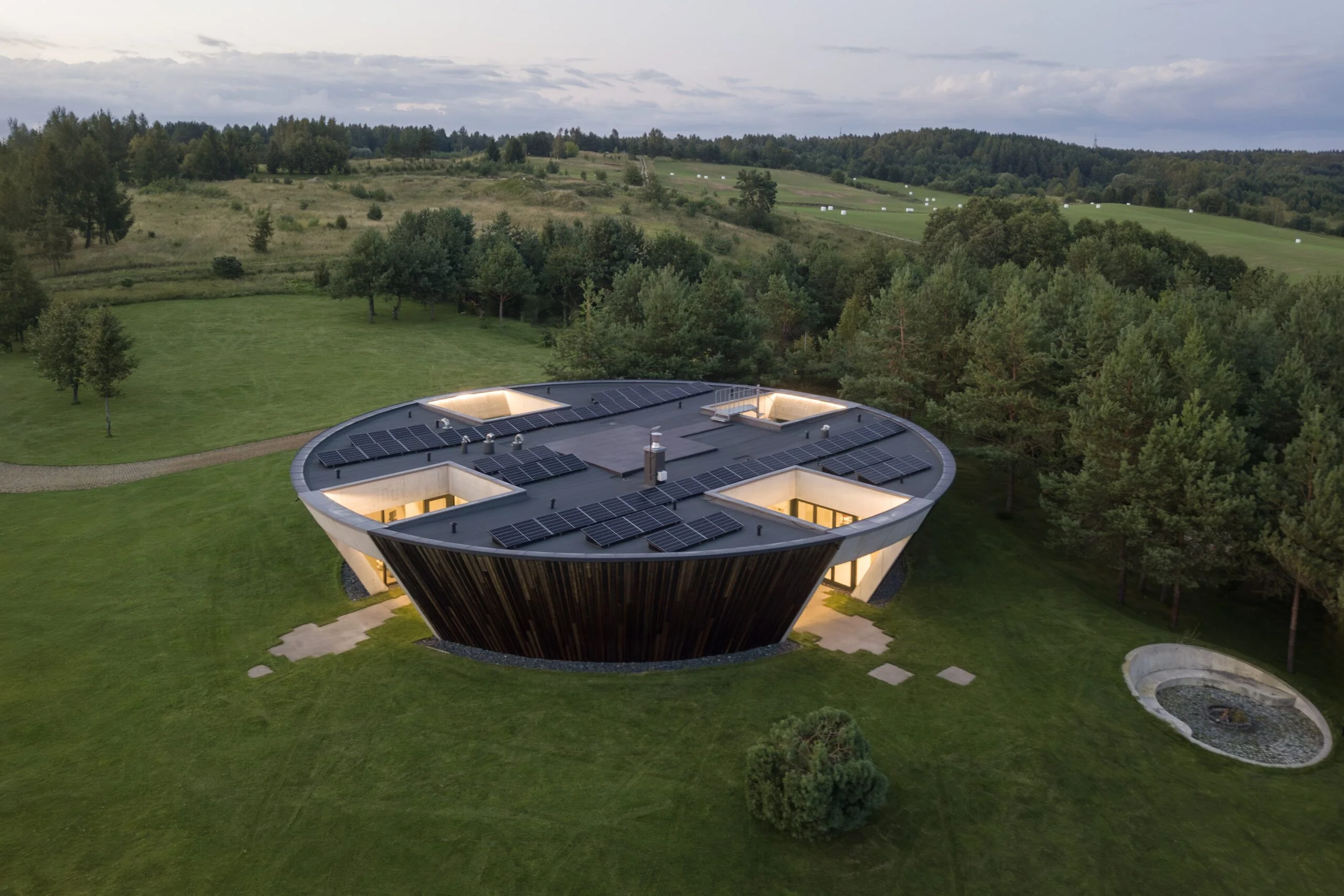 „Vila O“ įsikūrusi gamtos apsuptyje, erdviame sklype prie ežero. Aukščiausioje sklypo dalyje su nuostabia panorama 237 kv.m. namas žvelgia į keturias pasaulio šalis. Atsietas nuo standartinės namo formos, šis apvalus tūris tampa architektūrine skulptūra – organiška reakcija į neapibrėžtą aplinką. Keturi pusiau uždari, įgilinti kiemeliai įsilieja į struktūrą, natūraliai sujungdami vidų su išore. Jie tapę koncepcijos vienu iš esminių aspektų, kurie išsaugo tūrio vientisumą, atveria vaizdus ir įtraukia gamtą į namo interjerą.