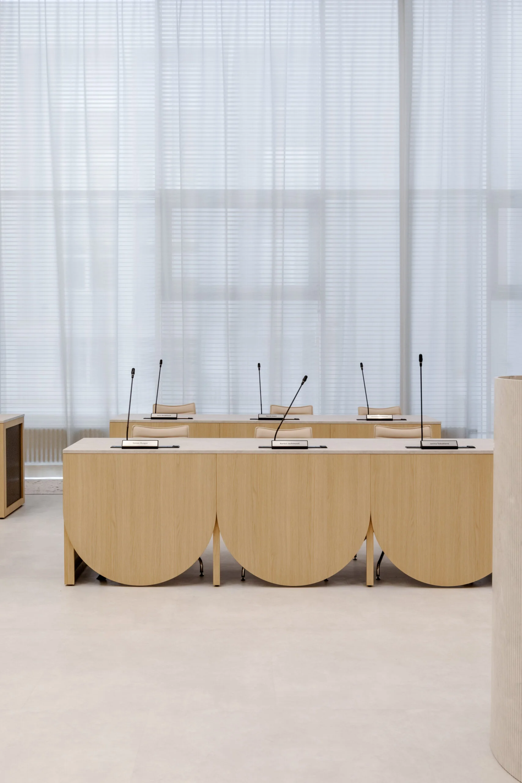 Vilniaus rajono savivaldybės (VRS) posėdžių salė atsinaujino šiuolaikišku, estetiškai subalansuotu ir ergonomišku interjeru. Šiandien ši erdvė – šviesi, jauki, o svarbiausia – funkcionali ir patogi erdvė, kurioje gimsta nauji sprendimai ir pokyčiai. Posėdžių salės atnaujinimą įgyvendinimo interjero dizaino studija „M2J Design“.