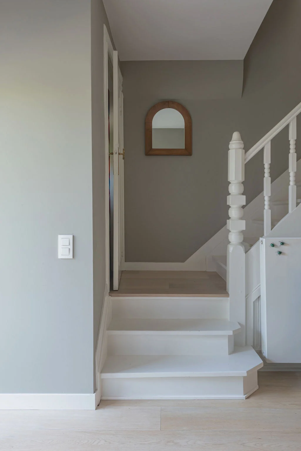 Didelė stiklo vitrina, atverianti vaizdą į sodą, išsklaido ribas tarp vidaus ir išorės. Virtuvės lango rėmas suformuoja apgalvotą sodovaizdžio „kadrą“. Galiniame fasade kruopščiai perprojektuotos ir padidintos langų angos – PVC rėmai pakeisti mediniais, atkartojančiais originalią estetiką. Kiekvienas langas turi pagal savo paskirtį ir išraišką.