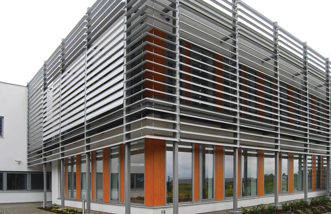Saulės kontrolės sistemos yra gaminamos iš patvaraus ekstruduoto aliuminio, kuris užtikrina ilgą metalinių konstrukcijų tarnavimo laiką, atsparumą užklupus blogoms oro sąlygoms. Fasadines žaliuzes sudaro plokšti profiliai, pagaminti iš aliumininės 0,21–0,42 mm storio skardos, padengti dažais, kurie apsaugo profilį nuo mechaninio ir atmosferinio poveikio.