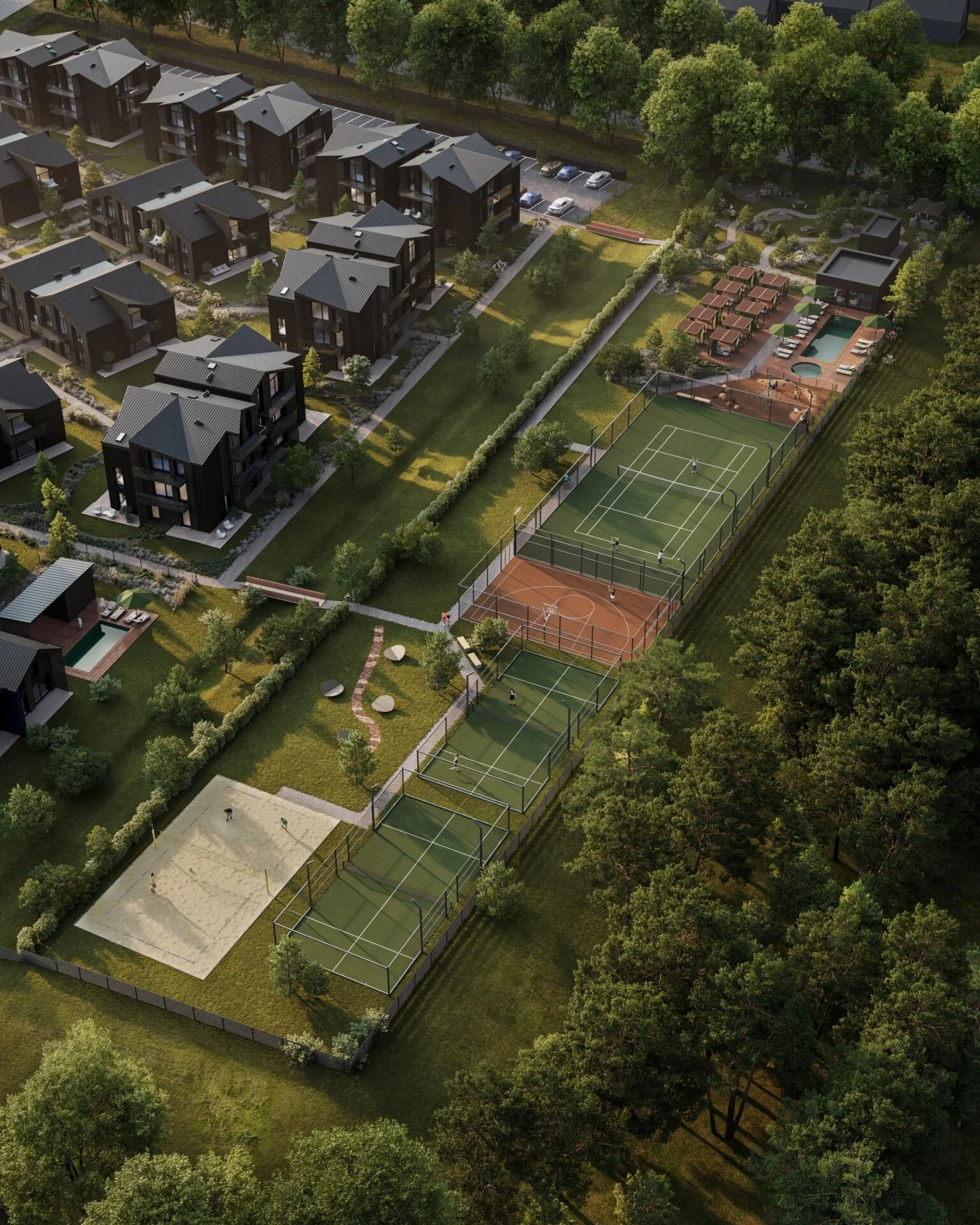 Komplekso centre kuriama unikali sporto ir poilsio infrastruktūra: bus įrengtas 12 metrų ilgio šildomas baseinas, 5 sporto aikštynai, pirtys, modernus sporto klubas su pilateso erdve, žaidimų zonos mažiesiems. Atviroje visuomenei komplekso dalyje veiks restoranas, grožio ir sveikatingumo paslaugos bei kiti patogumai, praturtinsiantys Kunigiškių gyventojų kasdienybę.