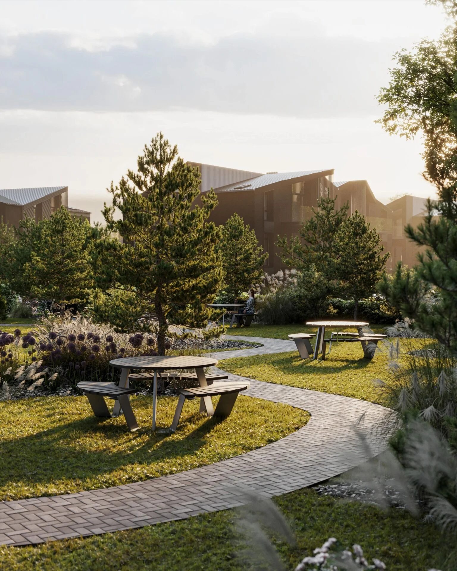 Numatoma, kad šiame projekte atostogoms ar nuolatiniam gyvenimui skirtus namus ir erdves ras poros, šeimos su vaikais bei vyresnio amžiaus žmonės. Iš viso suplanuota beveik 200 būstų: nuo 25,9 iki 53,4 kv. m ploto apartamentai su terasomis ir balkonais bei kotedžai su privačiais nuosavais sklypais.